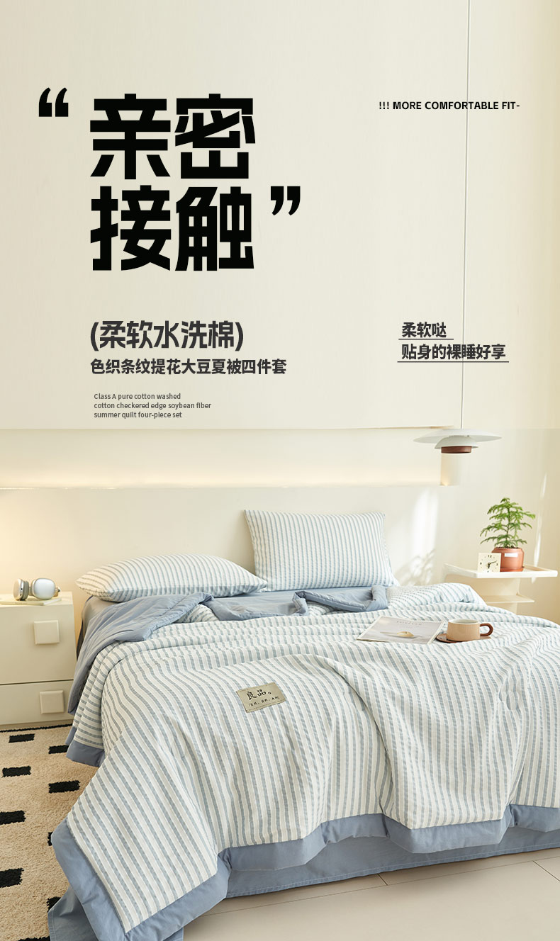 子由家居 2025新款色织条纹提花大豆夏被四件套 色织条纹-浅蓝