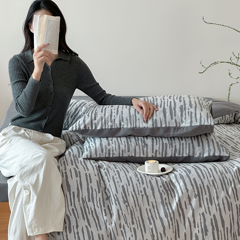 商品名称:梦享生活家居 2025新款色织三层提花人字纹面料四件套-斑驳系列 斑驳灰