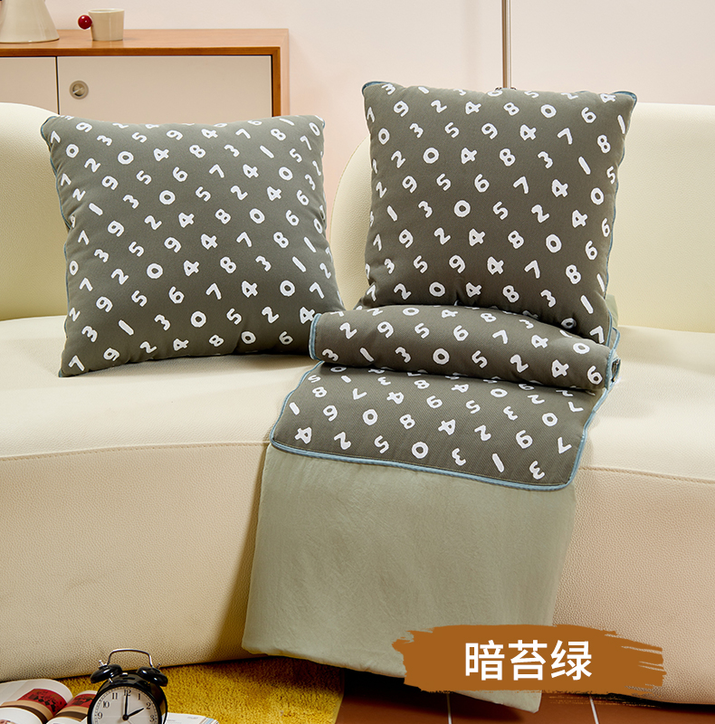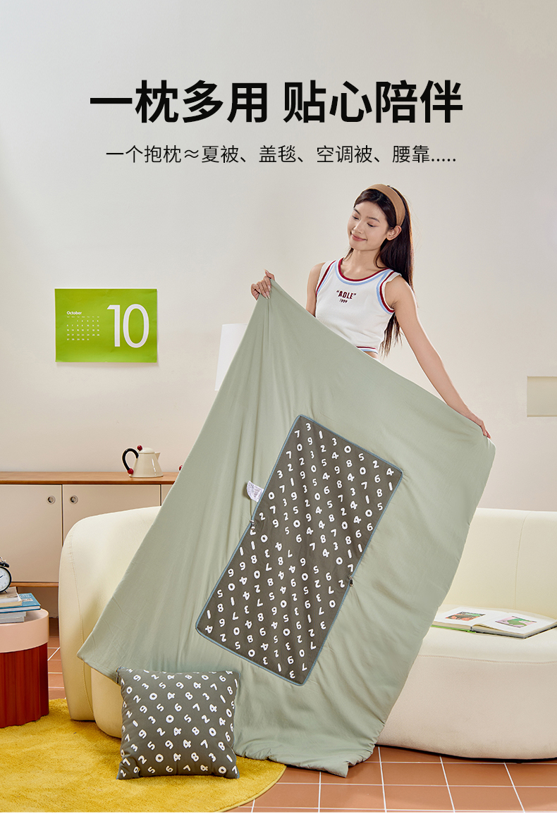 (总)多米家居 2025新款多功能印花嗖系抱枕被,暗苔绿,丹宁蓝,矿石黑,小鸡黄,杏仁咖,云水灰