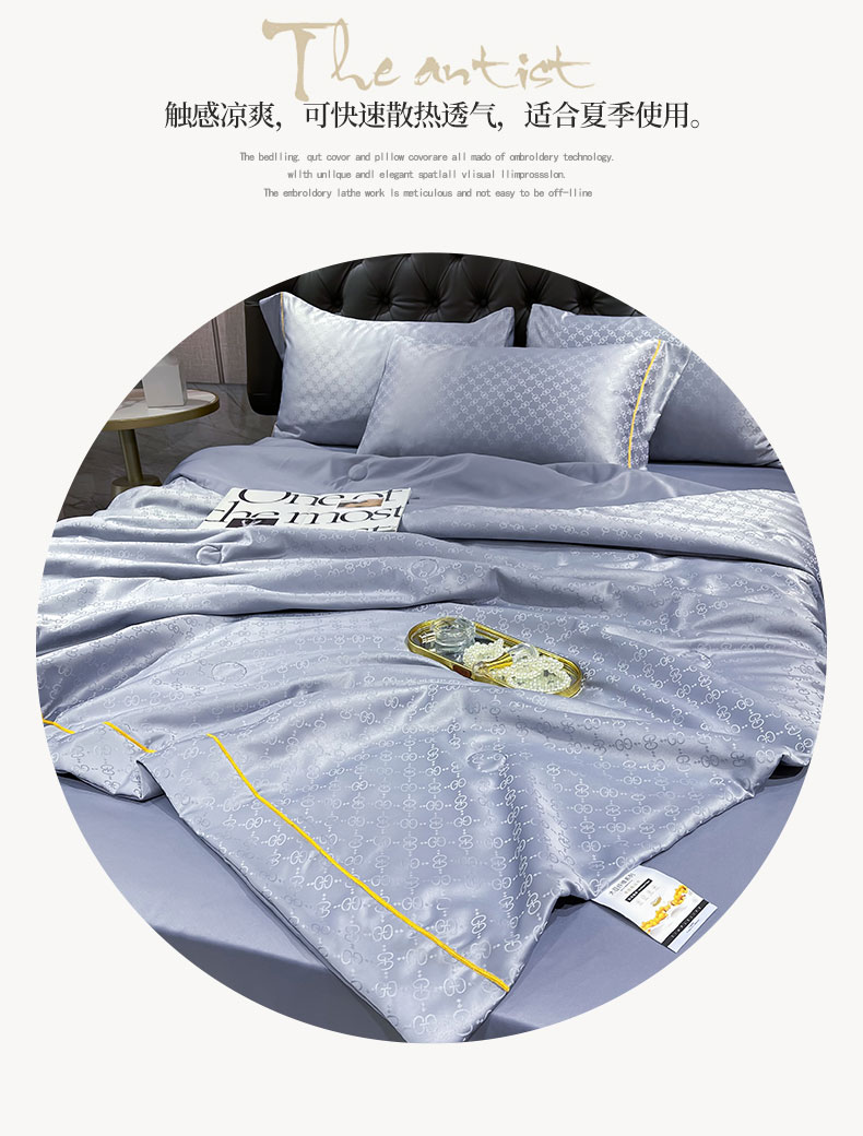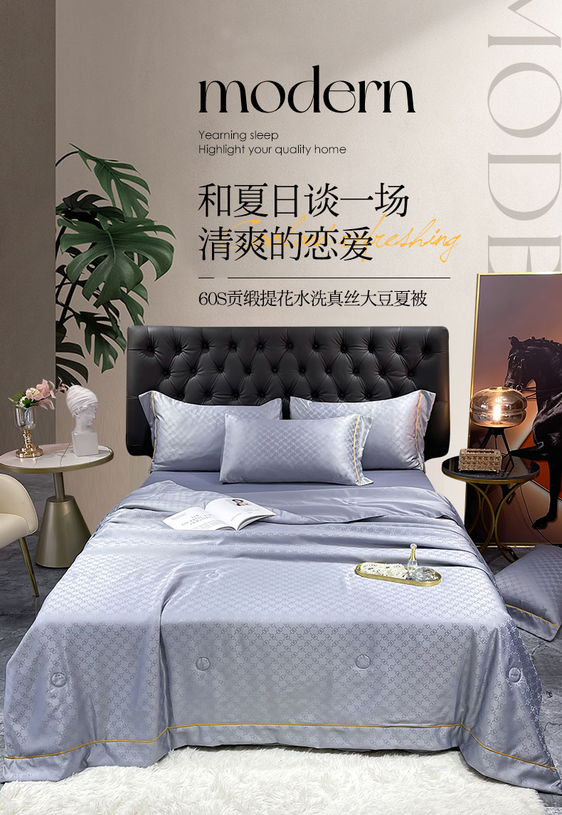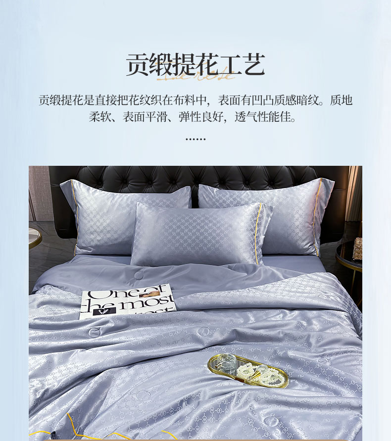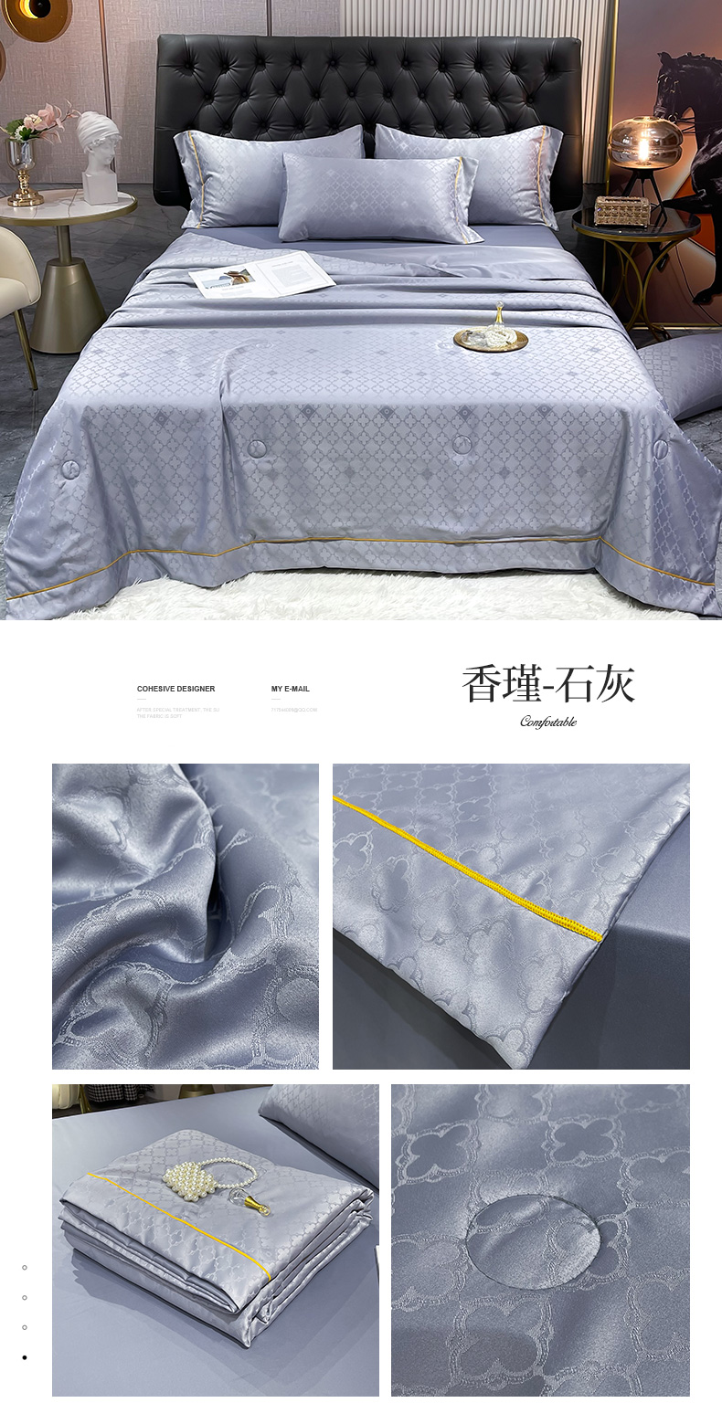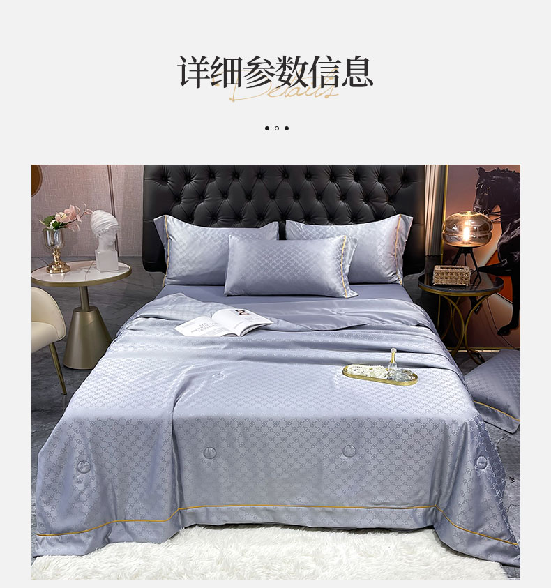 • 91家纺网 家纺一手货源 找家纺 经年 2025新款60S贡缎提花水洗真丝冰丝天丝大豆夏被四件套直播爆款 格调-石灰大豆夏被