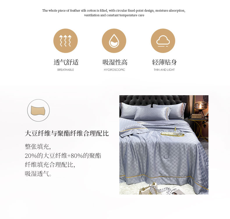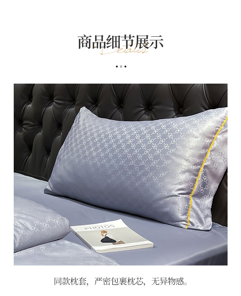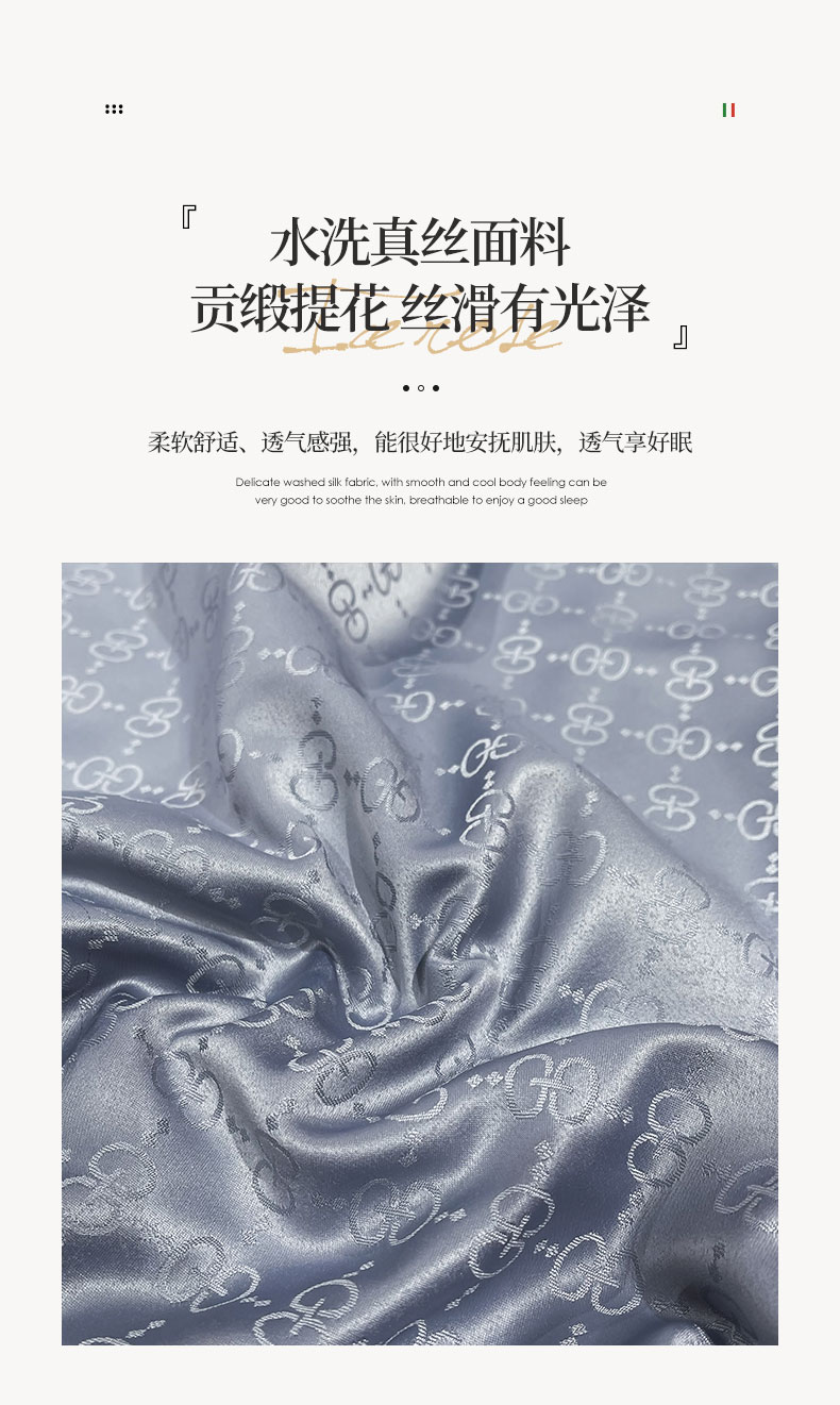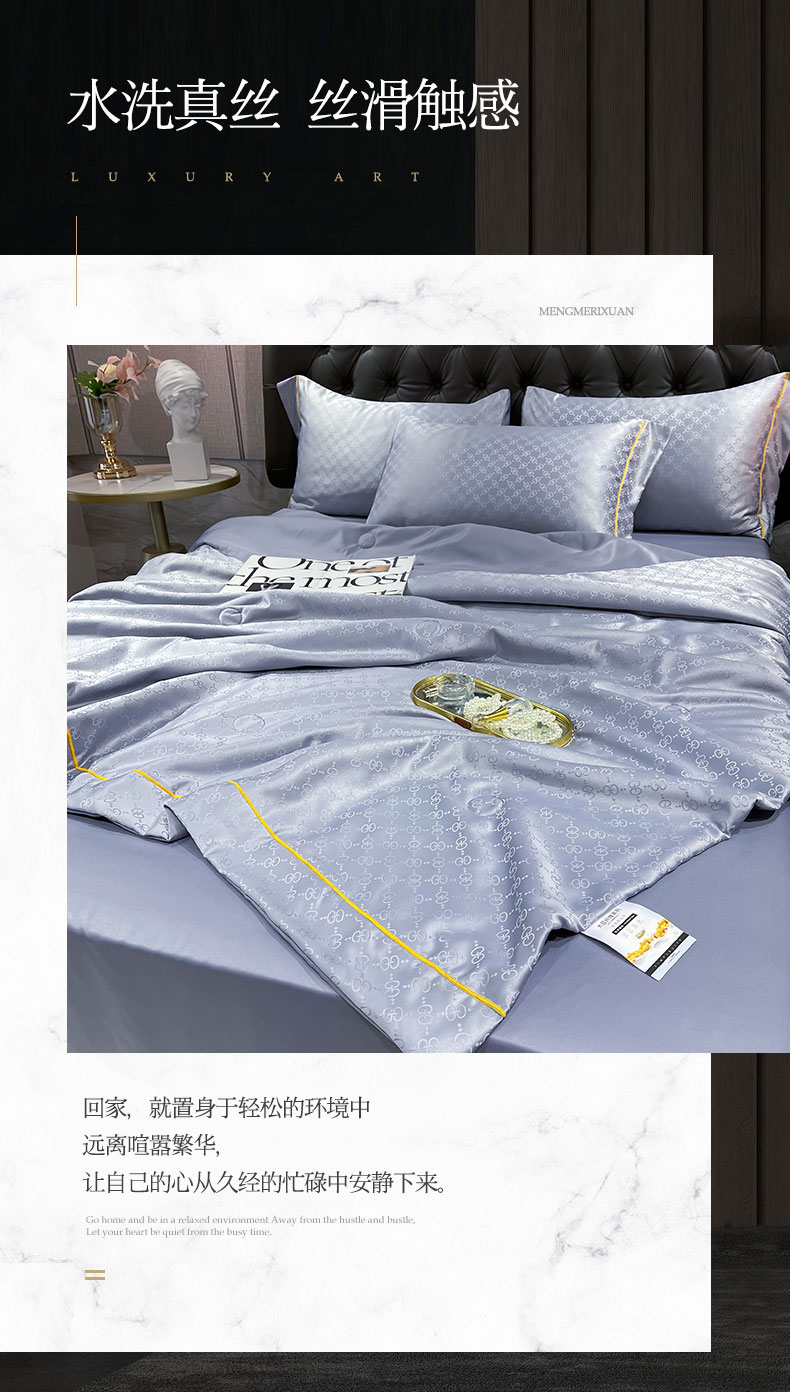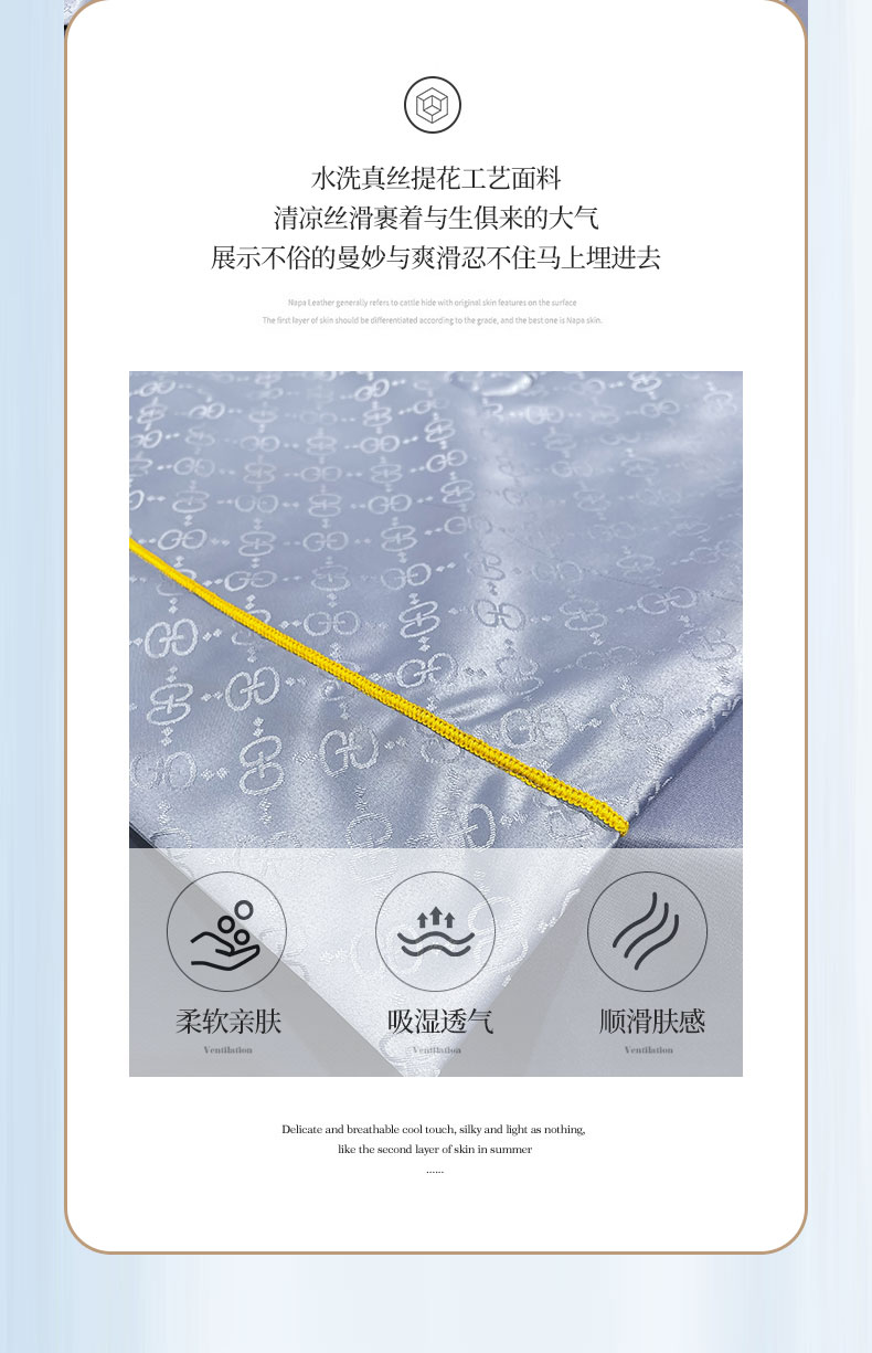 • 91家纺网 家纺一手货源 找家纺 经年 2025新款60S贡缎提花水洗真丝冰丝天丝大豆夏被四件套直播爆款 格调-石灰大豆夏被