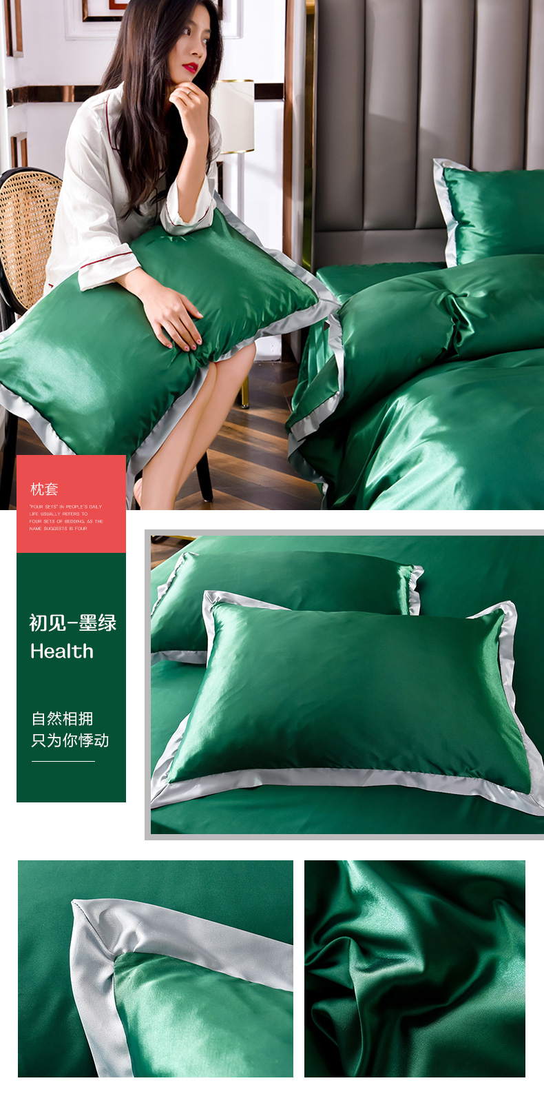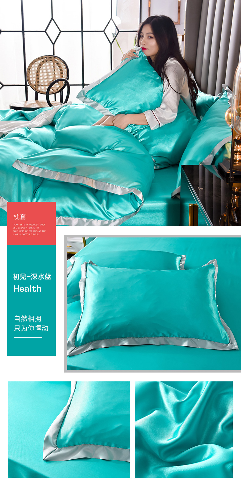 商品名称:经年 2025年奢华真丝手感水洗冰丝天丝单枕套-初见系列 直播爆款 初见-藏青