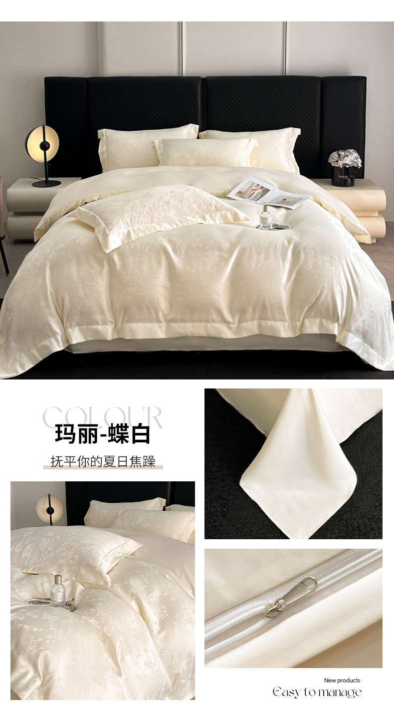 金阳光家纺 2025春夏新款高奢提花水洗天丝四件套 玛丽-蝶白