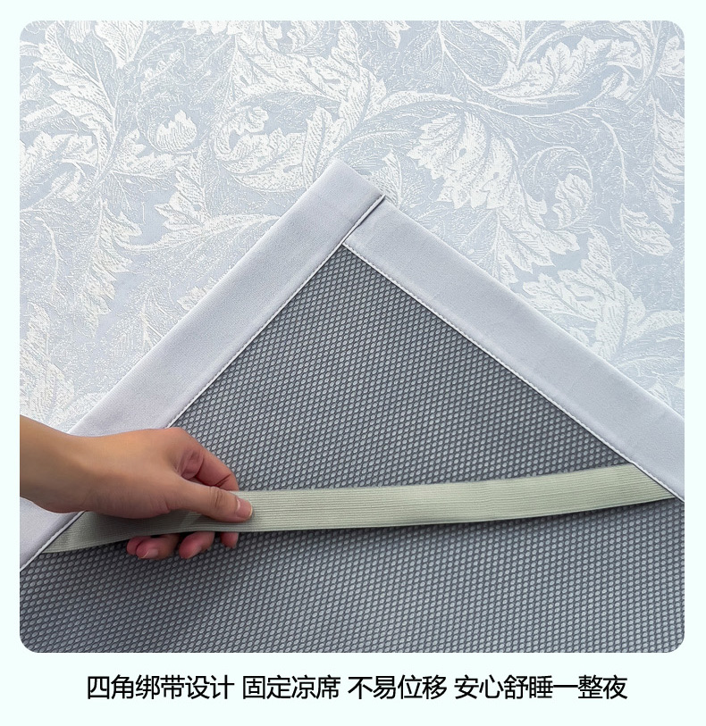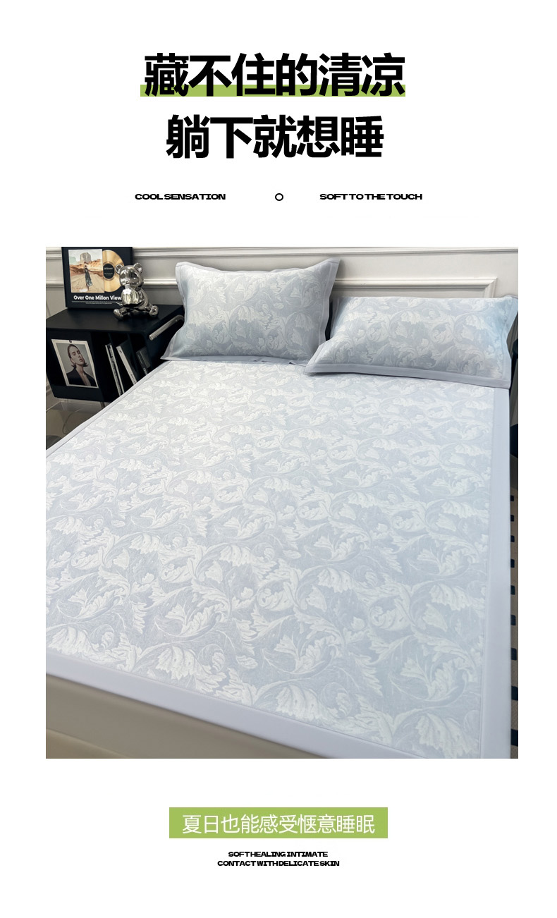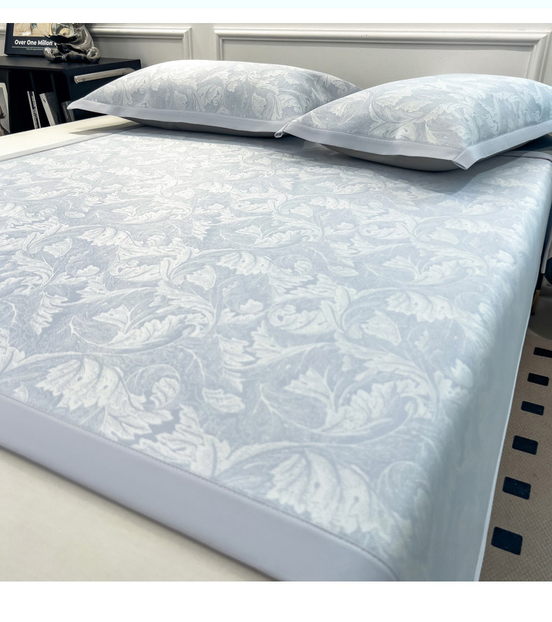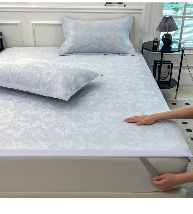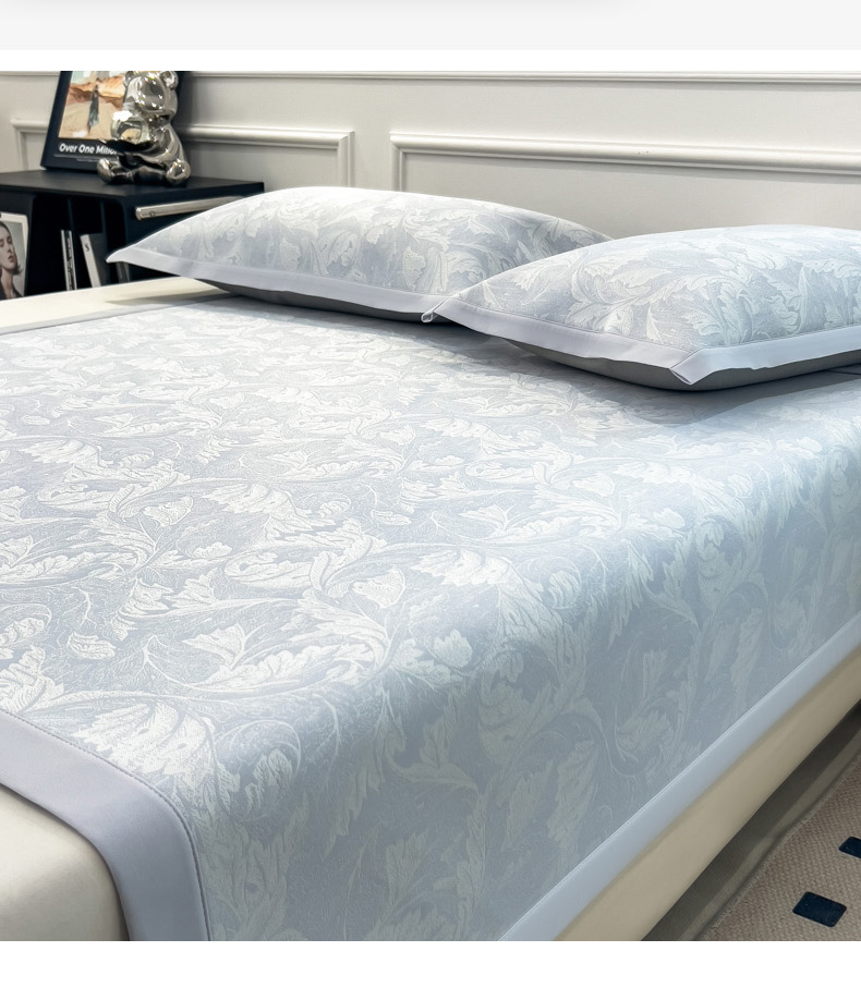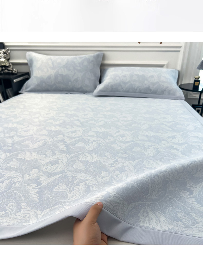 商品名称:2025新款牛奶丝提花凉感凉席系列床席款 叶之恋蓝床席款