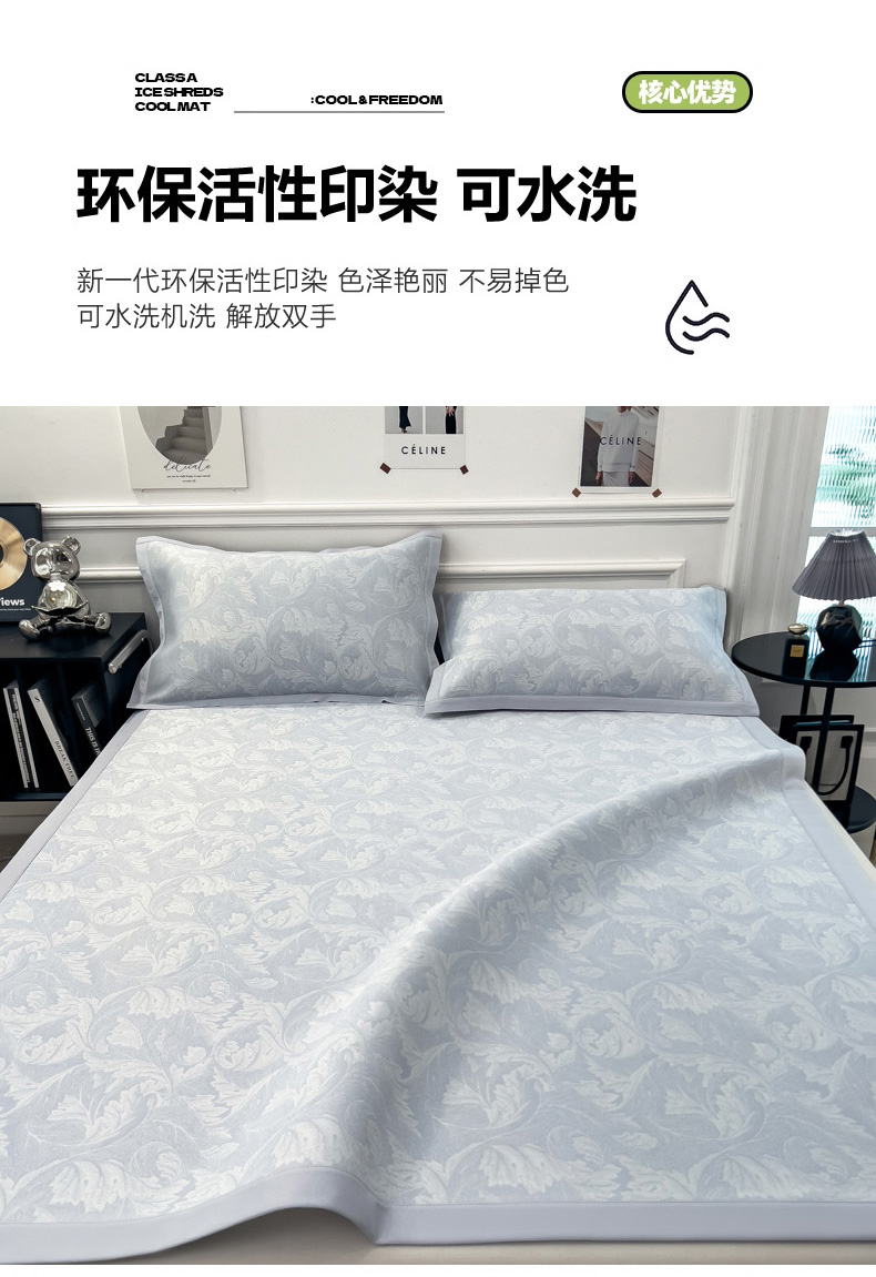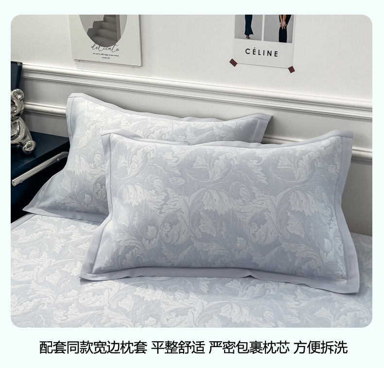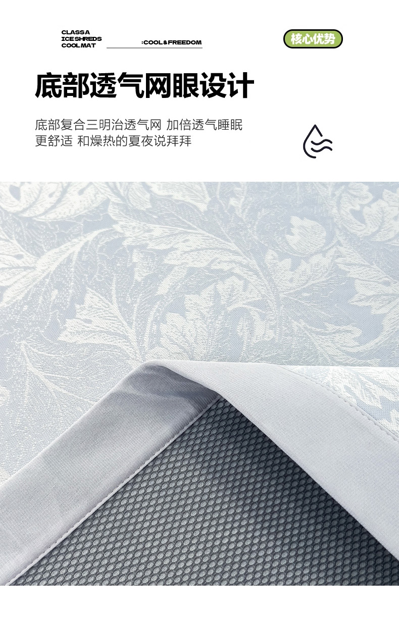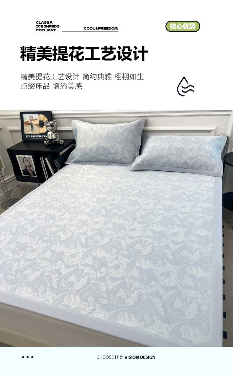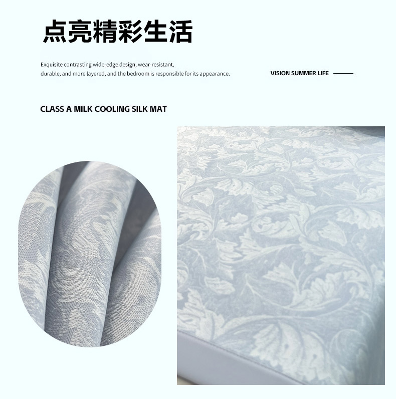 商品名称:2025新款牛奶丝提花凉感凉席系列床席款 叶之恋蓝床席款