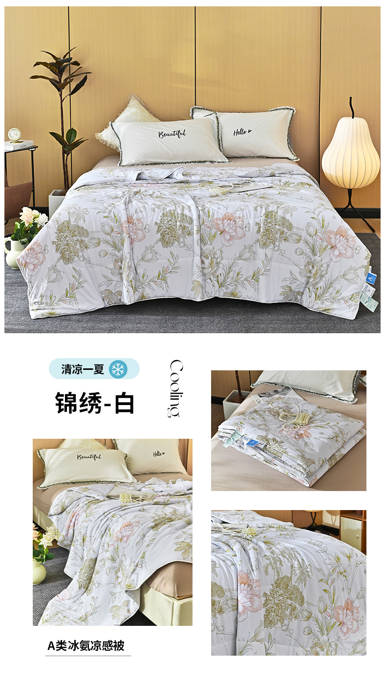 商品名称:佳居缘 2025新款A类冰氨双面数码印花凉感夏被 锦绣-白