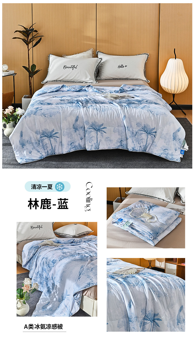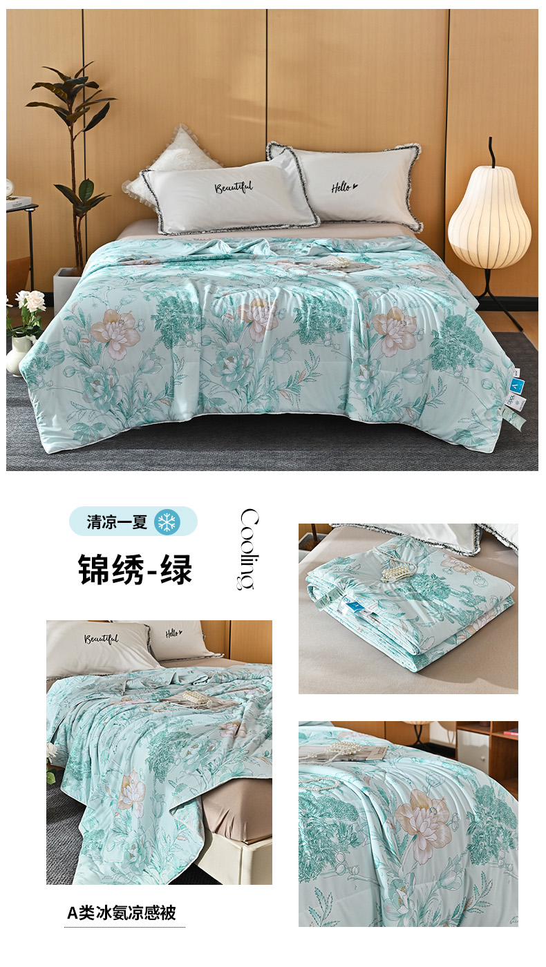 (总)佳居缘 2025新款A类冰氨双面数码印花凉感夏被,繁花-粉,繁花-绿,锦绣-白,锦绣-绿,林鹿-蓝