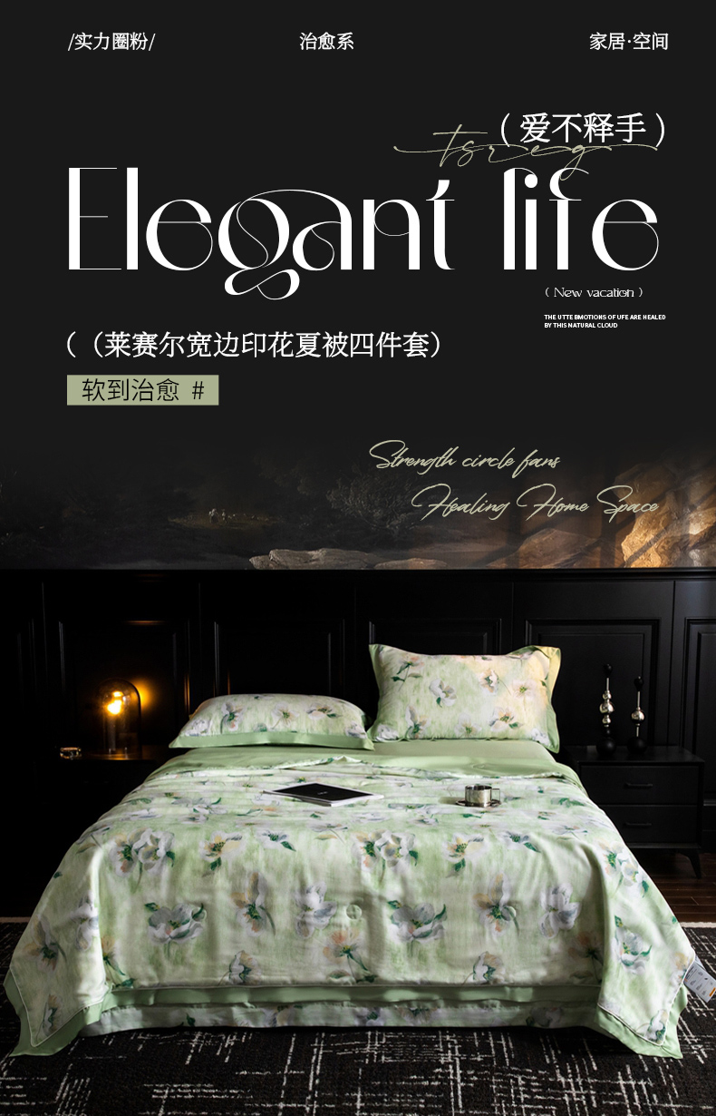 (总)佳居缘 2025新款天丝数码印花夏被四件套,缤纷舞叶,幻境清语,陌言盛夏,气泡粉语,悠蓝挽夏,郁静墨花