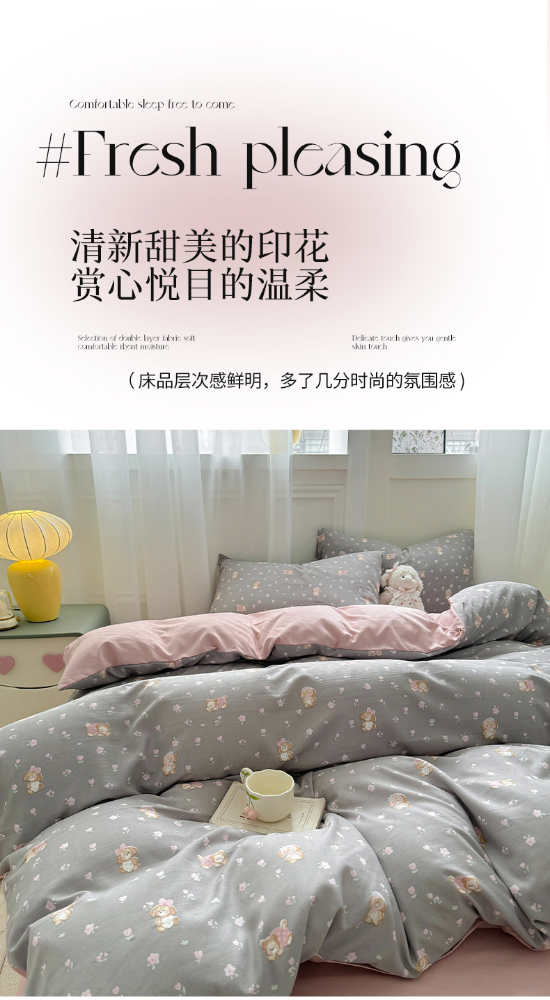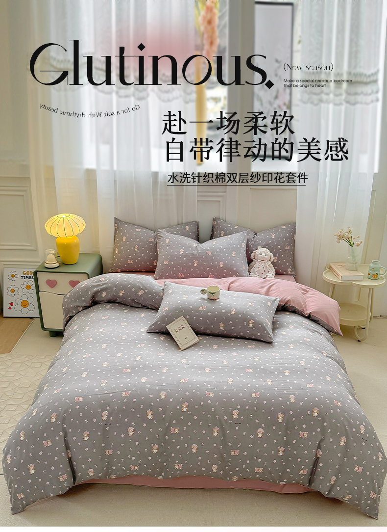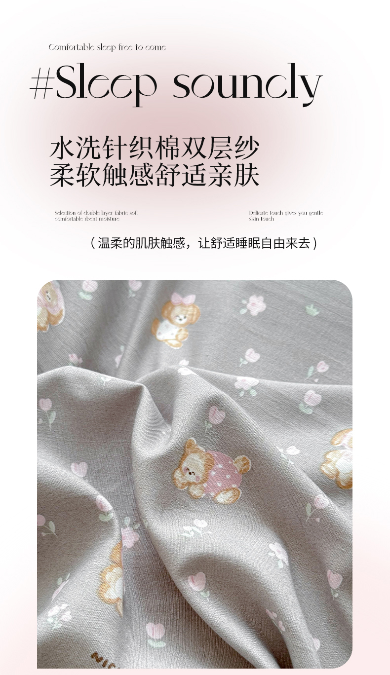 当前位置: 91家纺网 > 商品网购 > 床品套件 > 四件套 > 针织棉四件套 > 丝芙妮家居2025新款水洗针织棉双层纱印花四件套 花舞小熊