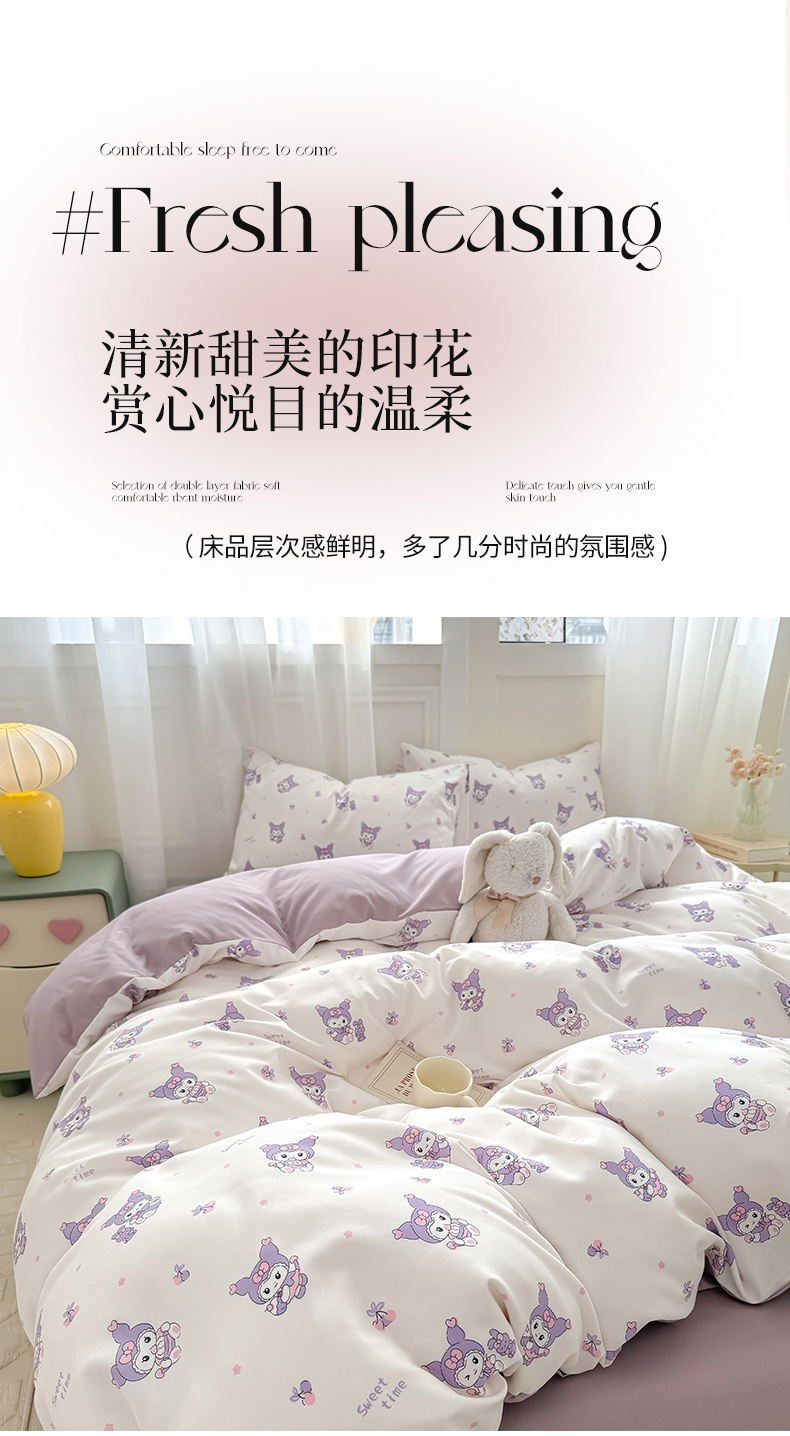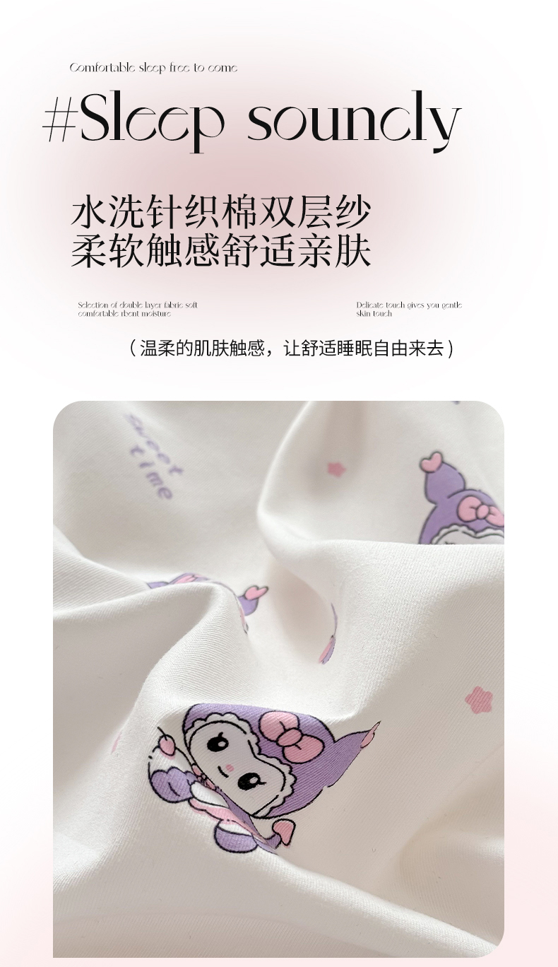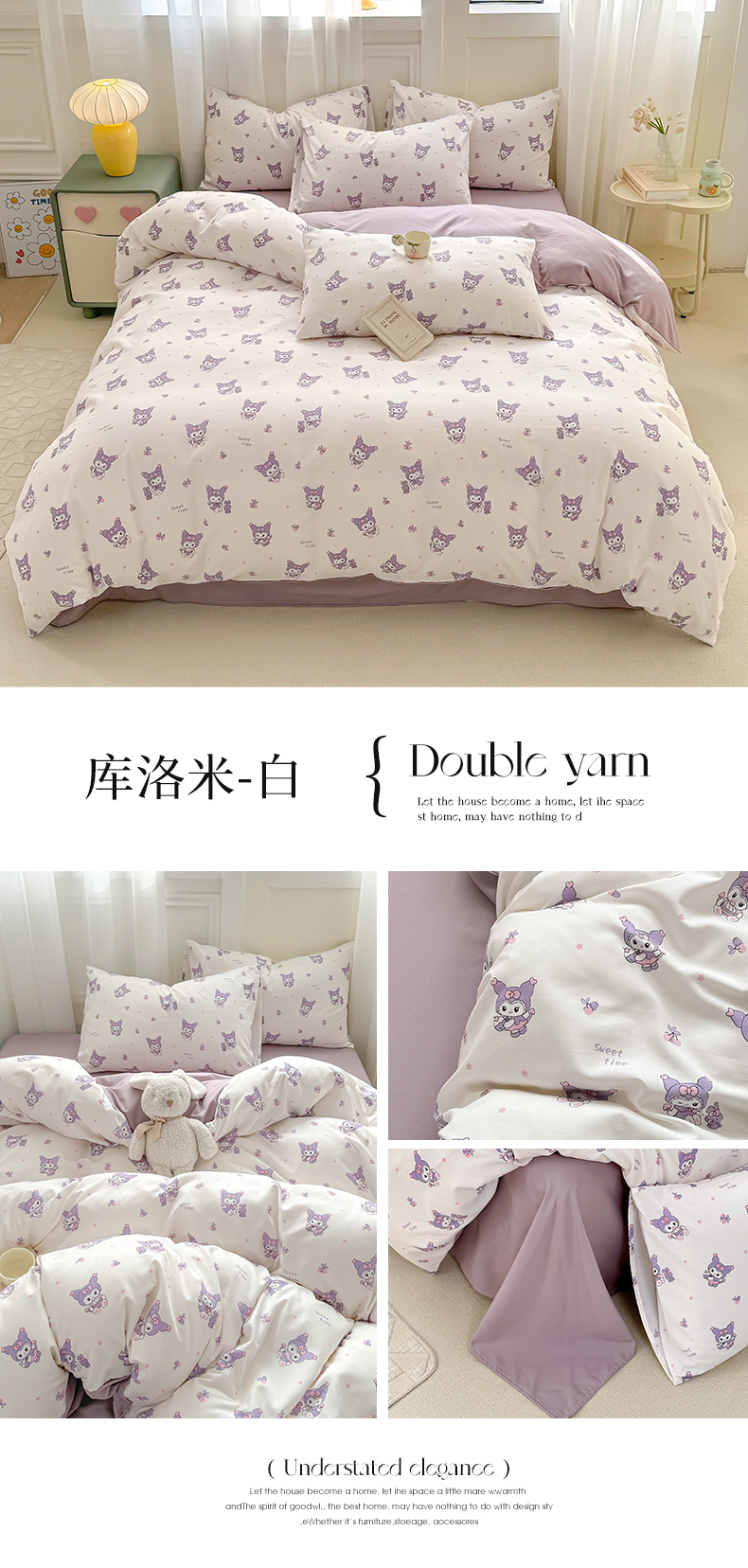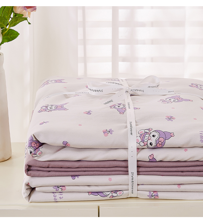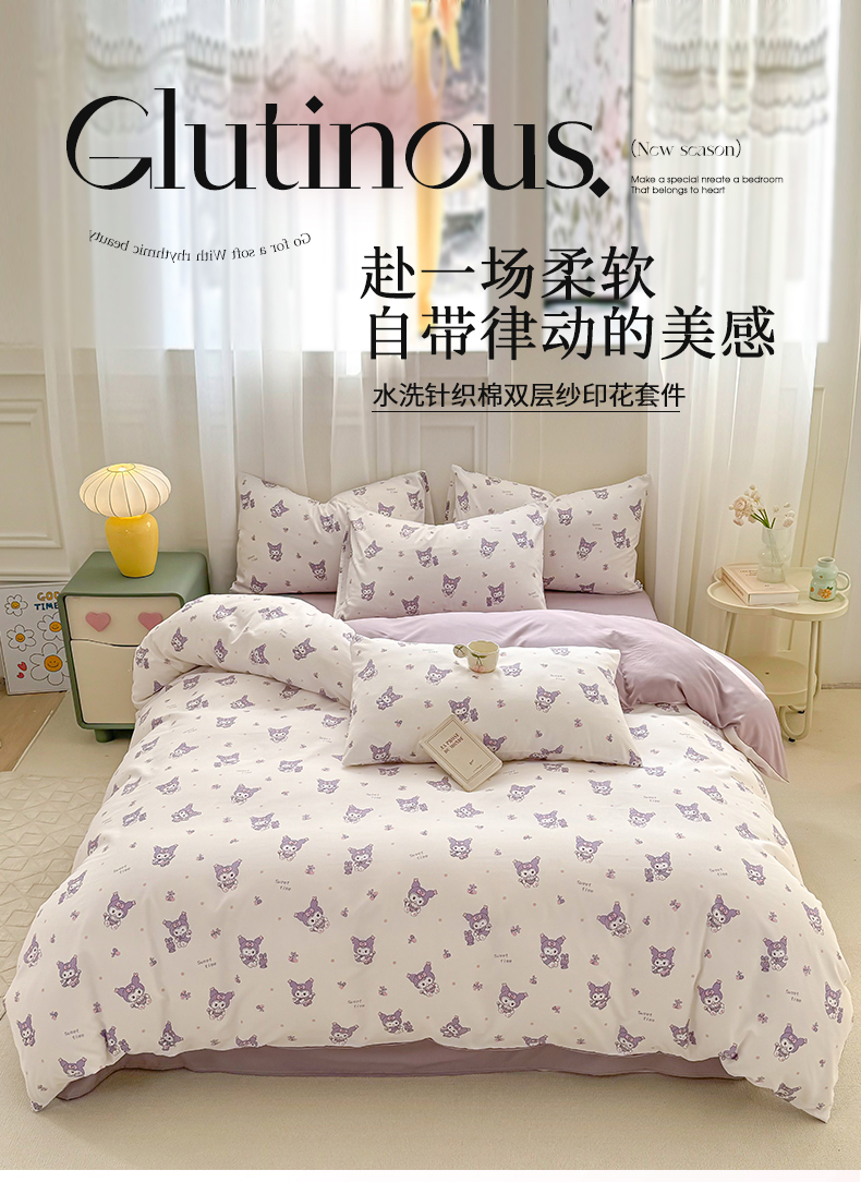 当前位置: 91家纺网 > 商品网购 > 床品套件 > 四件套 > 针织棉四件套 > 丝芙妮家居2025新款水洗针织棉双层纱印花四件套 库洛米-白