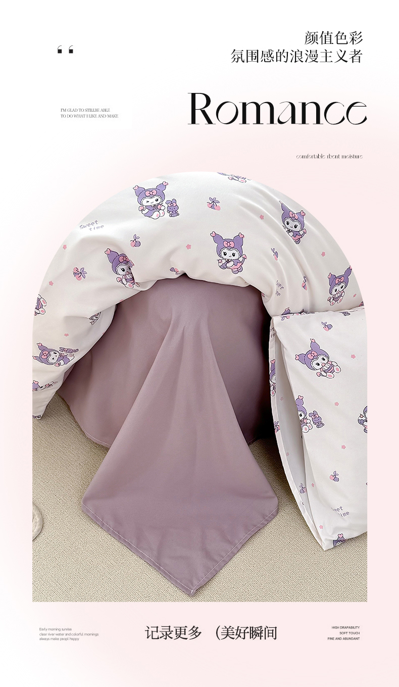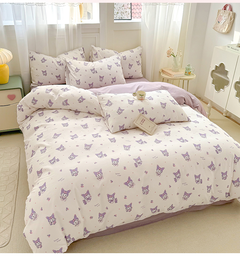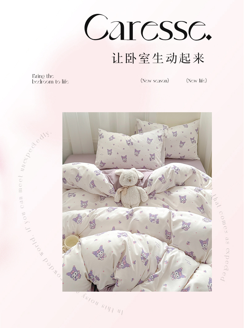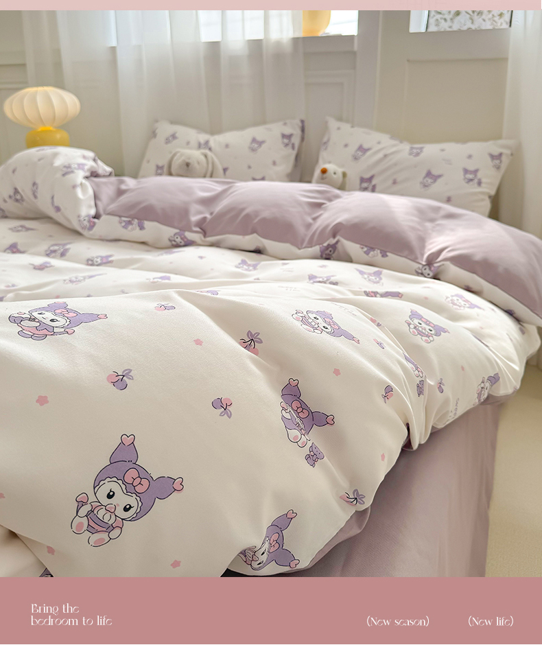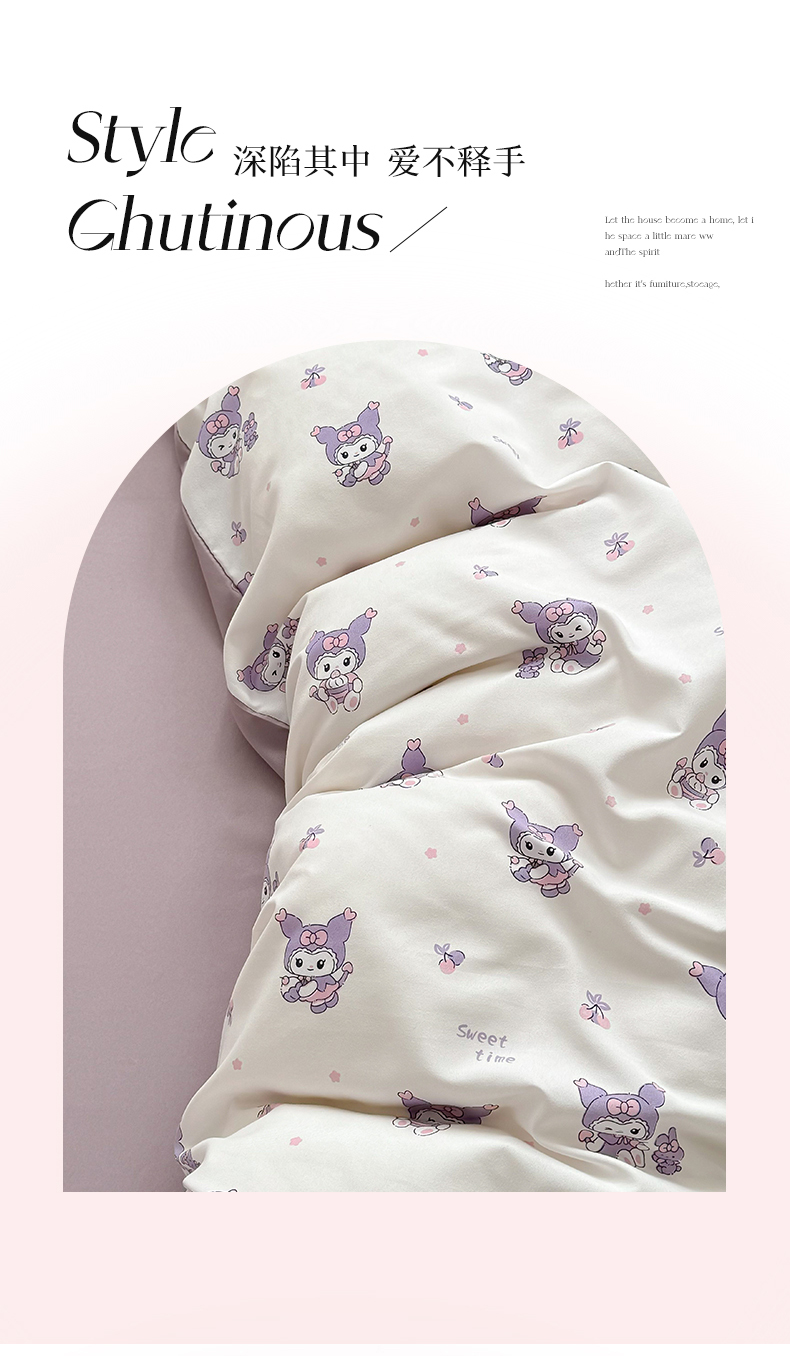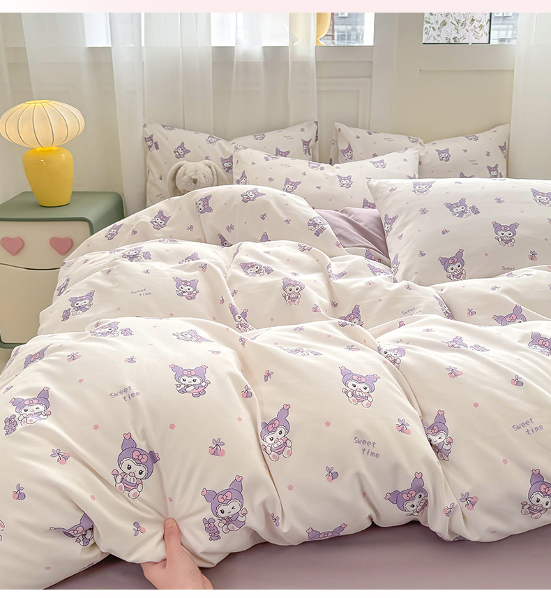 当前位置: 91家纺网 > 商品网购 > 床品套件 > 四件套 > 针织棉四件套 > 丝芙妮家居2025新款水洗针织棉双层纱印花四件套 库洛米-白