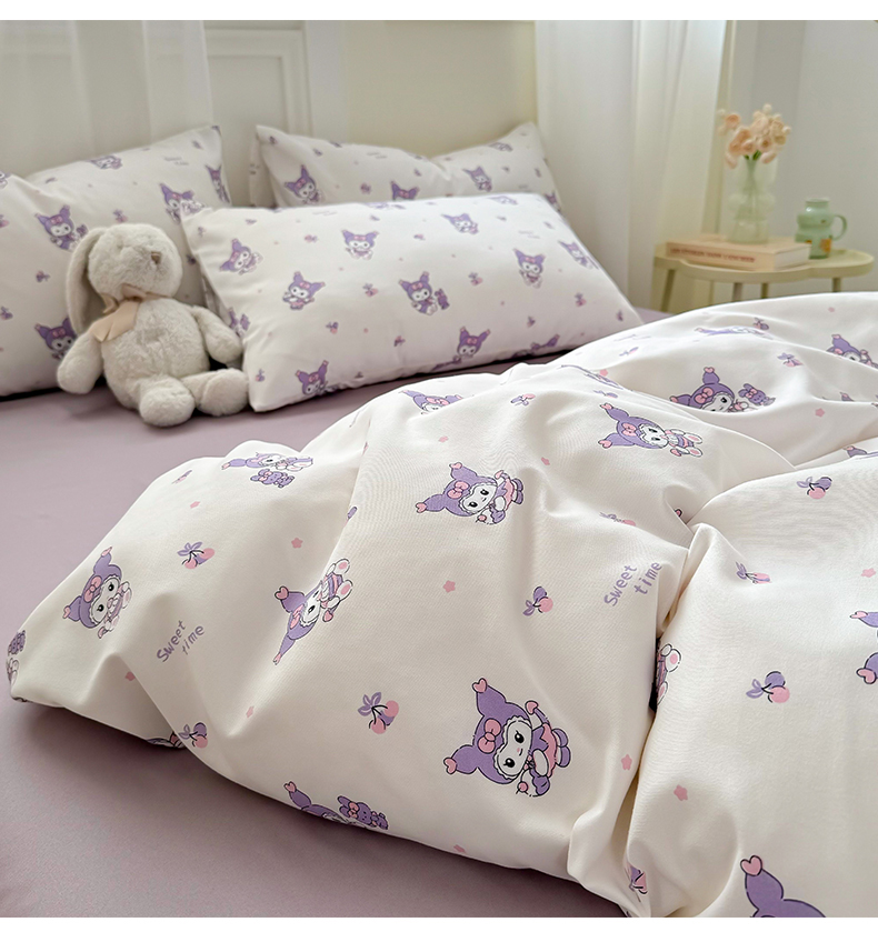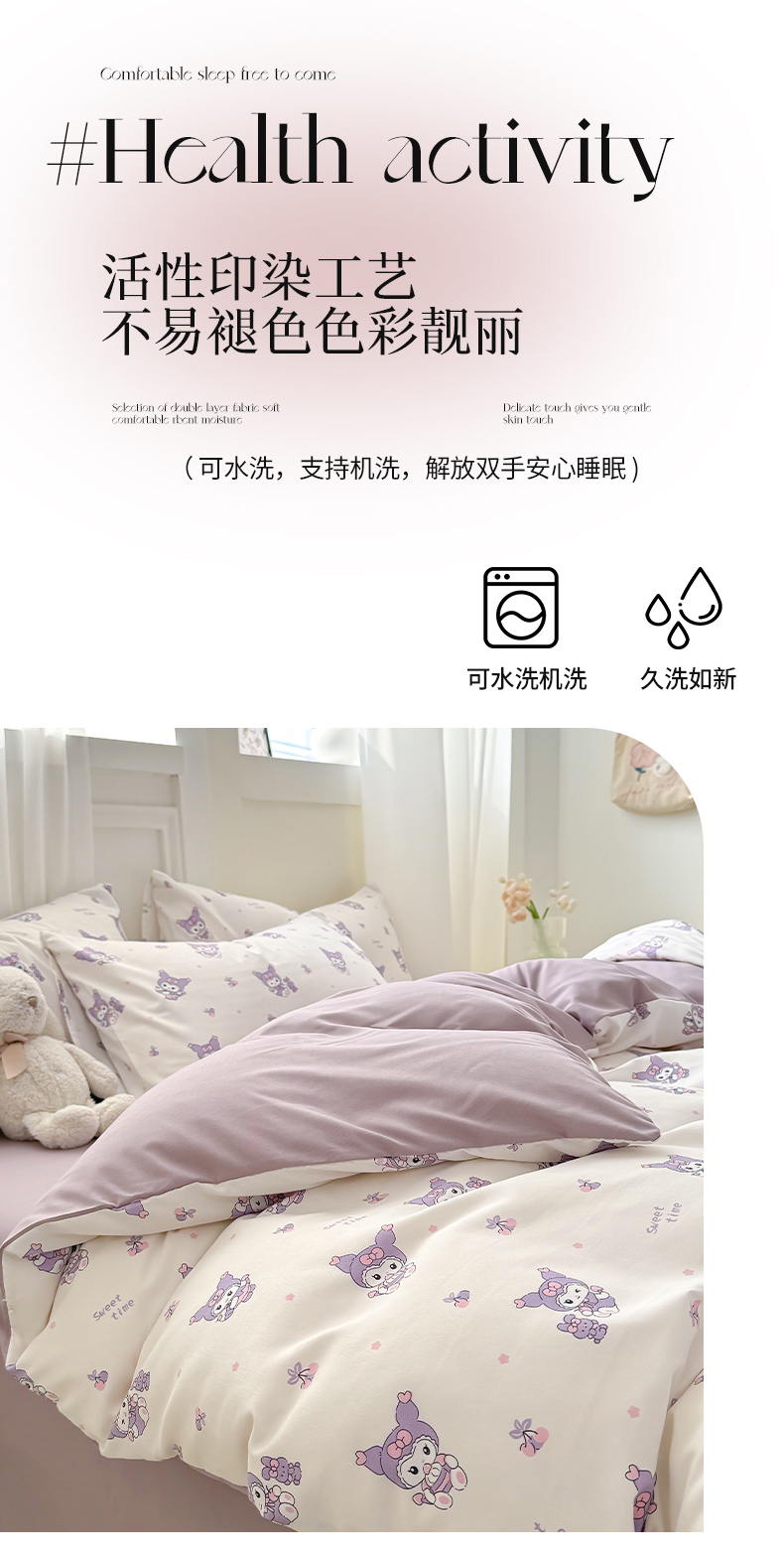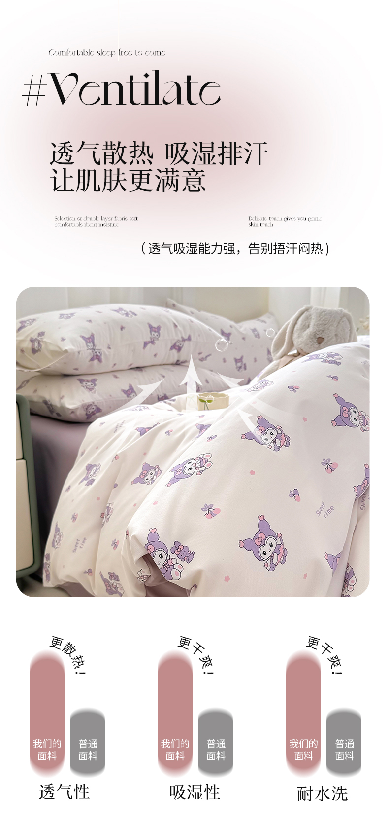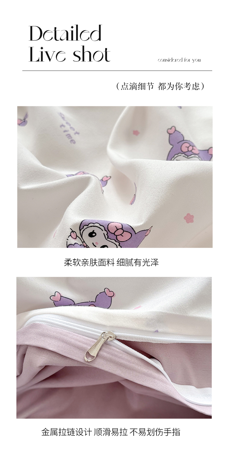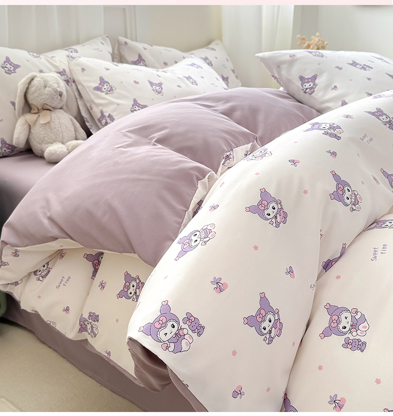当前位置: 91家纺网 > 商品网购 > 床品套件 > 四件套 > 针织棉四件套 > 丝芙妮家居2025新款水洗针织棉双层纱印花四件套 库洛米-白