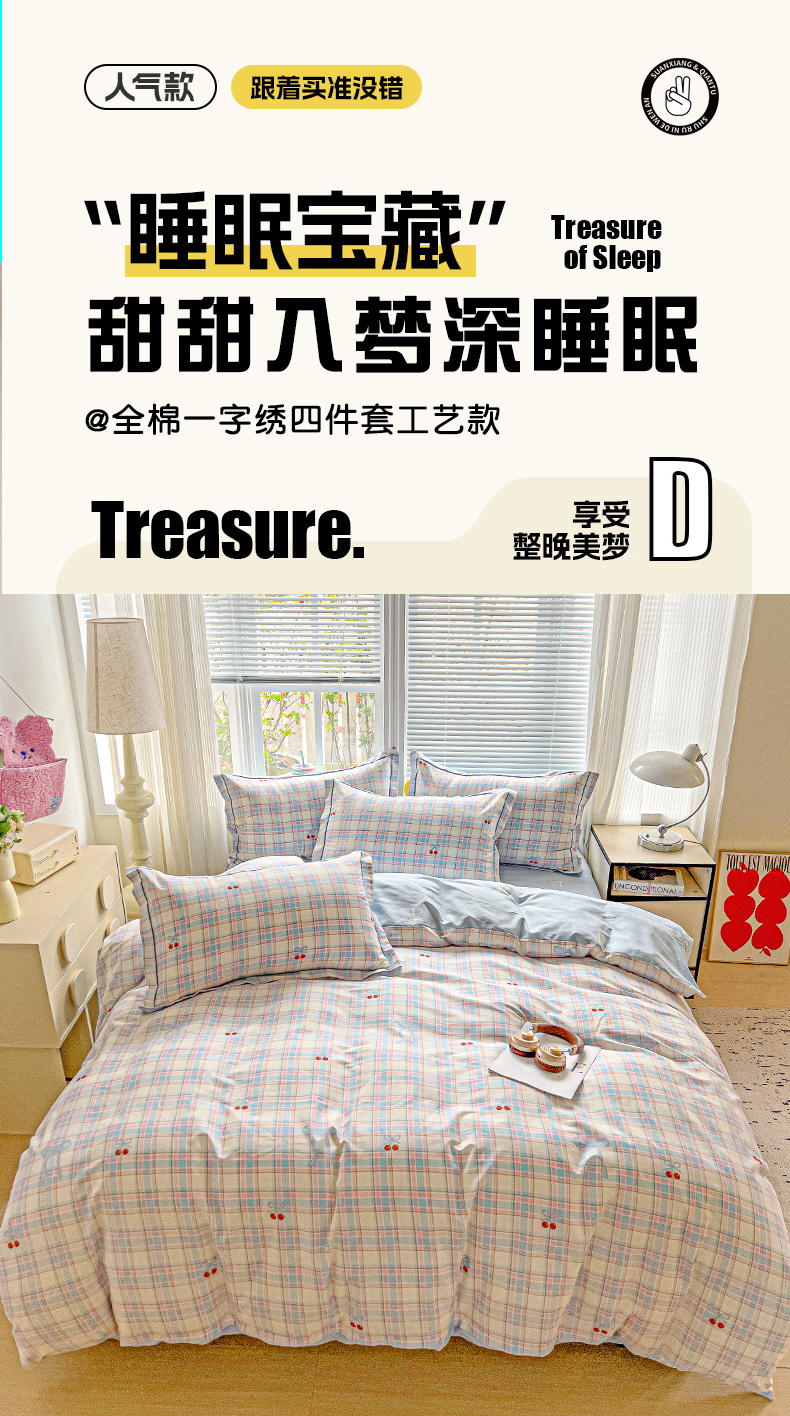 优选良品 2025新款全棉纯棉一字绣四件套系列 樱桃派