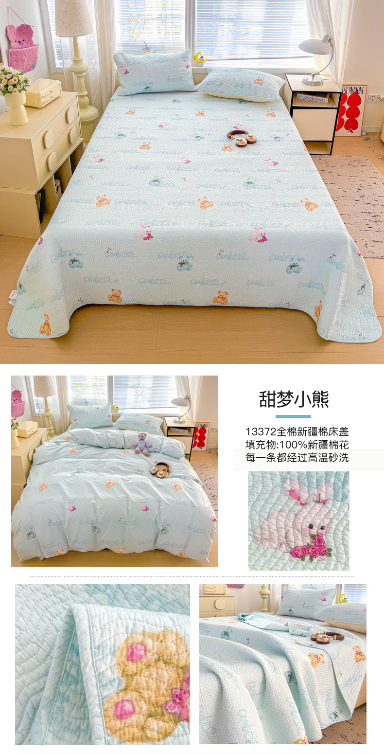 • 91家纺网 家纺一手货源 找家纺 羽爱家纺 2025全棉13372新疆棉花床盖三件套甜梦小熊