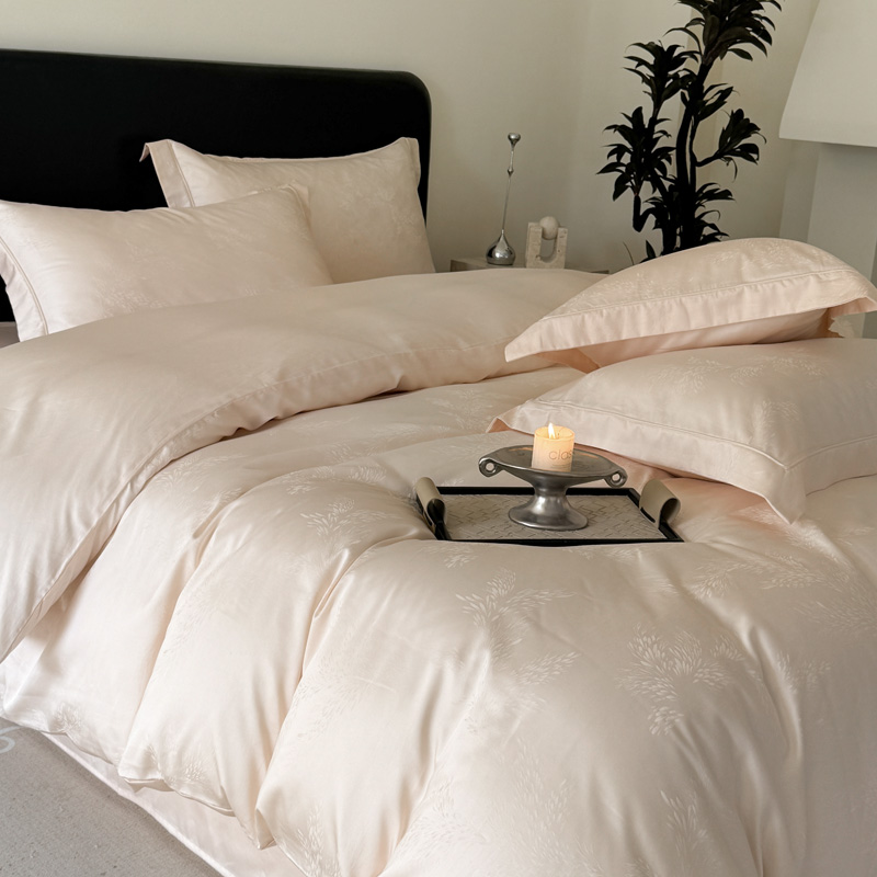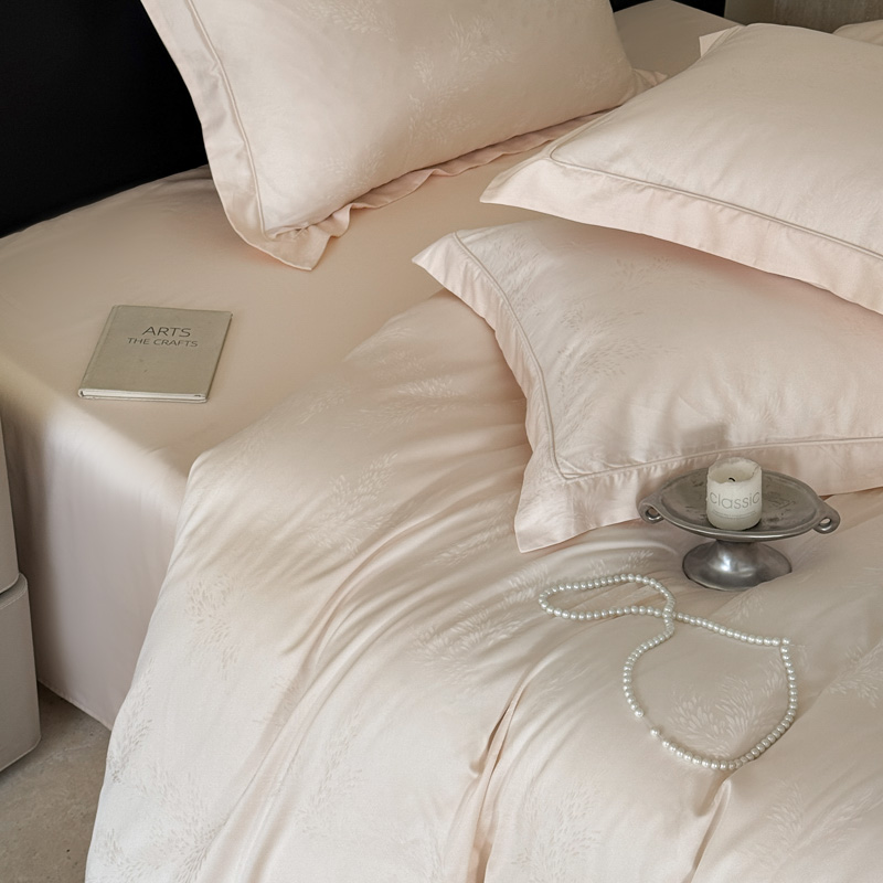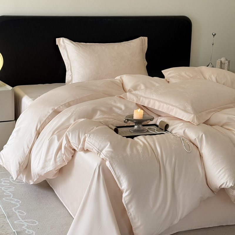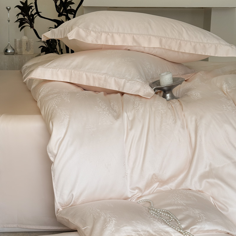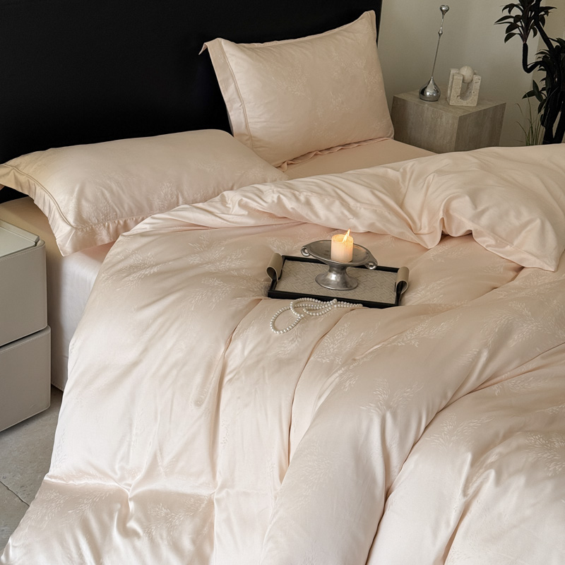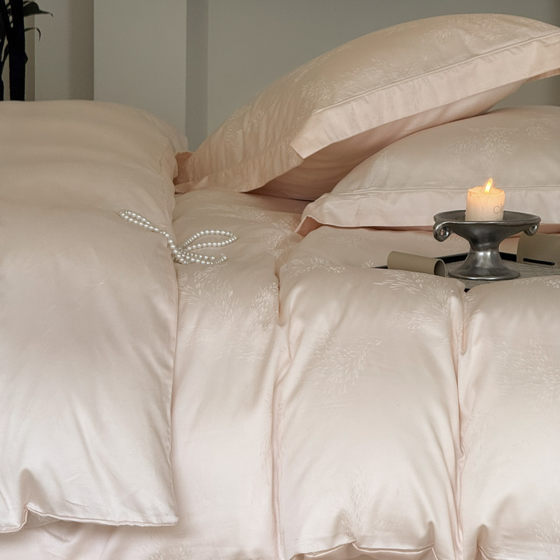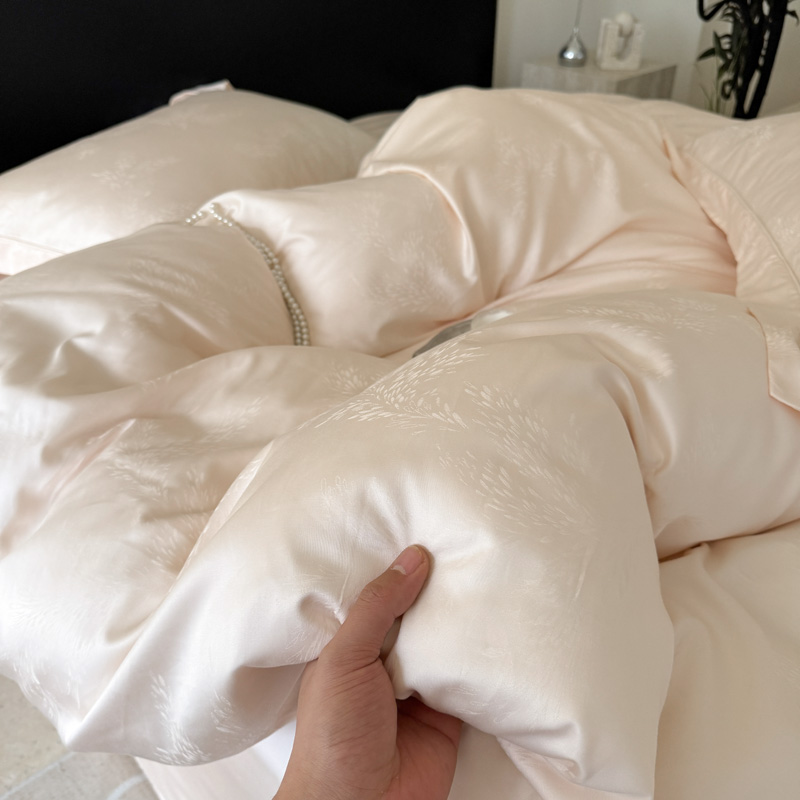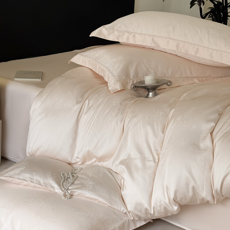 莱豫家纺 2025新款天丝棉提花四件套 雪莉粉玉