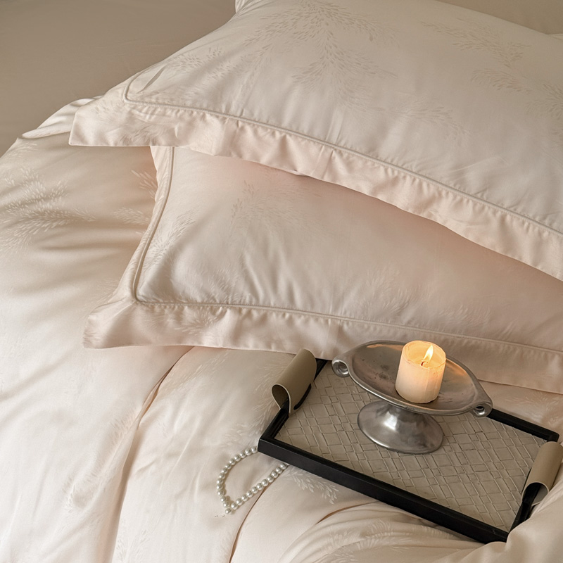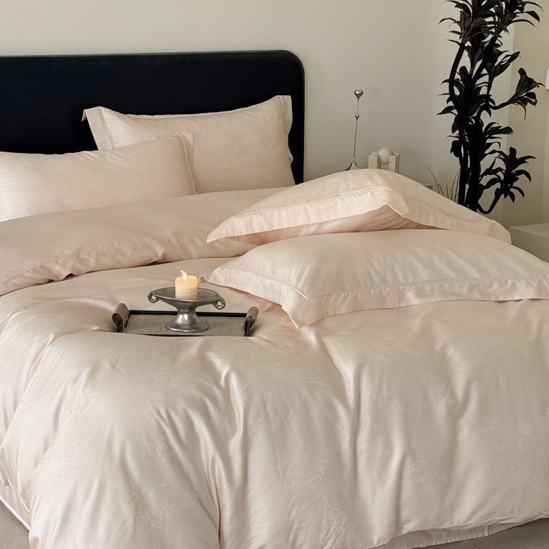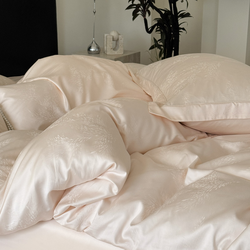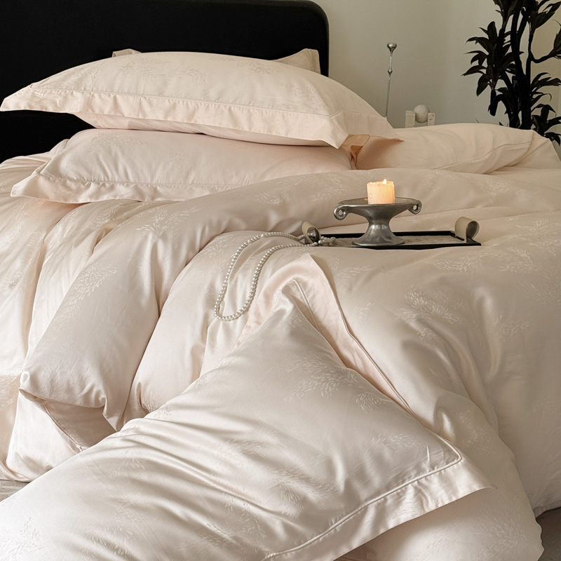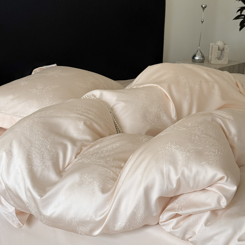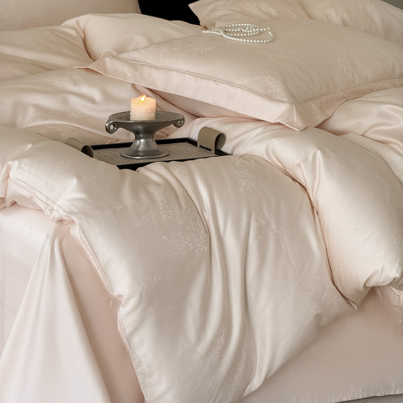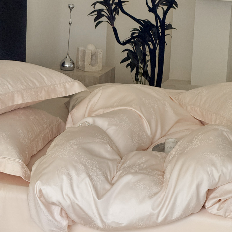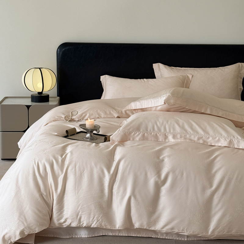 莱豫家纺 2025新款天丝棉提花四件套 雪莉粉玉