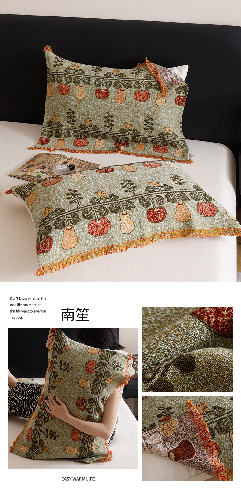 当前位置: 91家纺网 > 商品网购 > 床上用品 > 枕巾 > 麻依2025新款色织提花流苏枕巾 绵绵向上