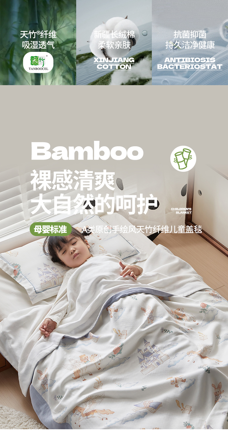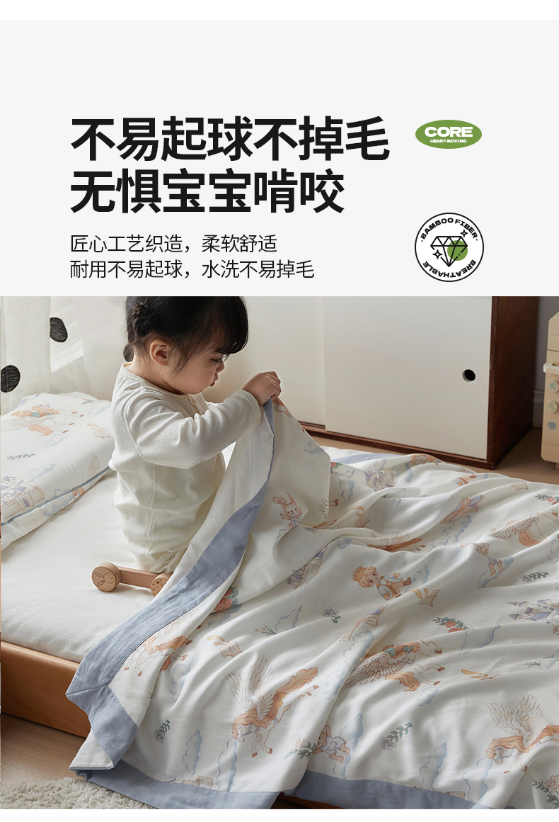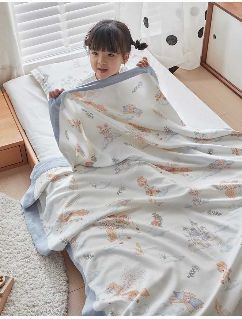 当前位置: 91家纺网 > 商品网购 > 毛毯休闲毯绒毯 > 毛毯 > 荷马之梦 2025新款天竹系列—A类原创印花天竹纤维四层纱儿童盖毯 飞马小王子