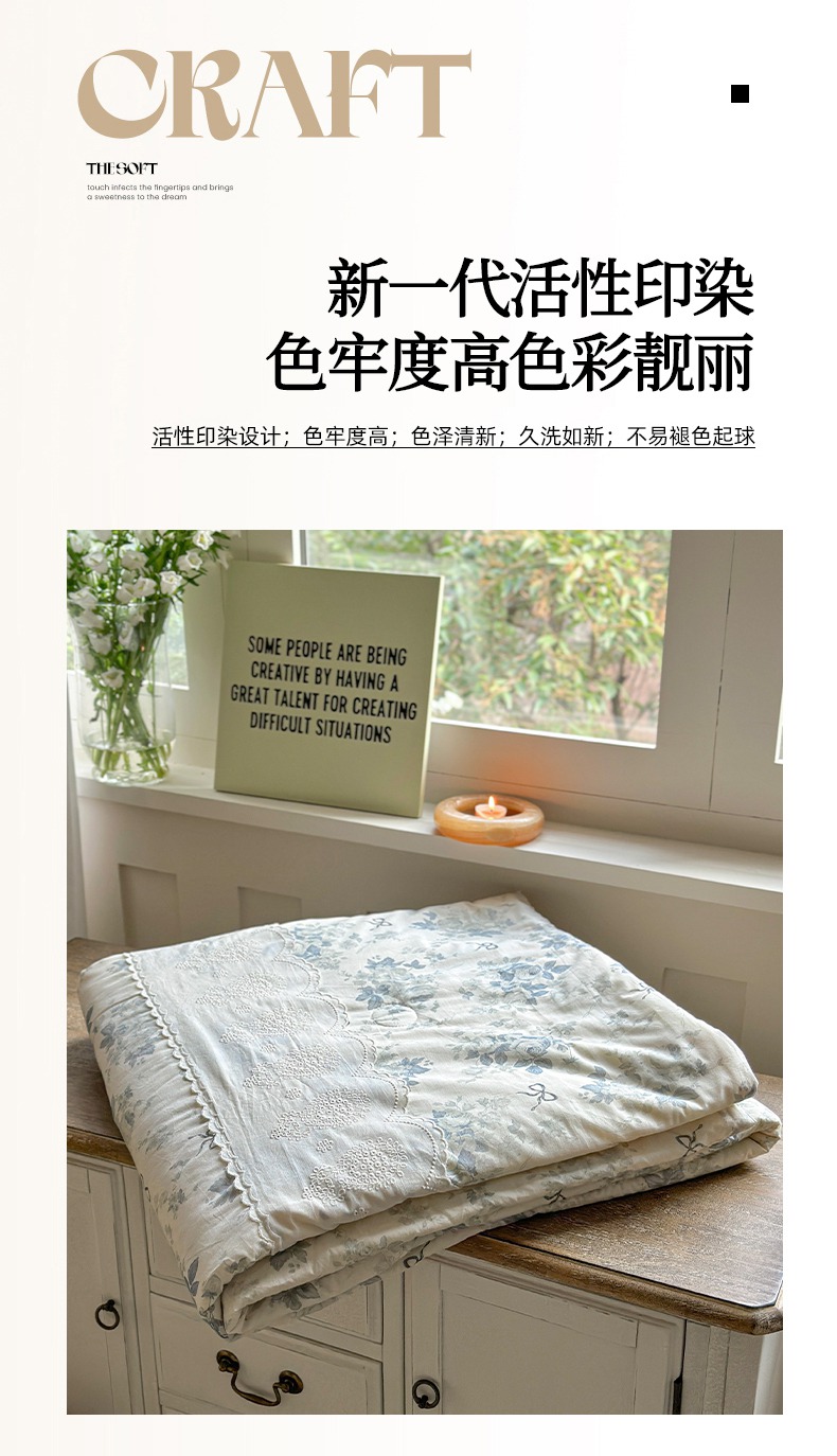 暖生活 2025新款60支全棉单层纱大豆被 蓝樱桃