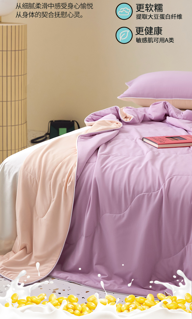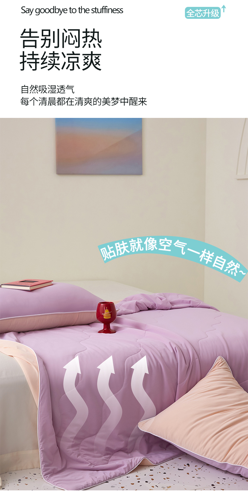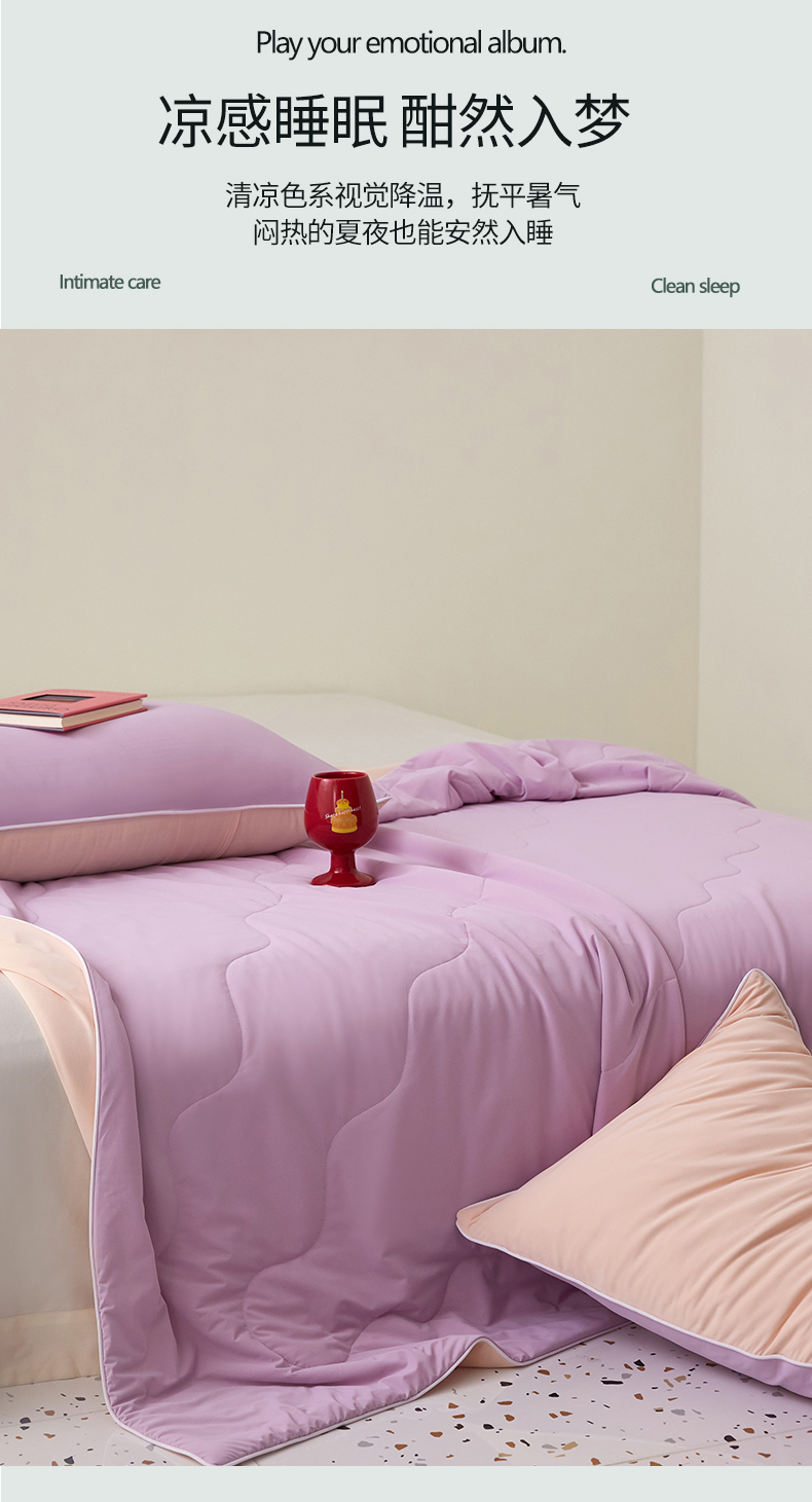 商品名称:头等舱 2025新款锦氨凉感A类20大豆7A抗菌纯色空调被夏凉被夏被(配礼盒) 优雅紫+浅粉玉