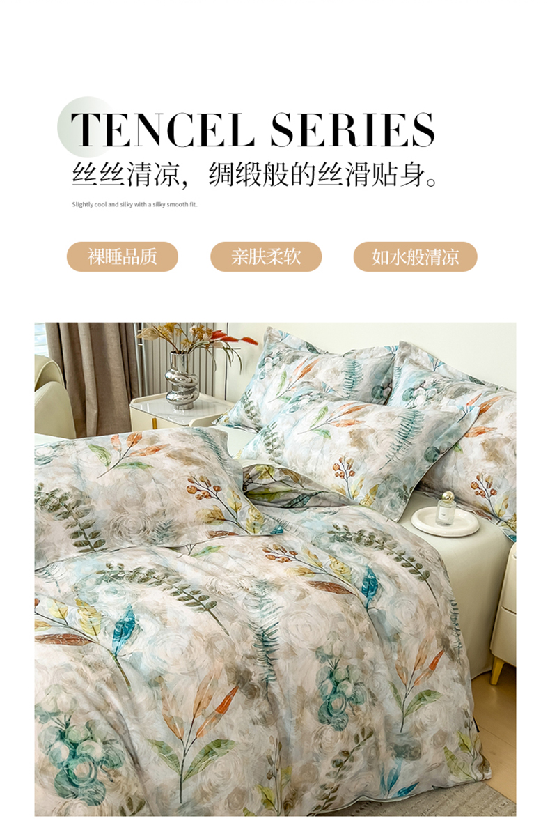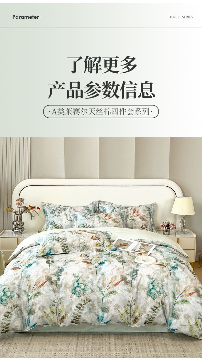 (总)芃成家纺 2025新款A类莱赛尔天丝棉四件套,梦幻花海,缤纷花语,国色天香,花开如画,花舞,奥斯汀玫瑰,春暖花开-粉,春暖花开-紫,春色写意-灰,春色写意-兰,冬雪寒香,繁花满庭,古典玫瑰,国色花韵-粉,国色花韵-玉,花涧入梦,秘境灰,莫奈花园,青花瓷,秋日私语,水墨花卉,晚秋,絮语,烟云牡丹