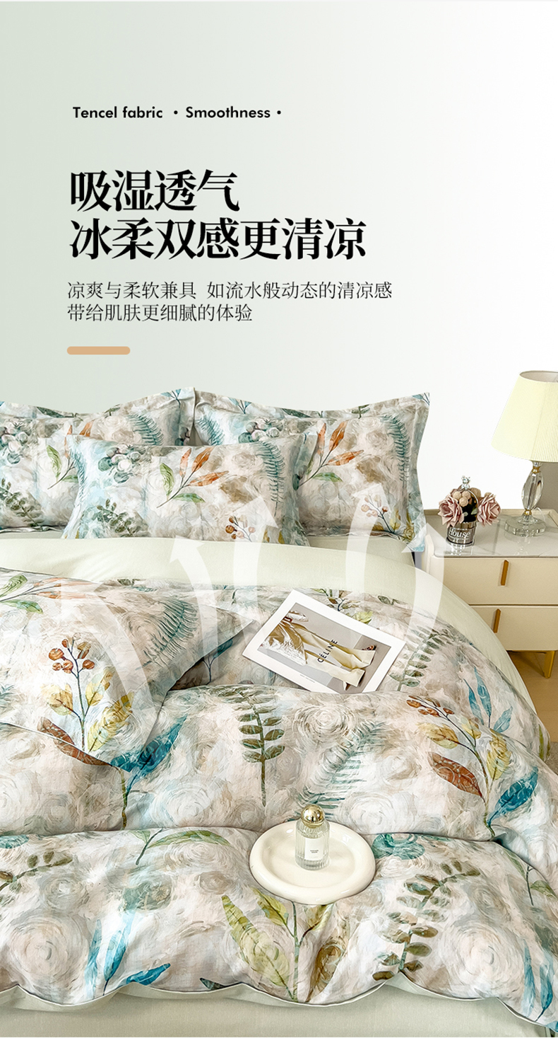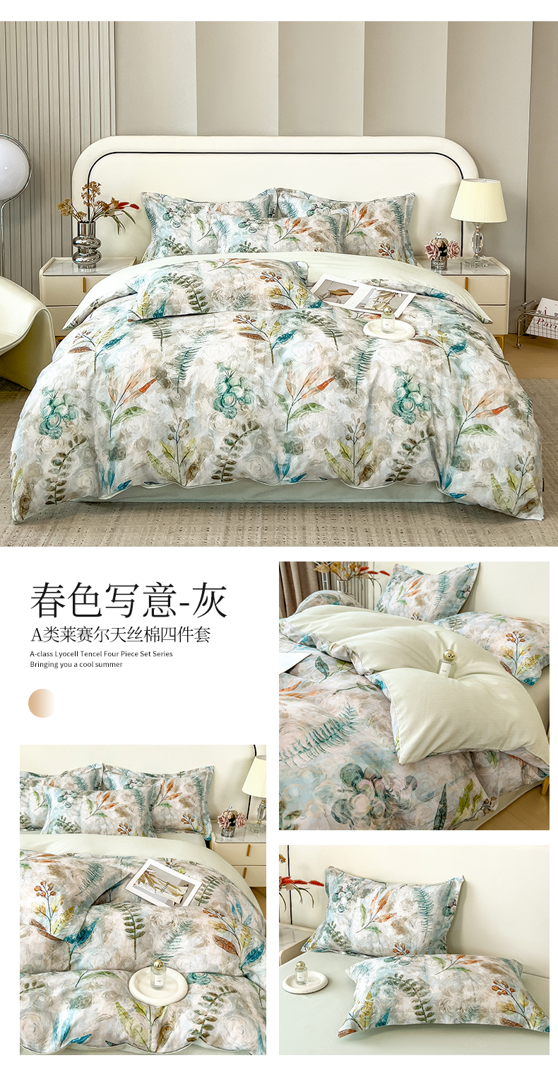 商品名称:芃成家纺 2025新款A类莱赛尔天丝棉四件套 春色写意-灰