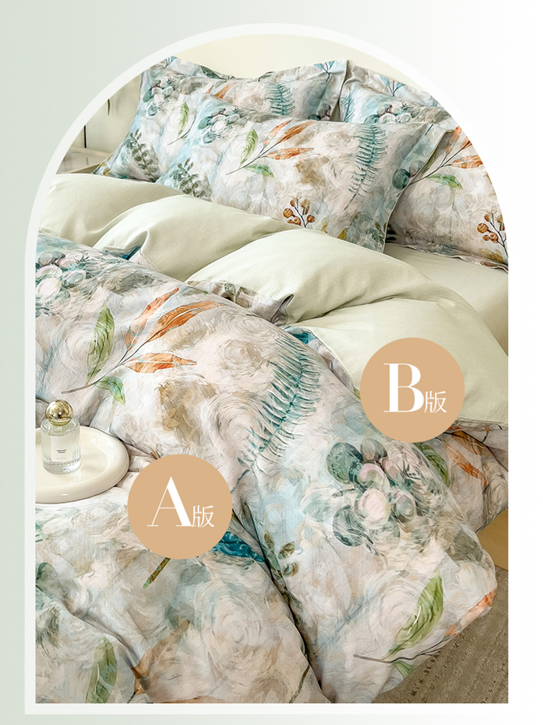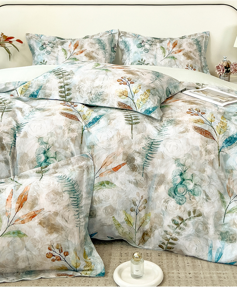 芃成家纺 2025新款A类莱赛尔天丝棉四件套 春色写意-灰
