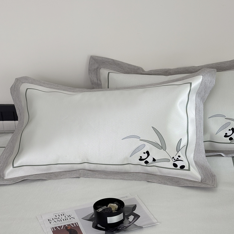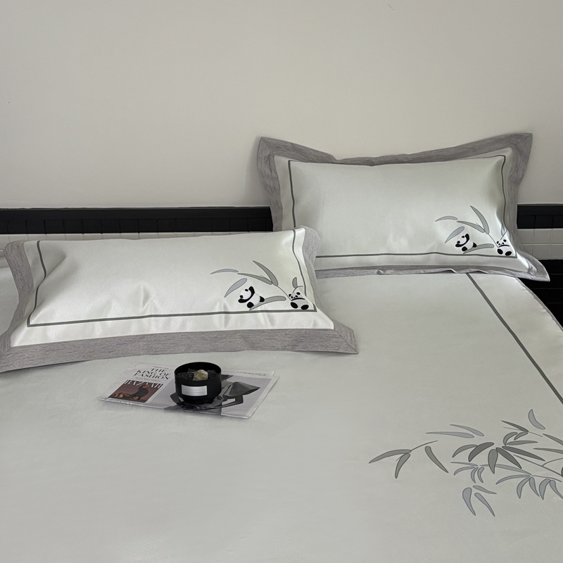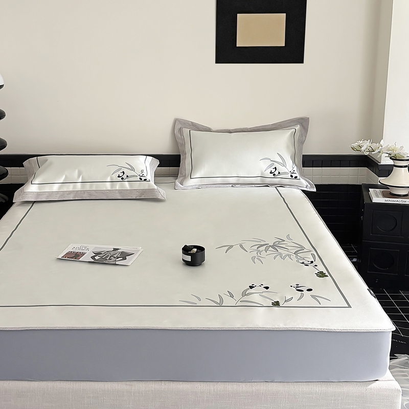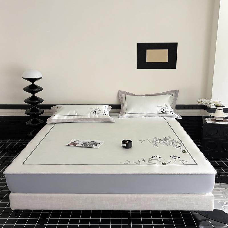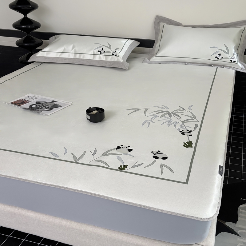 木希2025春夏新款可水洗冰丝席幻彩刺绣床笠系列-场景一 熊猫乐园