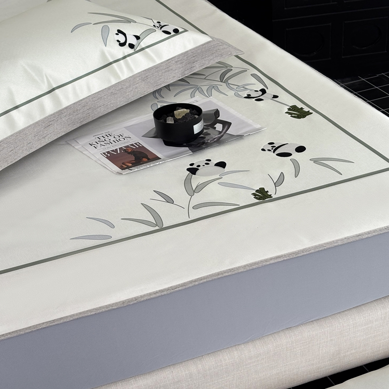 商品名称:木希2025春夏新款可水洗冰丝席幻彩刺绣床笠系列-场景一 熊猫乐园