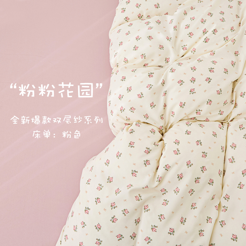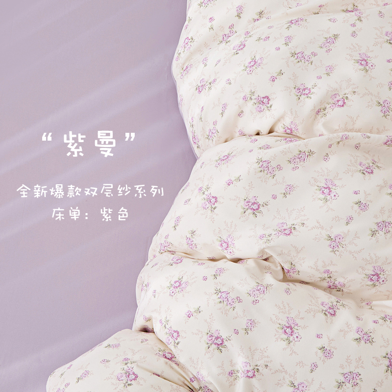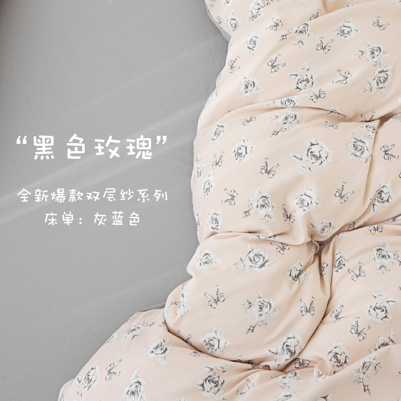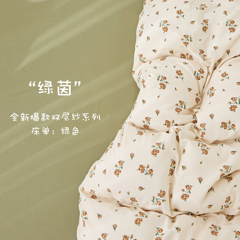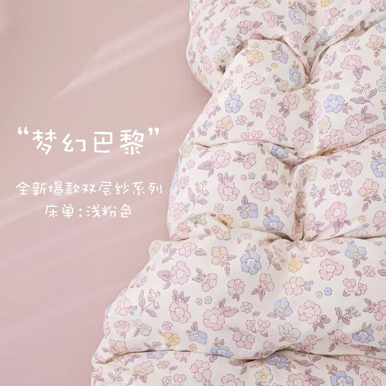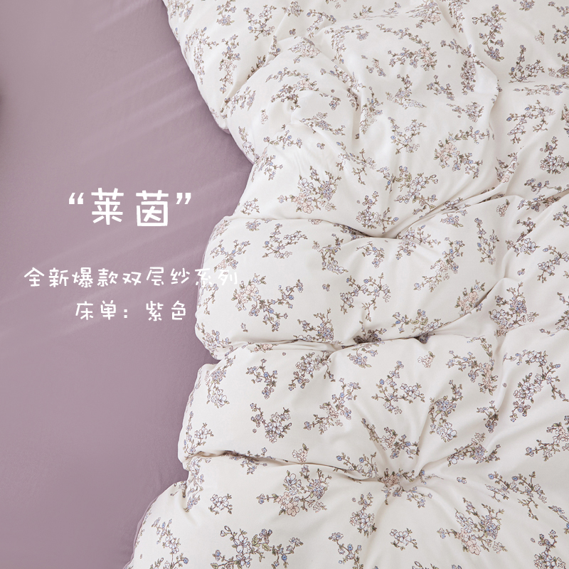 (总)蕾诺家纺 2025新款直播新款A类有氧提花云纱棉圆角吊边工艺四件套学生三件套
