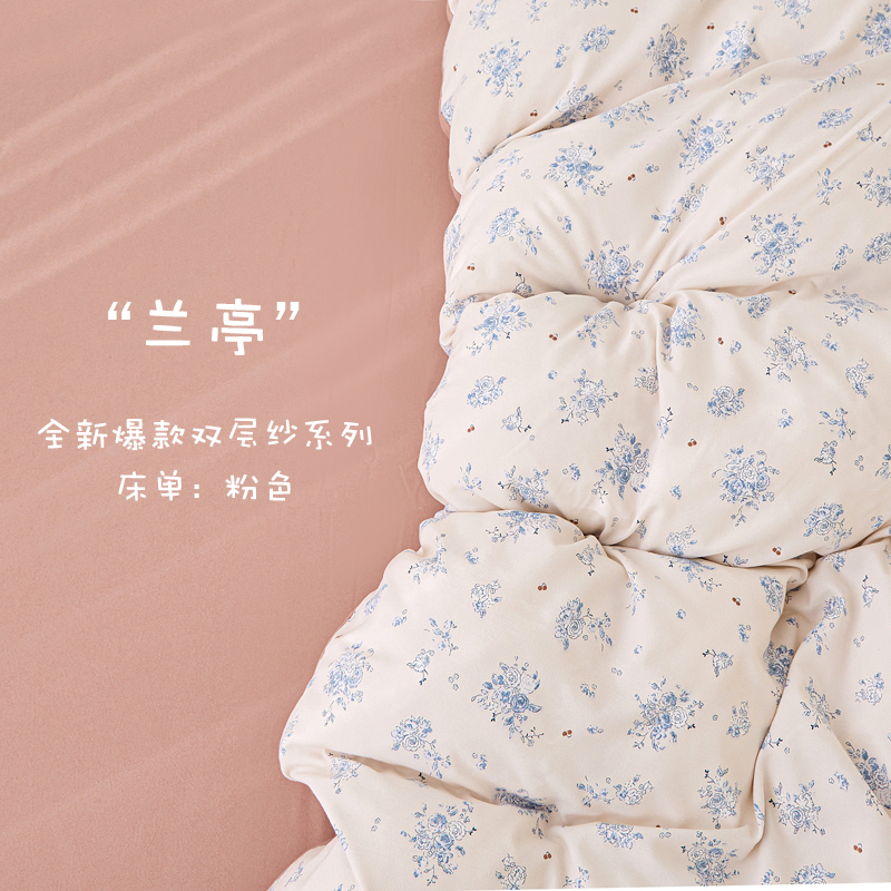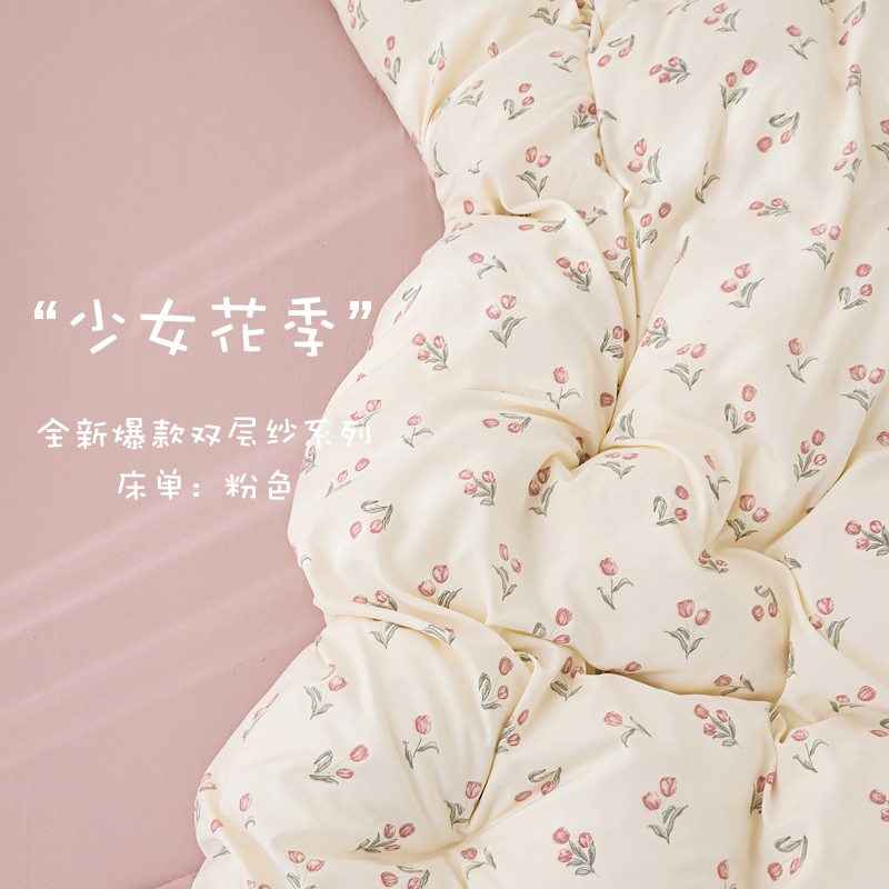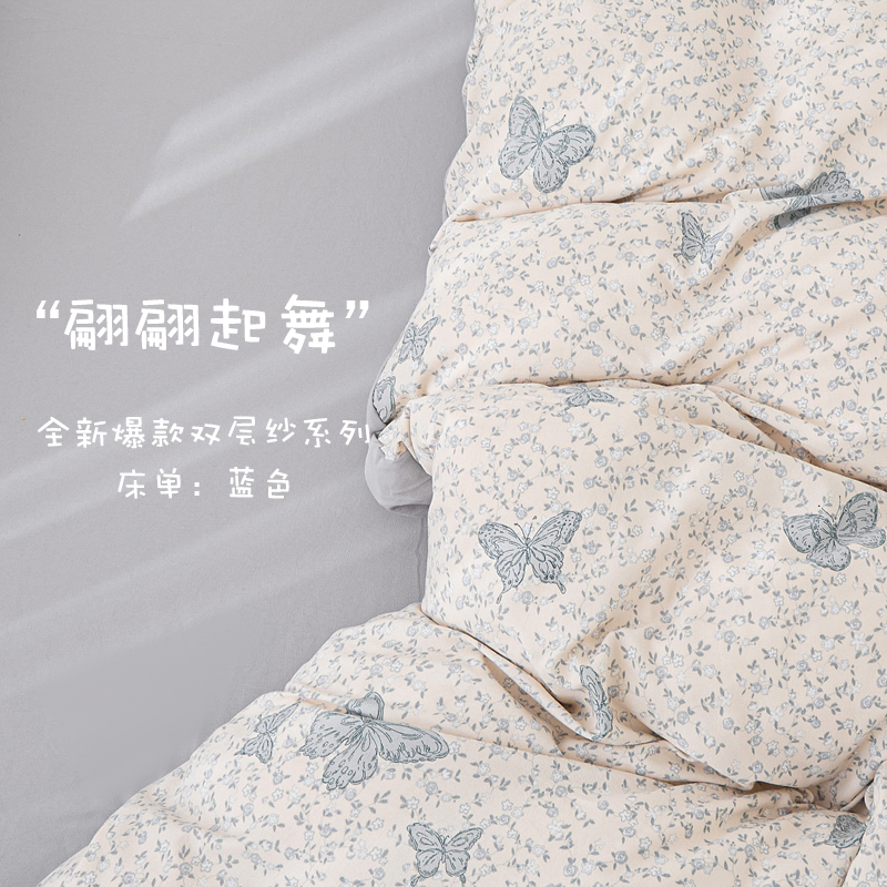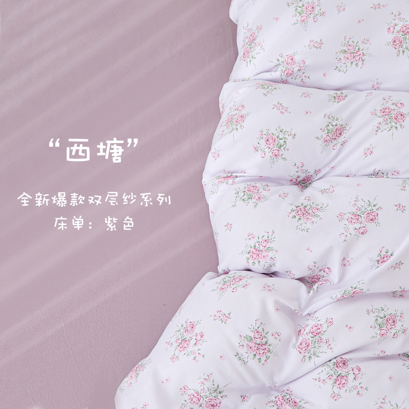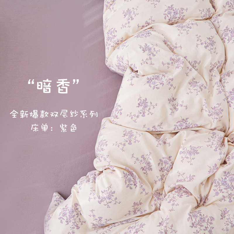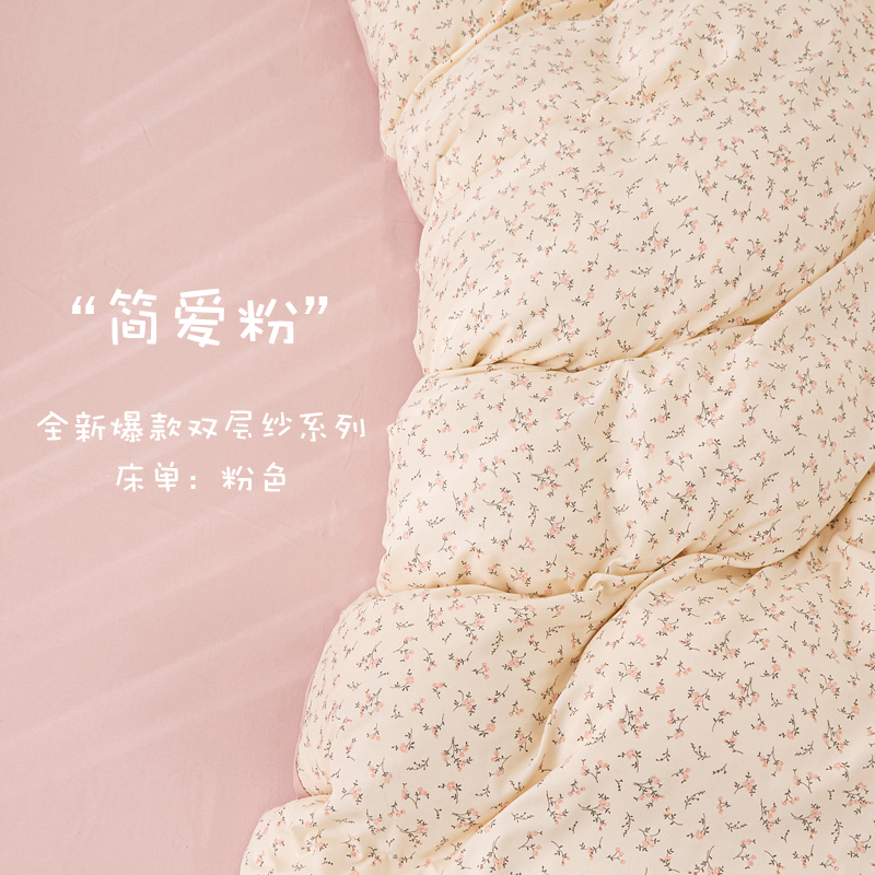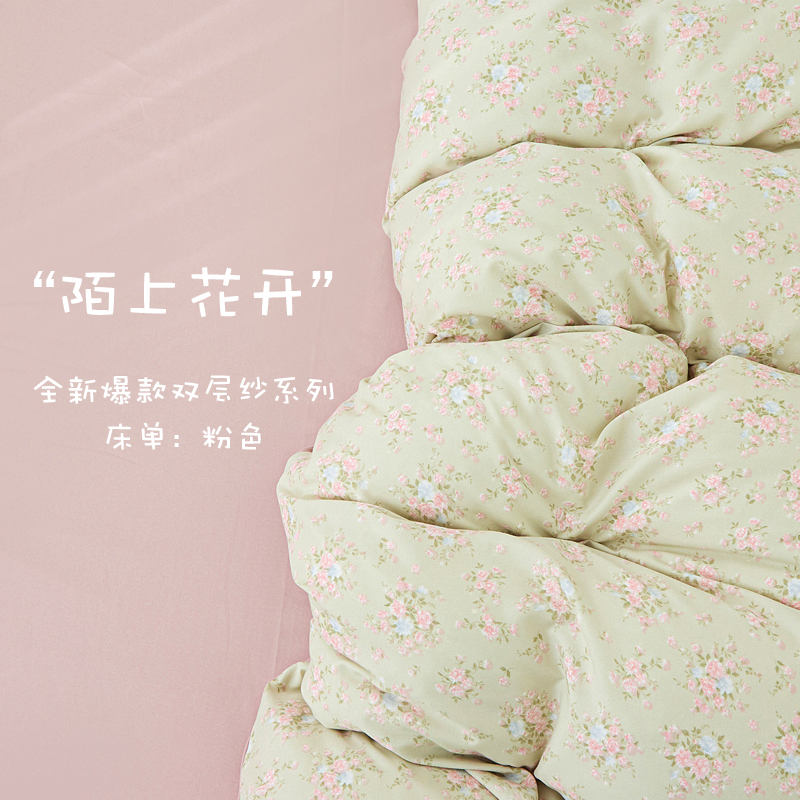 (总)蕾诺家纺 2025新款直播新款A类有氧提花云纱棉圆角吊边工艺四件套学生三件套