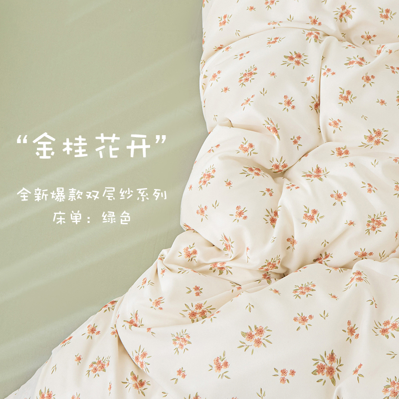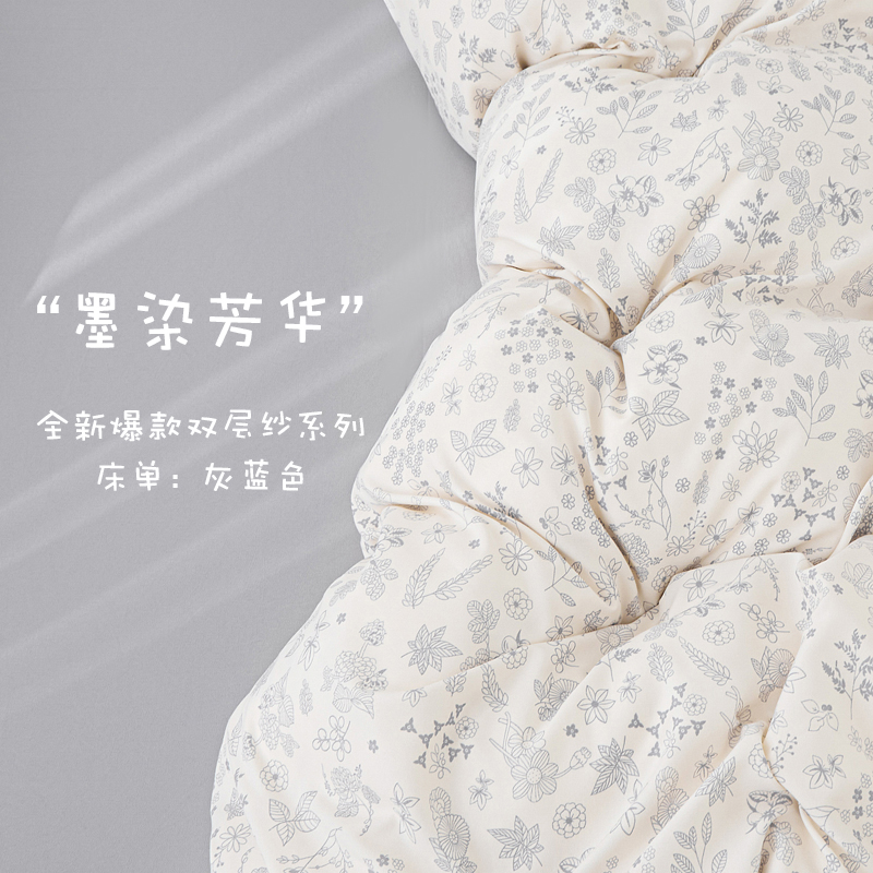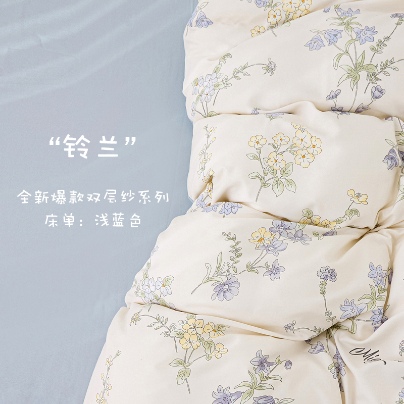 商品名称:(总)蕾诺家纺 2025新款直播新款A类有氧提花云纱棉圆角吊边工艺四件套学生三件套