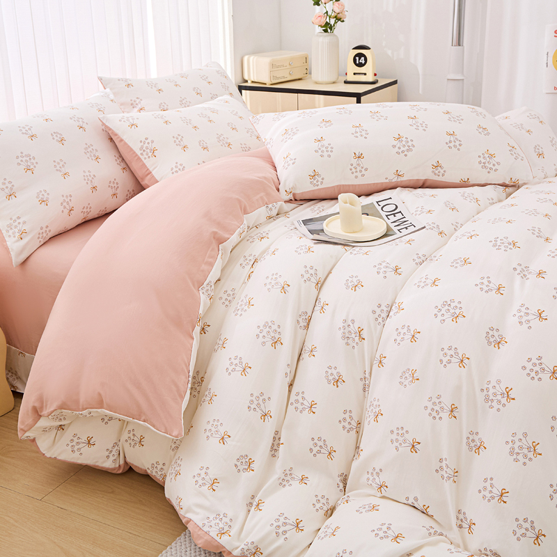 蕾诺家纺 2025新款直播新款A类有氧提花云纱棉圆角吊边工艺四件套学生三件套 蒲公英