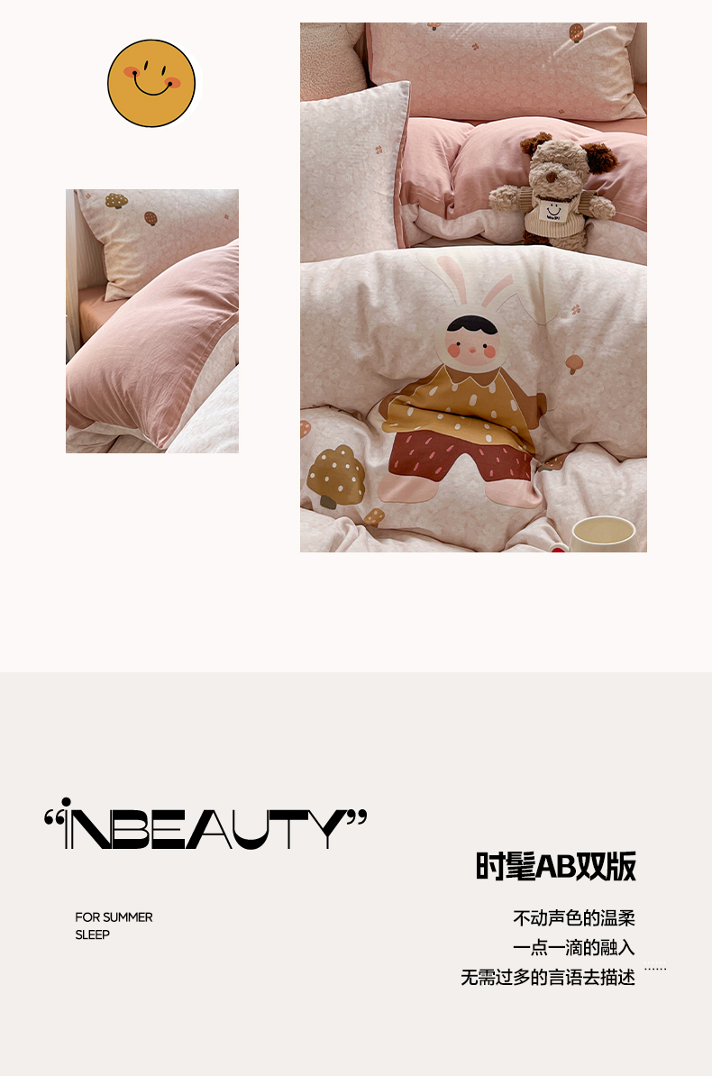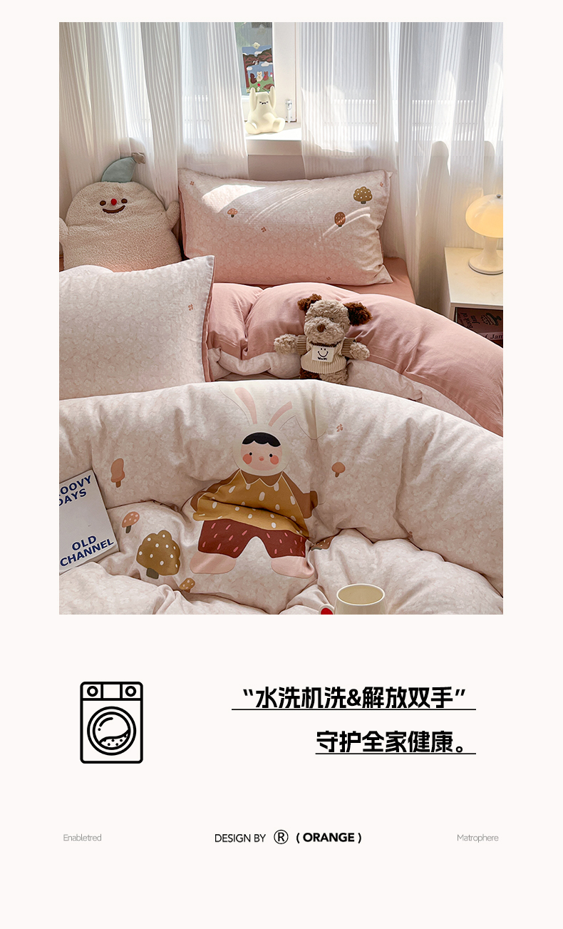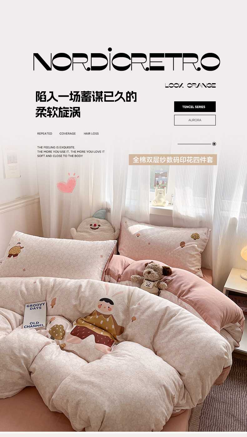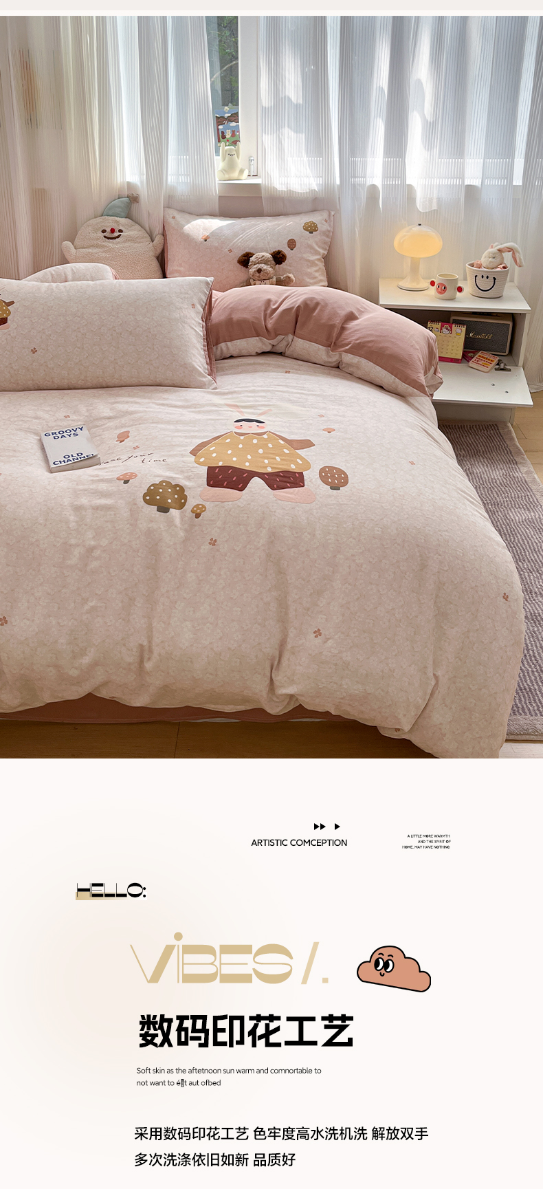 莱米家纺 2025新款全棉双层纱数码印花四件套 快乐娃娃