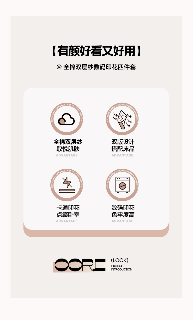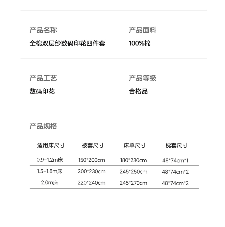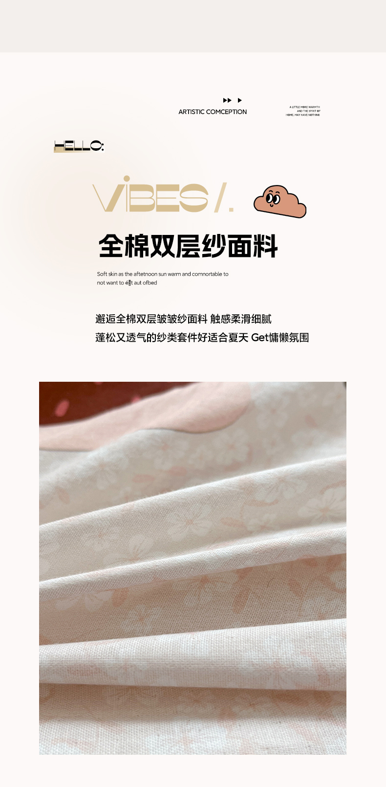 商品名称:莱米家纺 2025新款全棉双层纱数码印花四件套 快乐娃娃