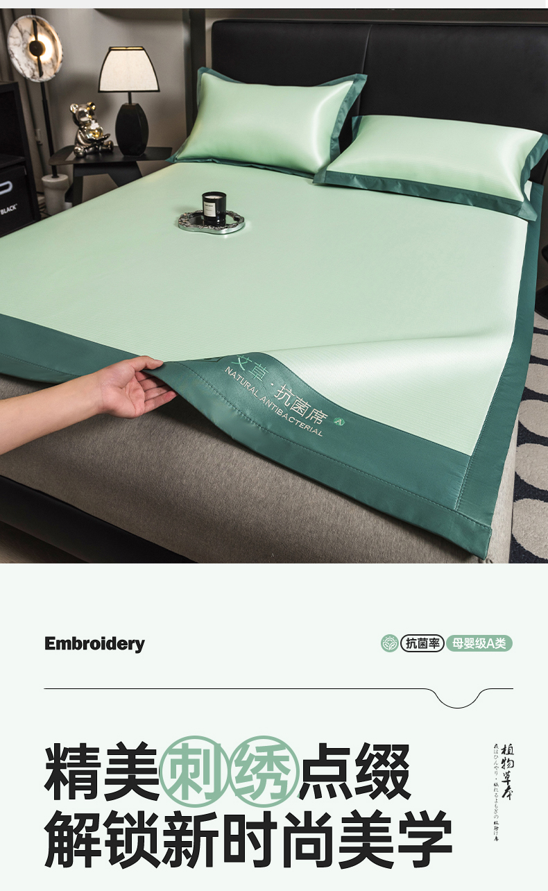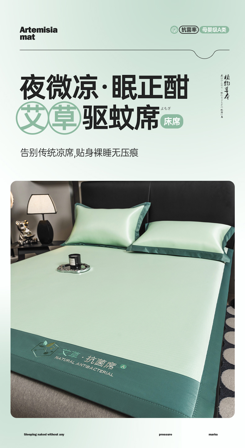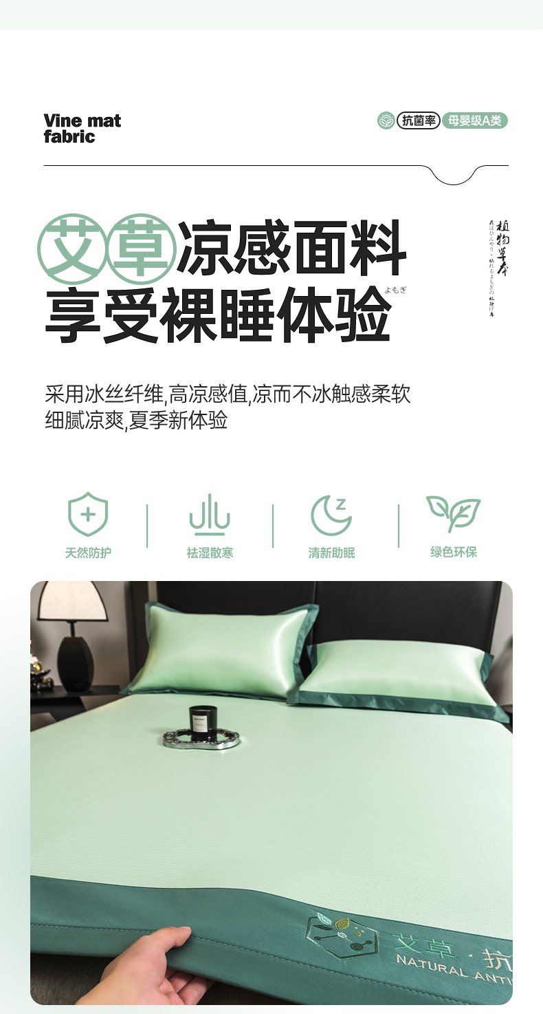 当前位置: 91家纺网 > 商品网购 > 床上用品 > 凉席 > 冰丝席 > 全季家居 2025新款5A加厚加密艾草碳光席冰丝席 床席-水绿