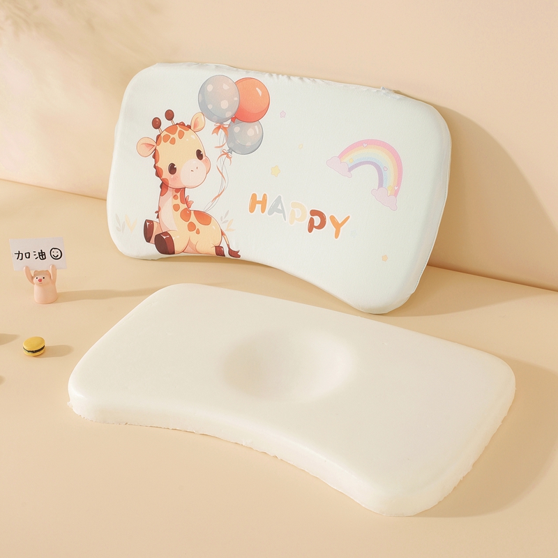 温蔓2025新款冰感丝卡通印花婴童枕 蓝气球长颈鹿25*45加内胆