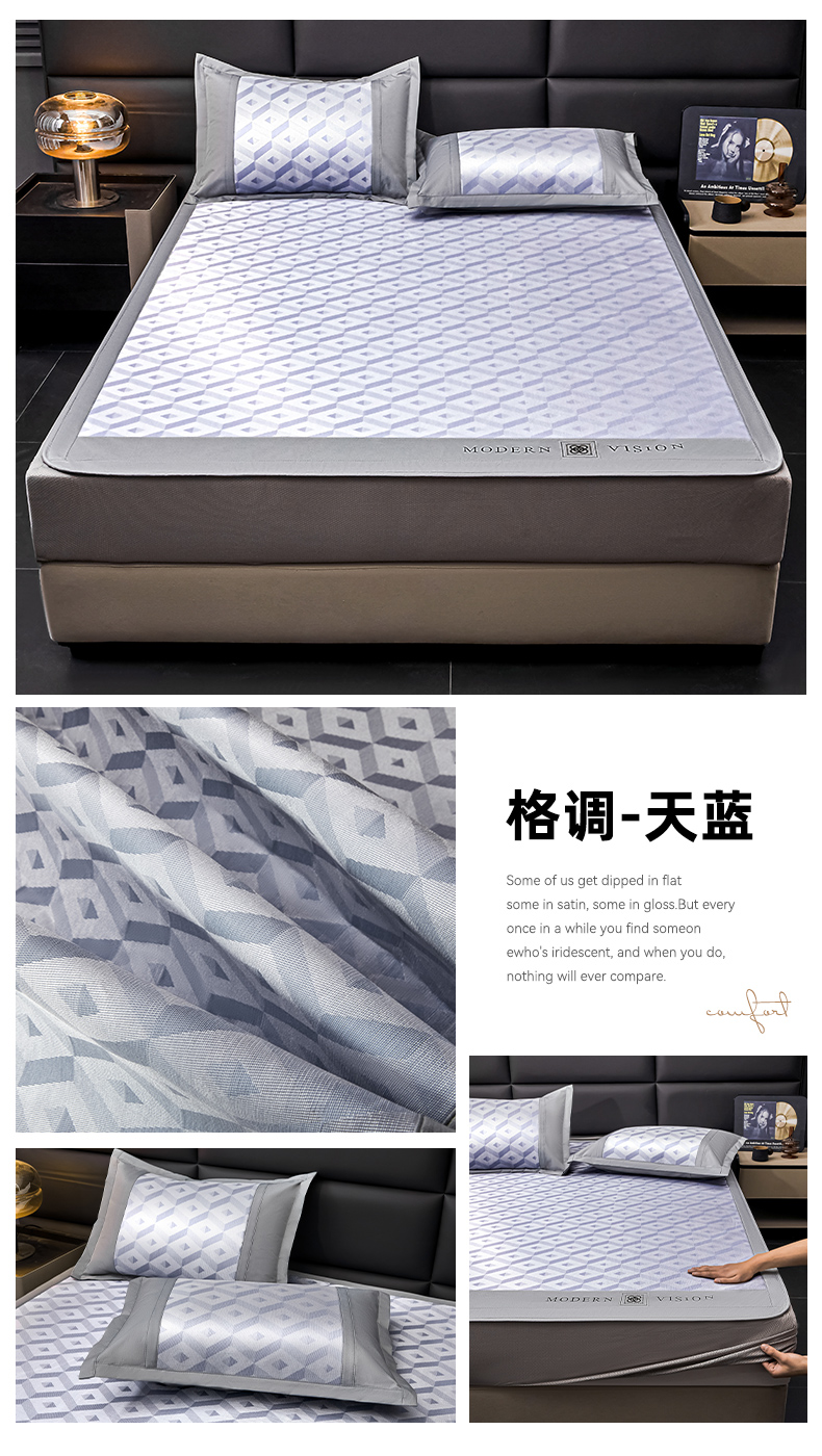 当前位置: 91家纺网 > 商品网购 > 床上用品 > 凉席 > 凉席套件 > 全季家居 2025新款5A抗菌3D立体冰柔凉感冰丝席 格调-天蓝 床笠款