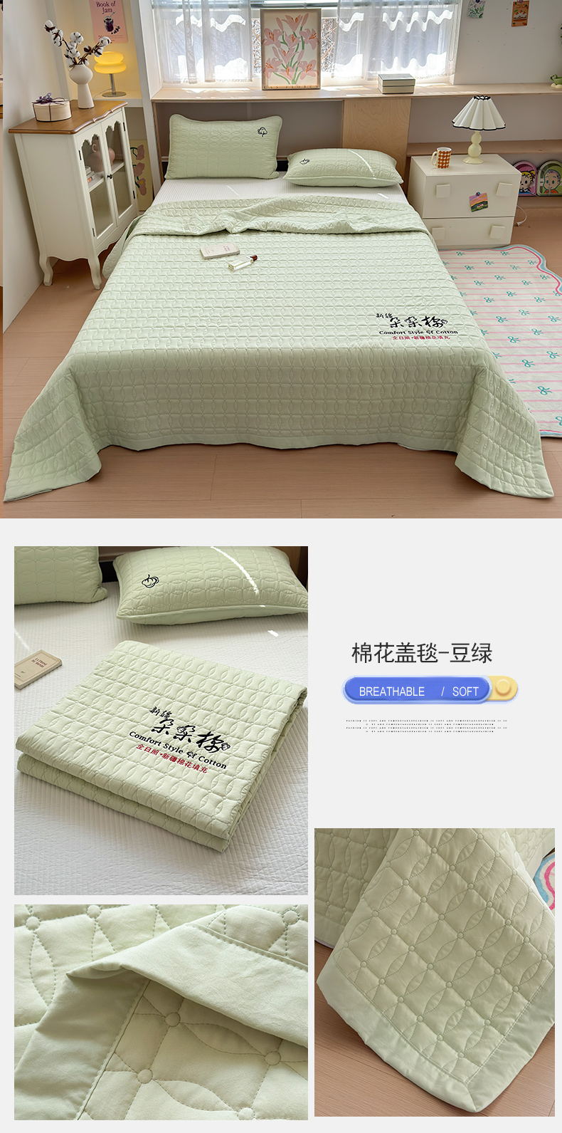 云雀 2025新款A类加棉刺绣棉花床笠+盖毯 棉花盖毯-豆绿