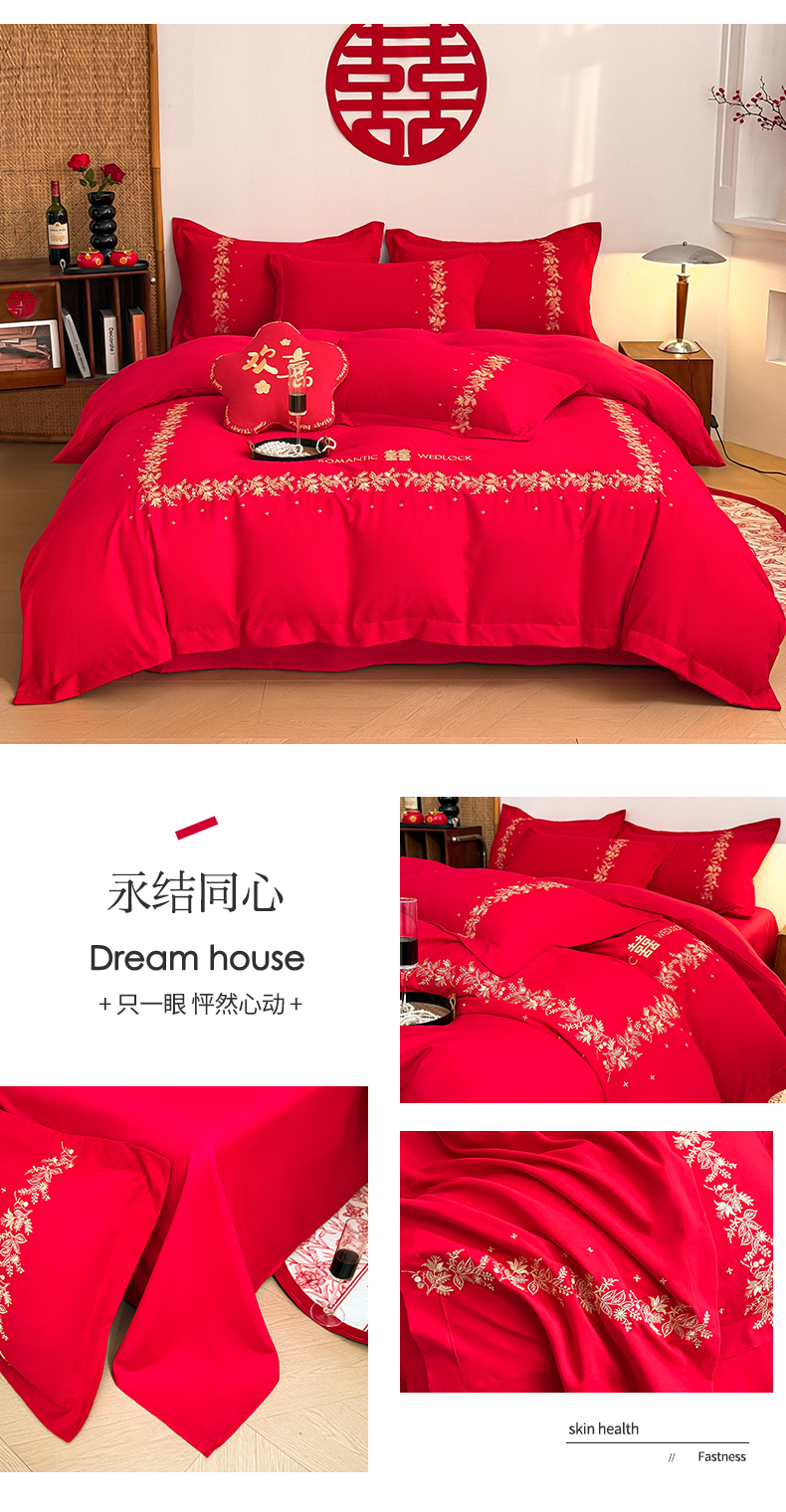 (总)花愿(原花纪) 2025新款水洗棉刺绣婚庆四件套系列,丹枫迎喜,欢喜,良缘,龙凤欢喜,玫瑰之恋,美满,如意,天禧,唯一,喜爱,心心相印,幸福,永恒之恋,钟爱一生