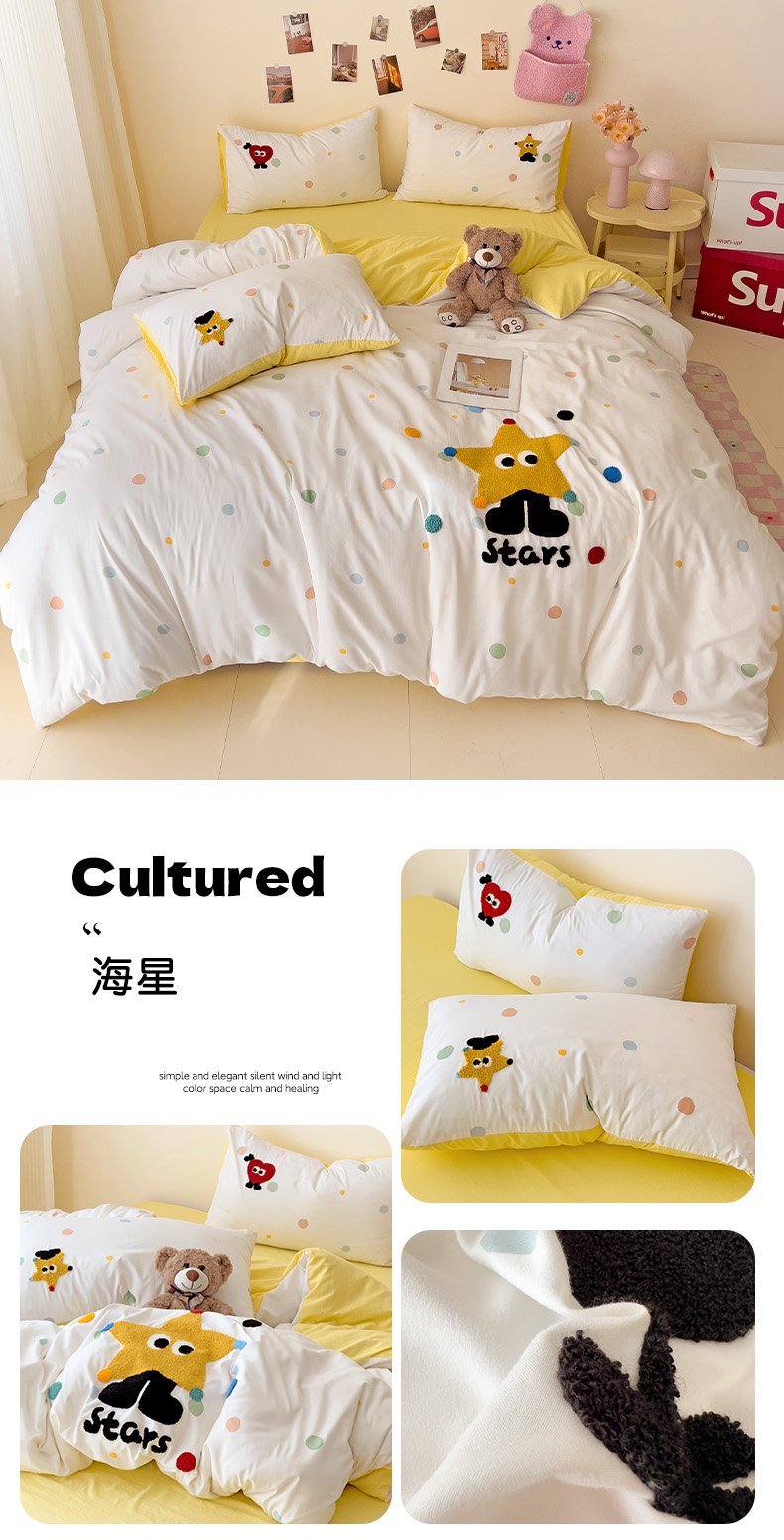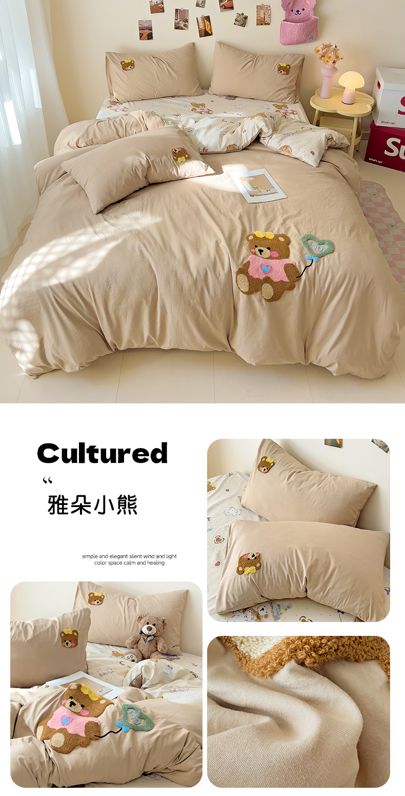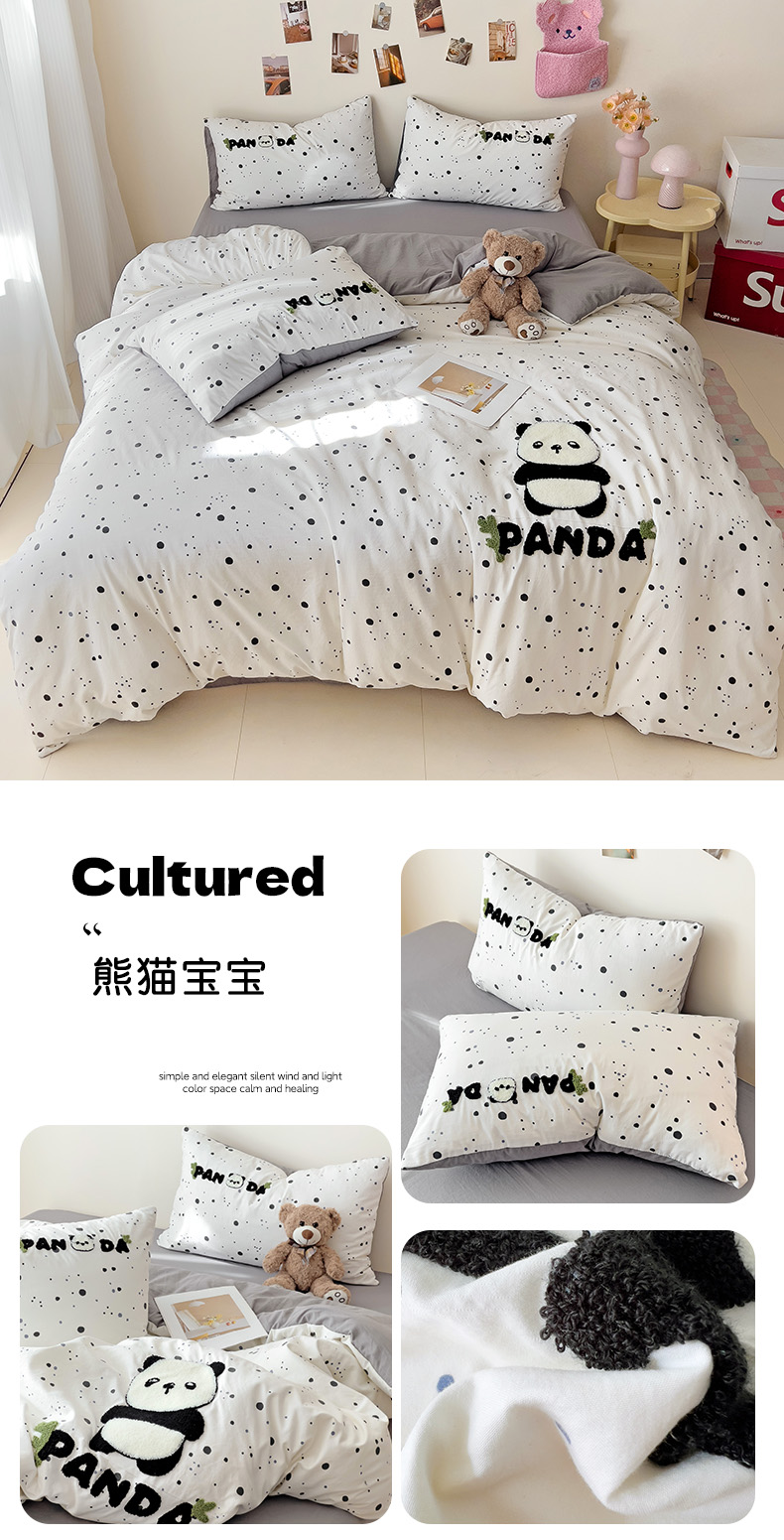 商品名称:梧桐家居 2025新款水洗云朵棉毛巾绣印花加绣花系列四件套 熊猫宝宝