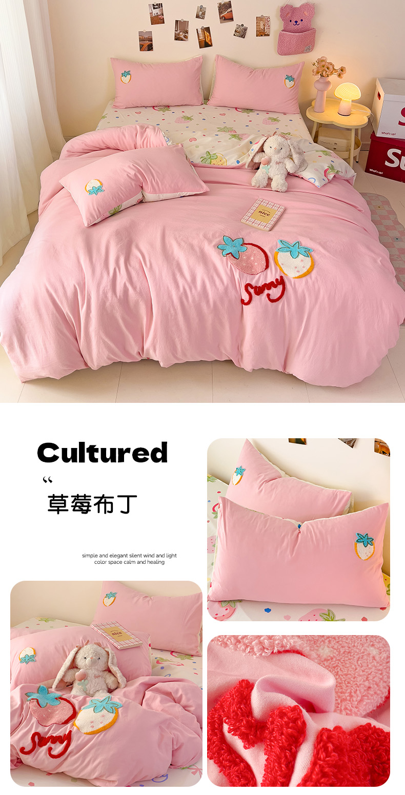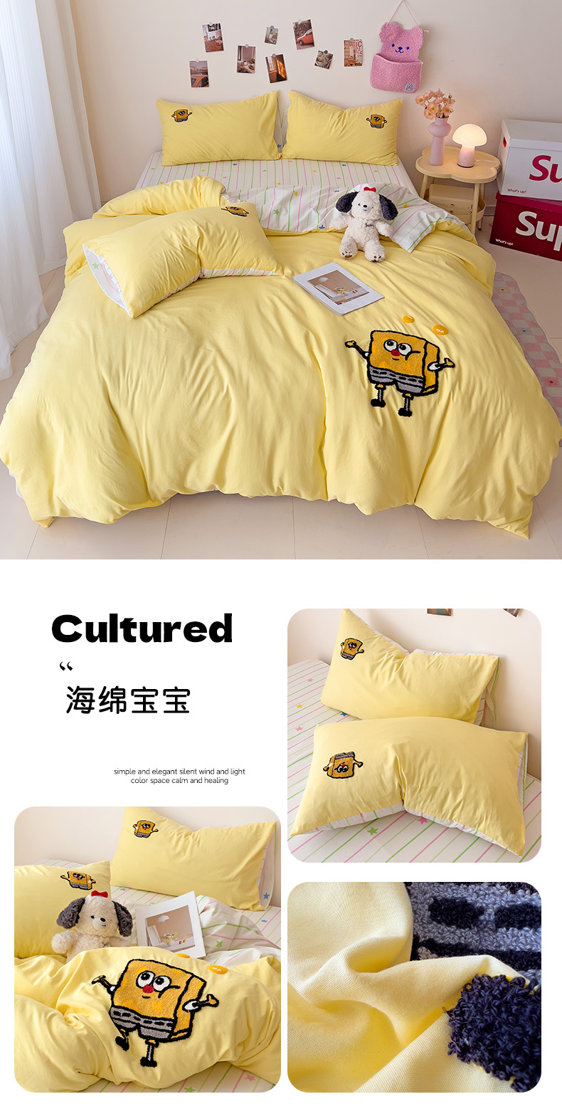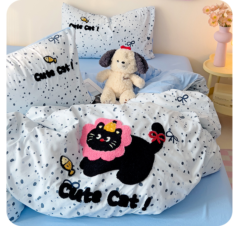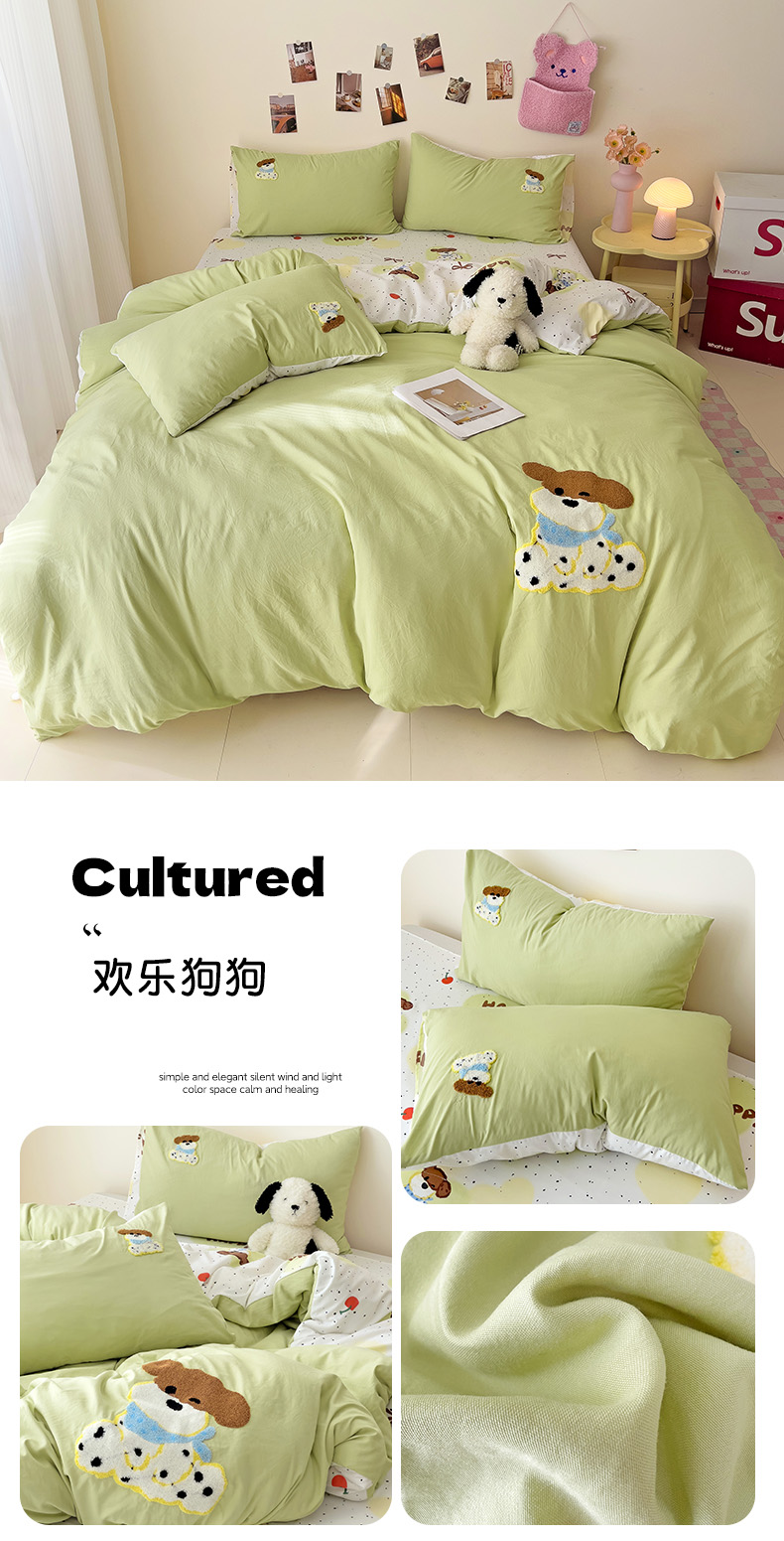 商品名称:梧桐家居 2025新款水洗云朵棉毛巾绣印花加绣花系列四件套 熊猫宝宝