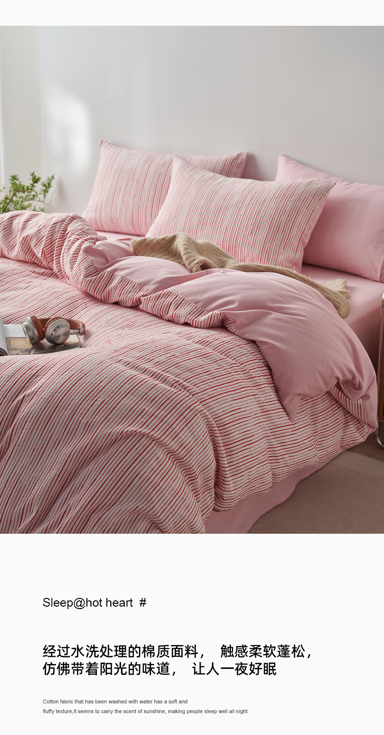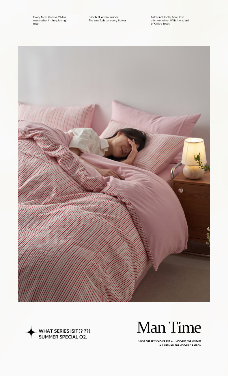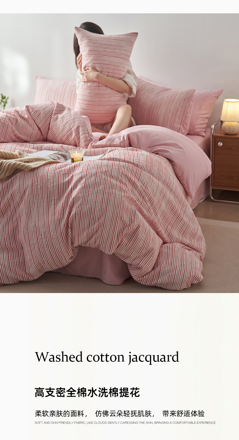 (总)千朵森 2025新款全棉色织提花条纹四件套