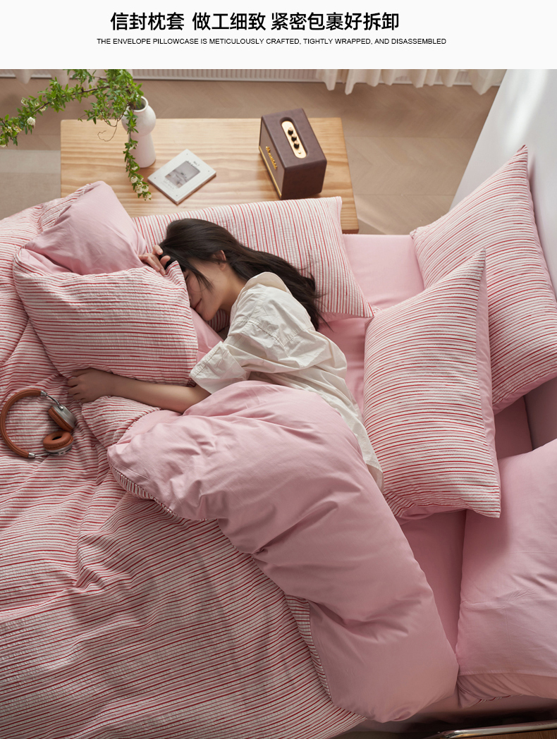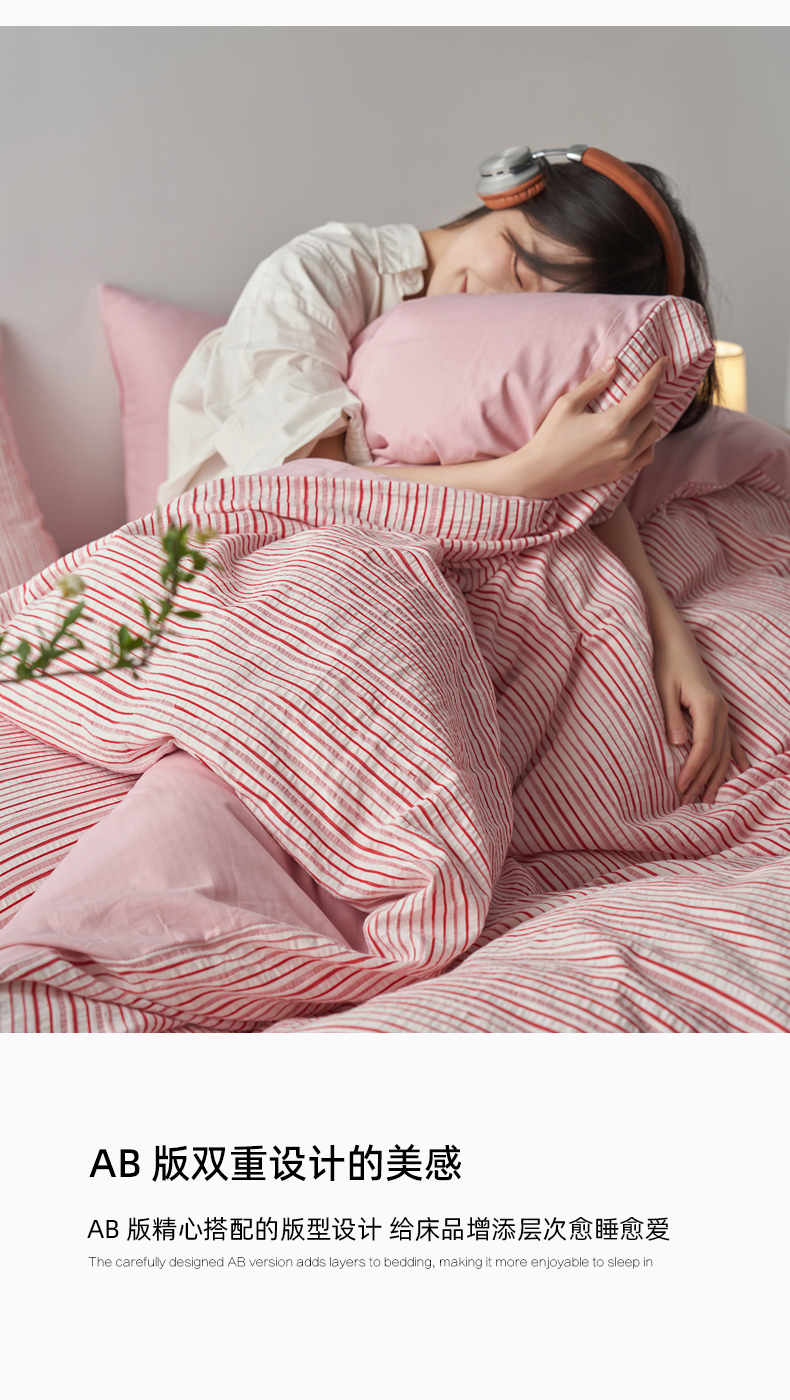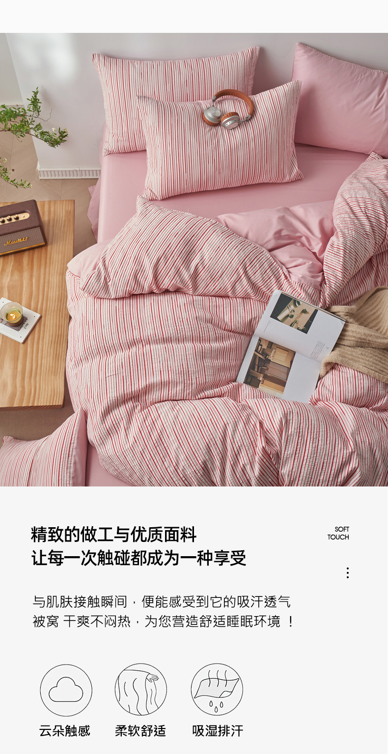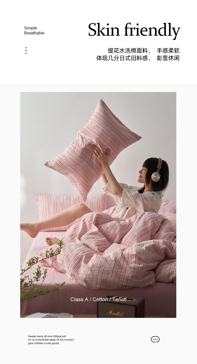 (总)千朵森 2025新款全棉色织提花条纹四件套