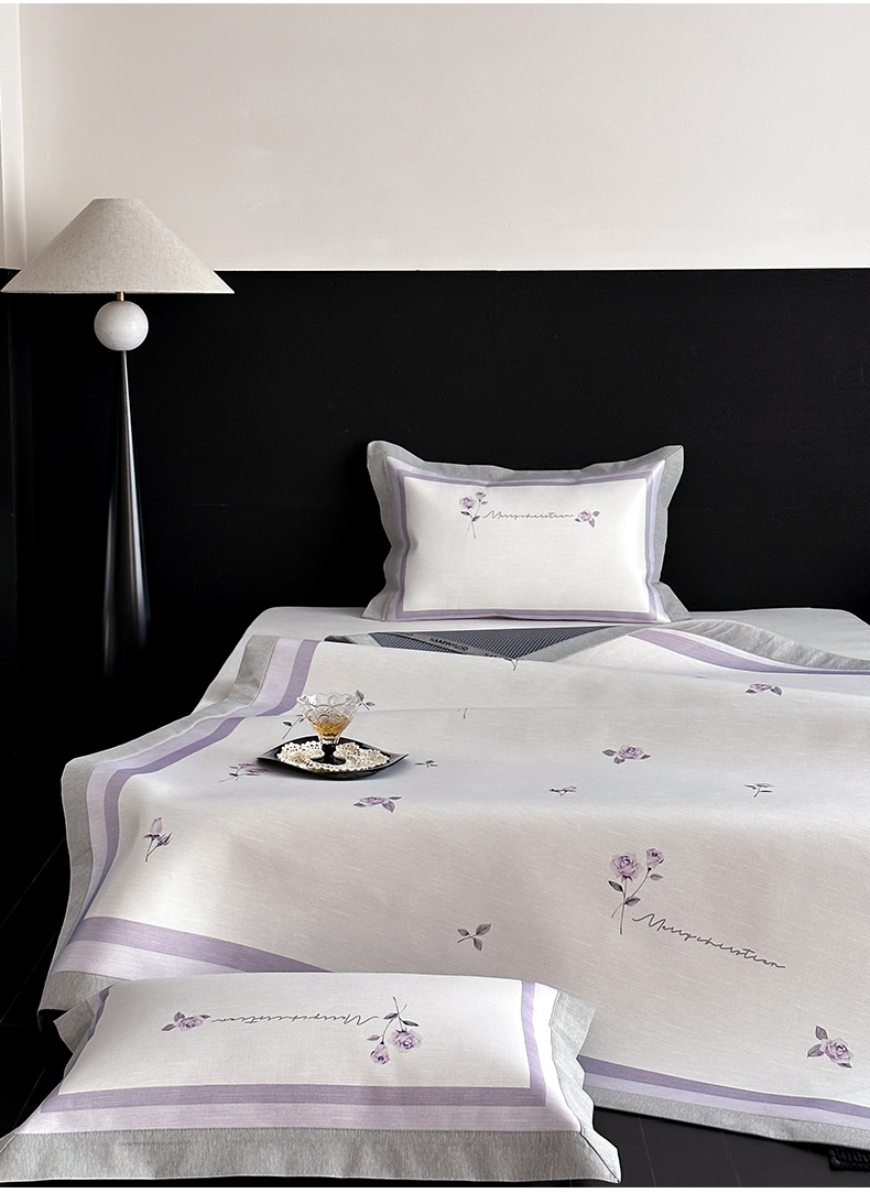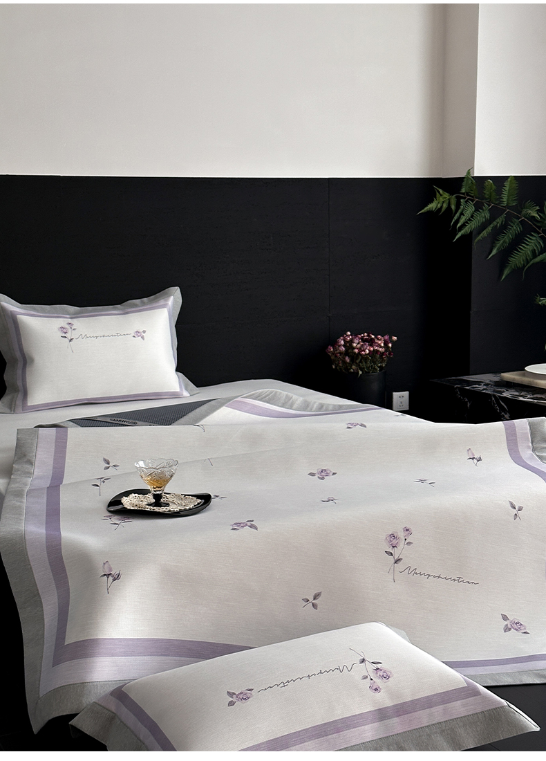 商品名称:三味舒屋 2025新款凉感抗菌南法恬谧系列大版数码印花冰丝床席-床笠 米蕾紫-床笠款