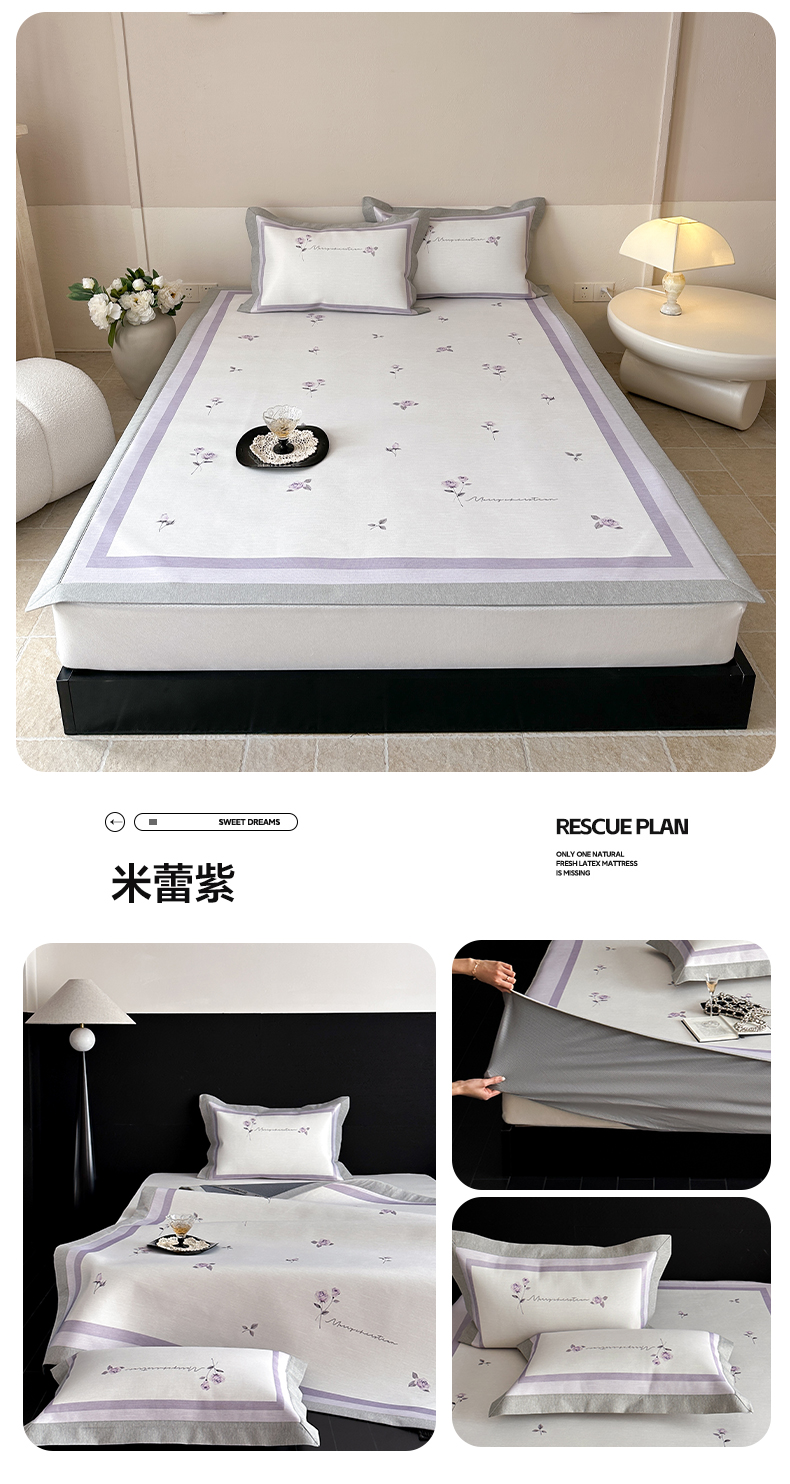 三味舒屋 2025新款凉感抗菌南法恬谧系列大版数码印花冰丝床席-床笠 米蕾紫-床笠款