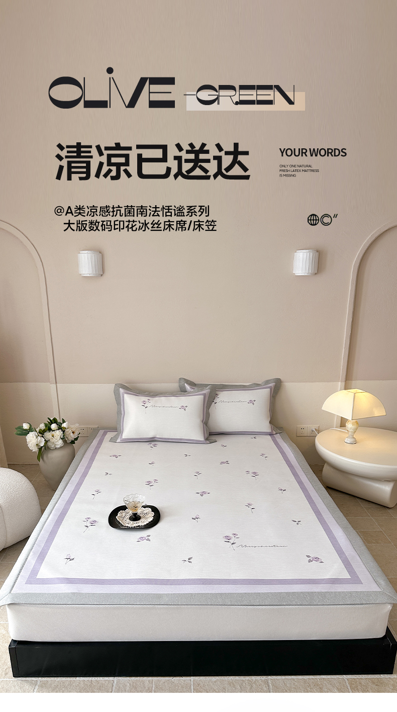 (总)三味舒屋 2025新款 凉感抗菌防螨印花冰丝养生席(新升级7A抗菌),花非花 床席,花非花 床笠,雾非雾 床席,雾非雾 床笠
