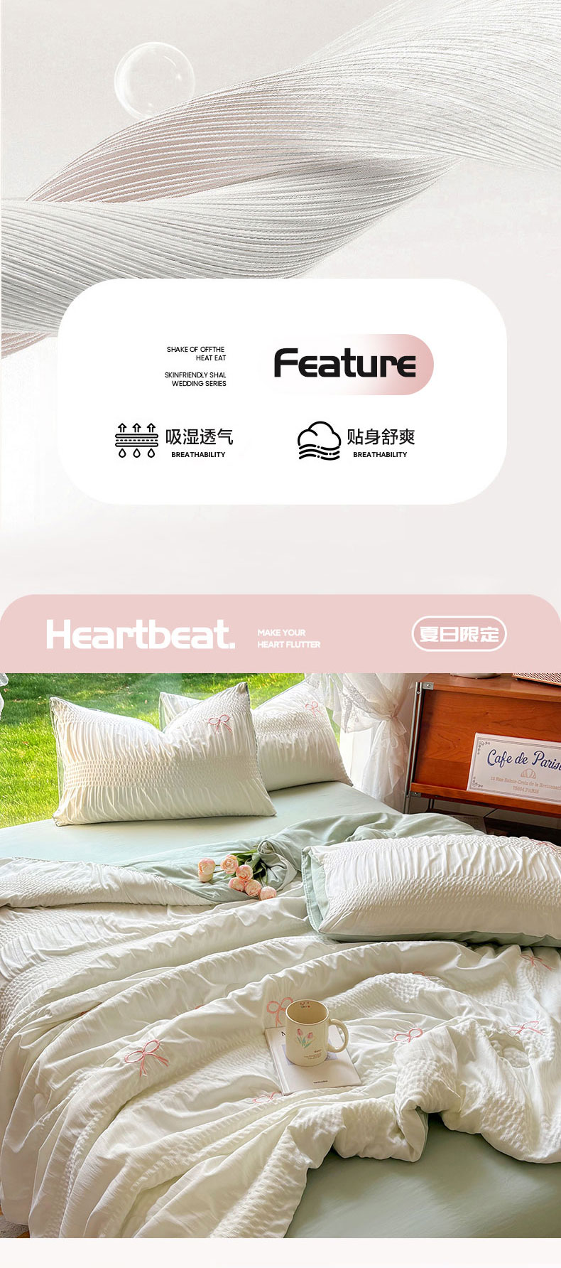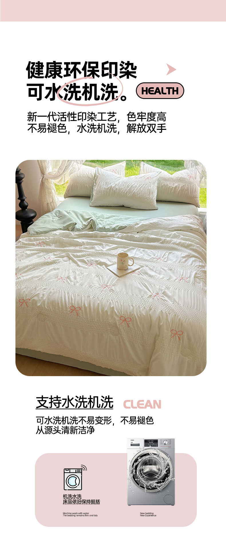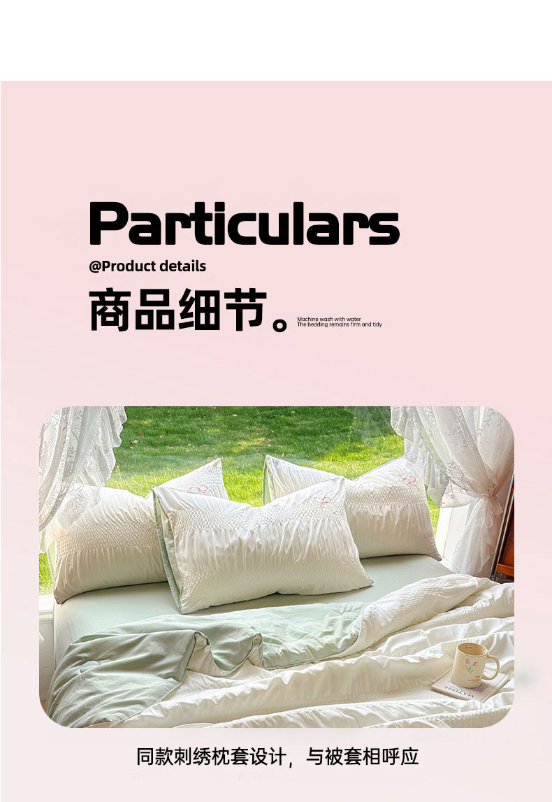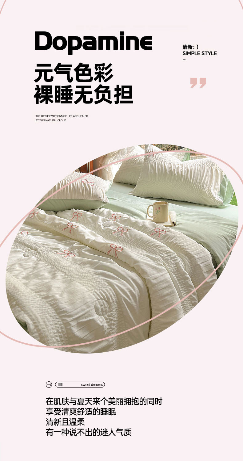 当前位置: 91家纺网 > 商品网购 > 床品套件 > 四件套 > 全棉普通四件套 > 灰鲸 2025新款泡泡纱郁金香,蝴蝶结满绣系列夏被四件套 蝴蝶结-奶昔白+抹茶绿