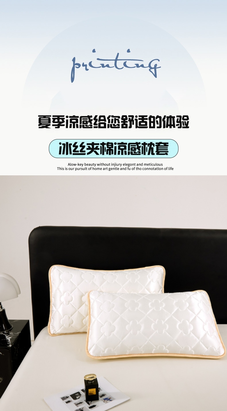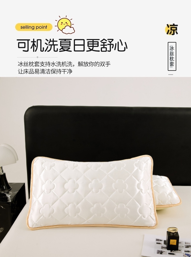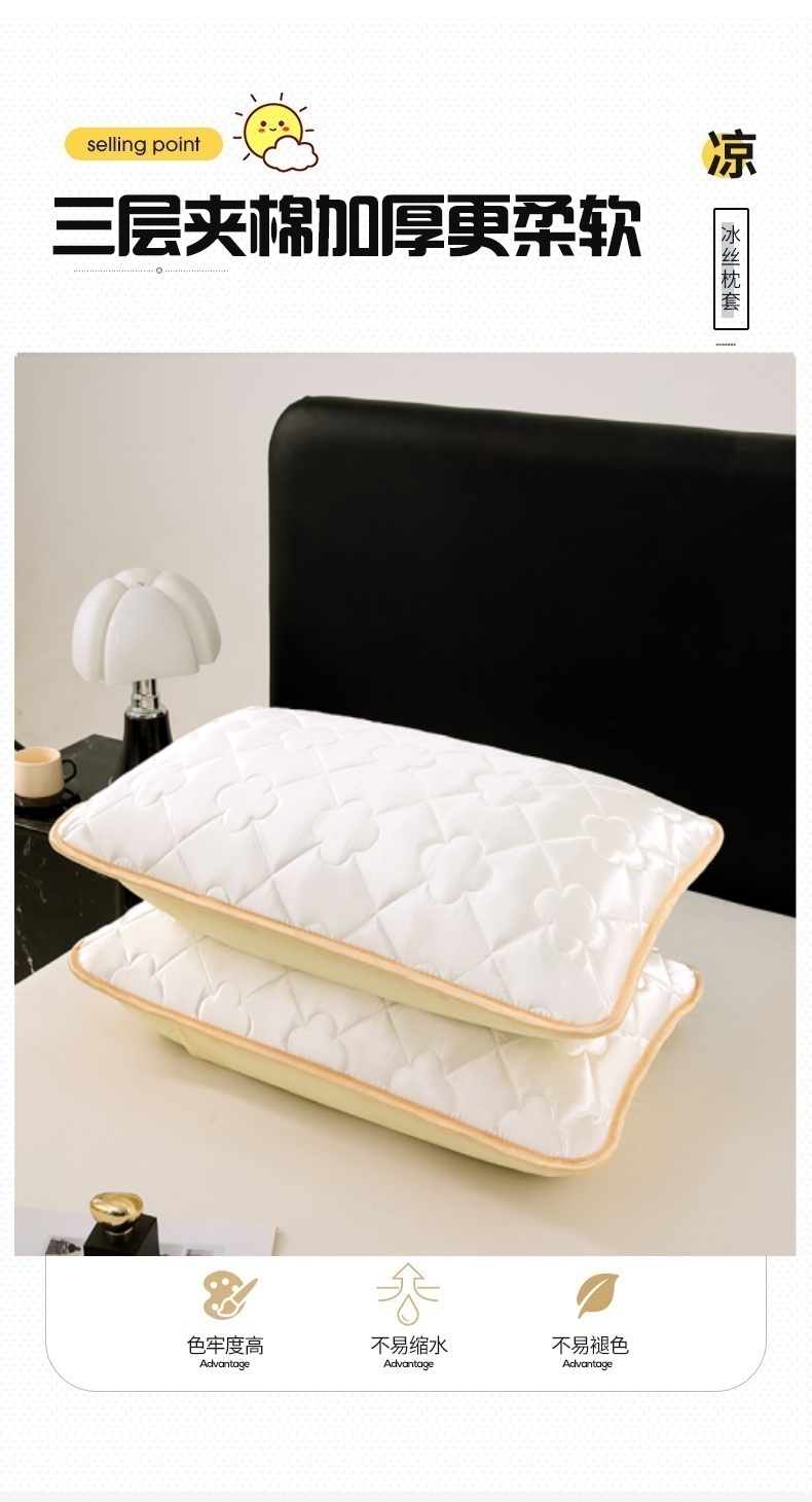 商品名称:梦舒羽 2025新款夏季冰丝凉感夹棉枕套单人一对装可水洗加厚枕头套宿舍48x74cm枕芯套 夹棉加厚-珍珠白