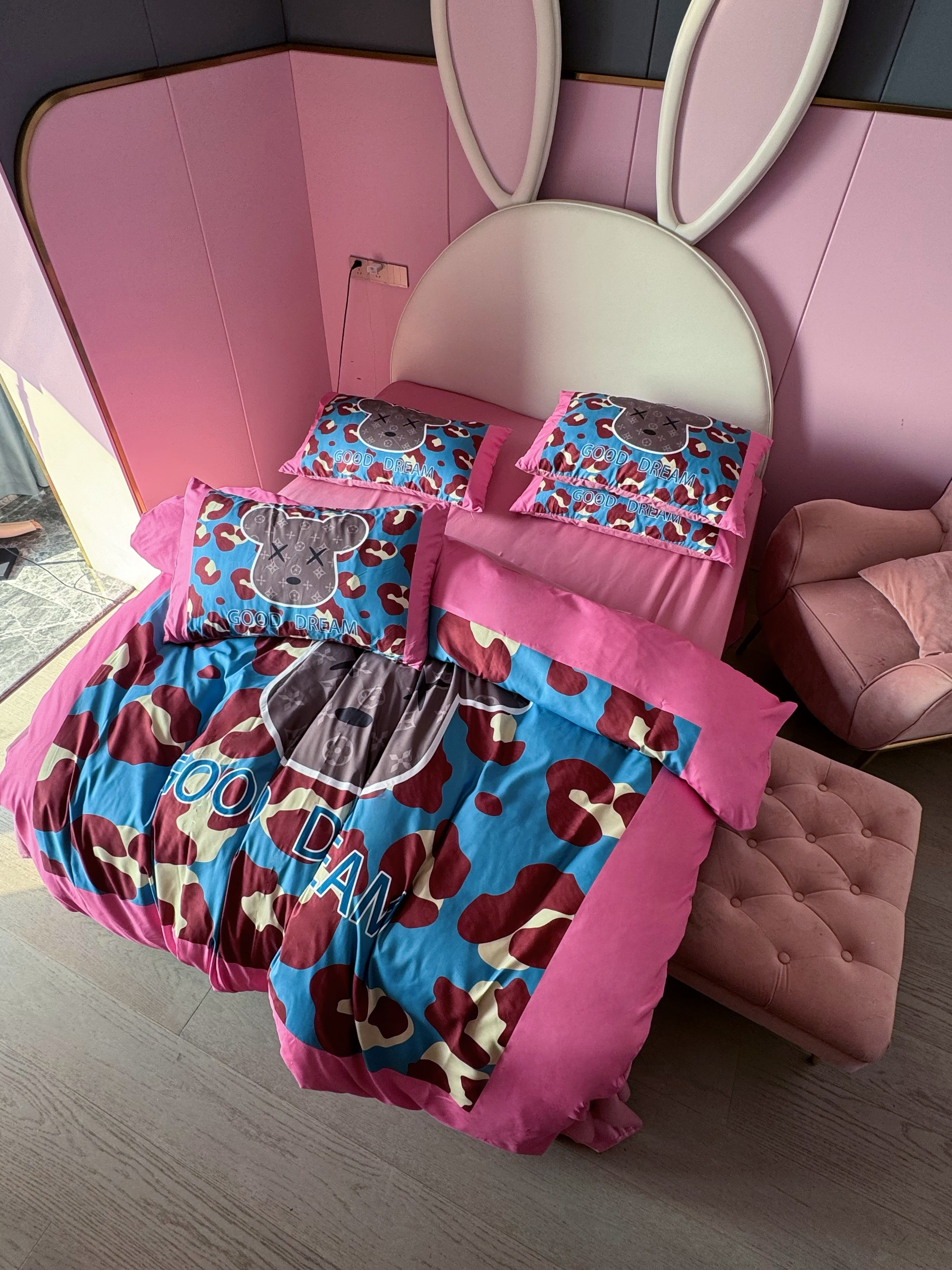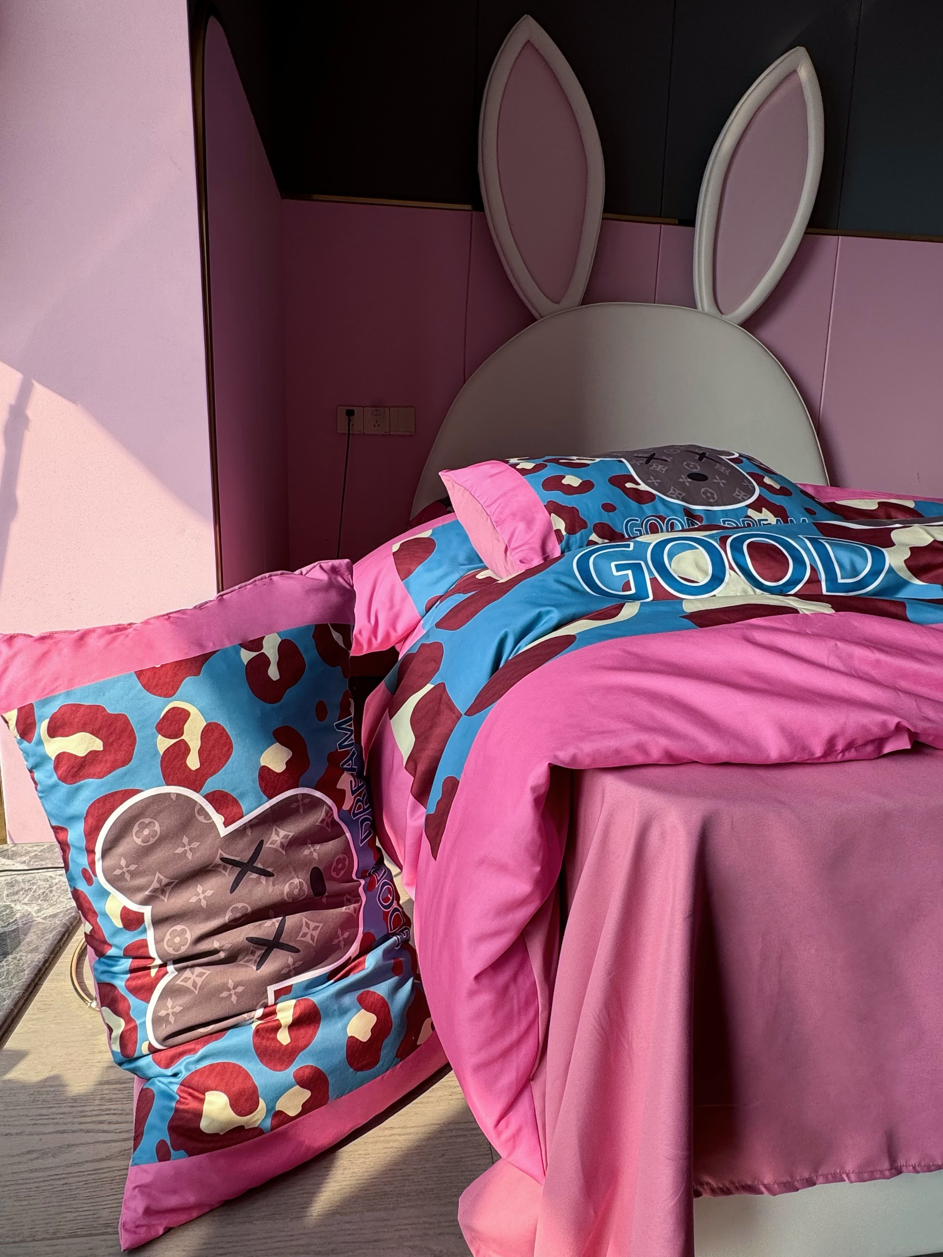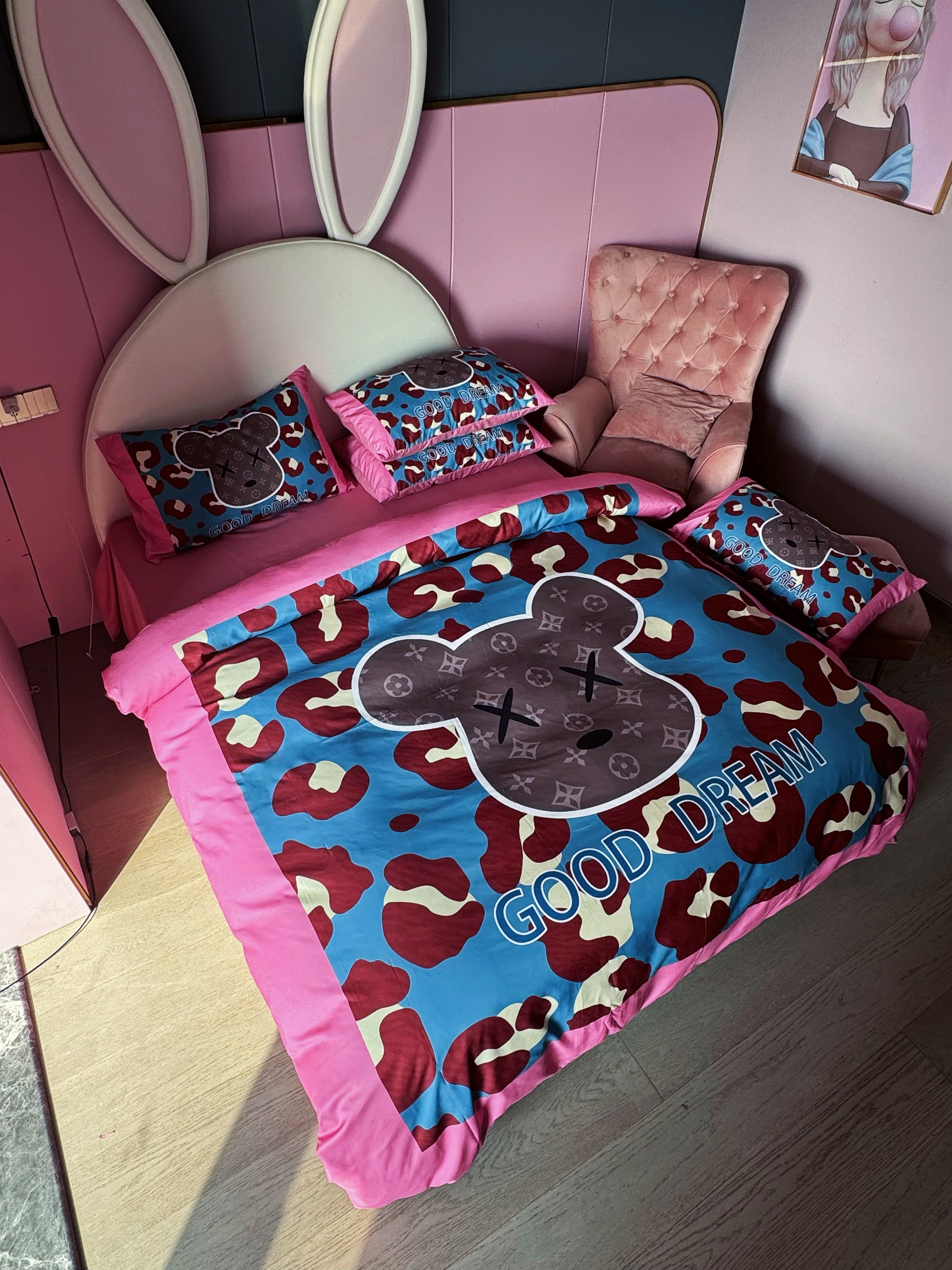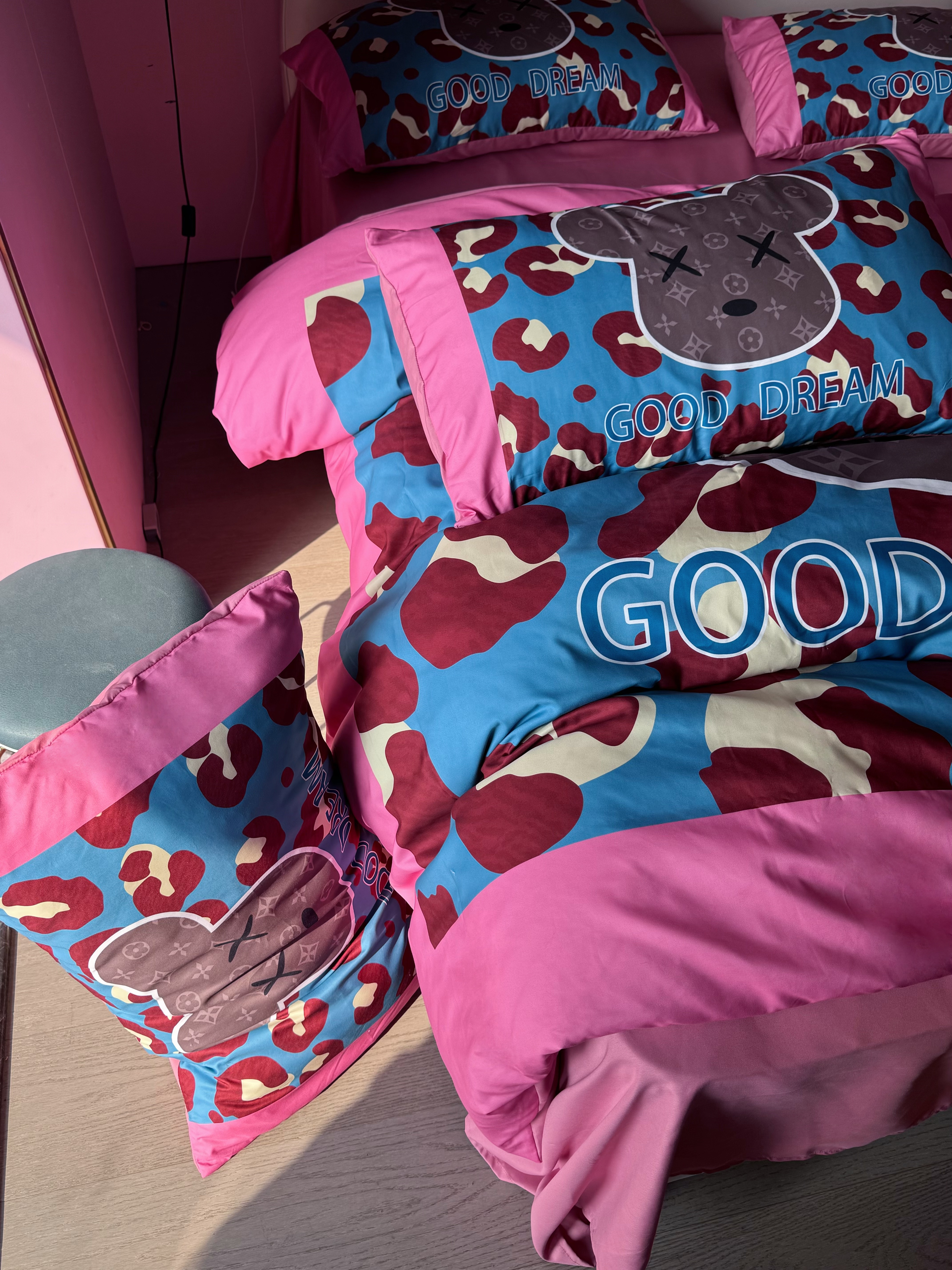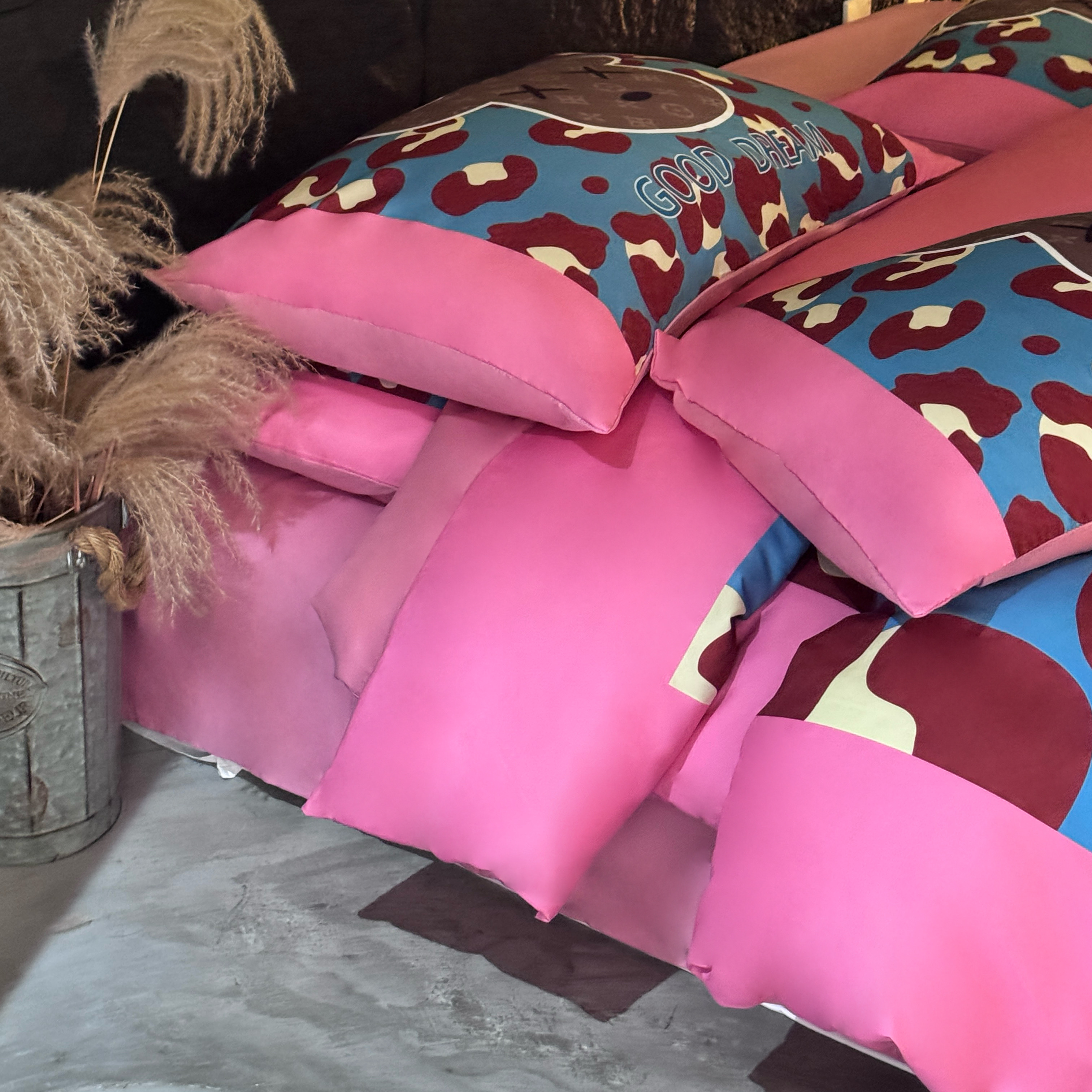 丽斐 2025新款磨毛数码印花四件套 磨毛蓝粉豹纹